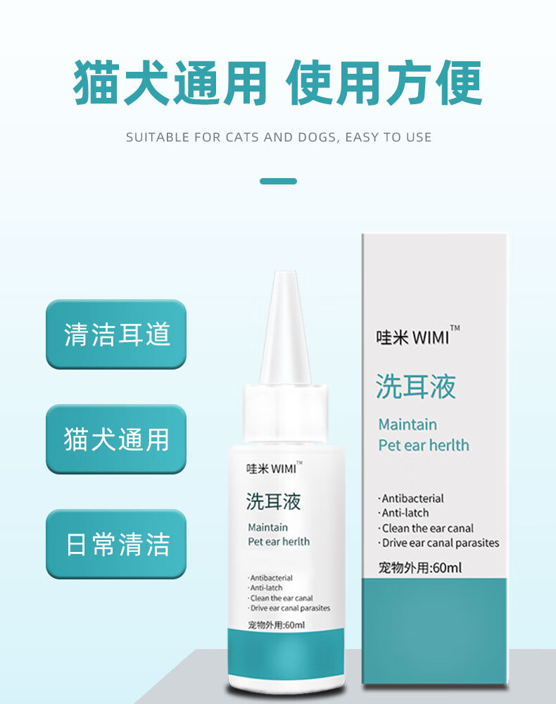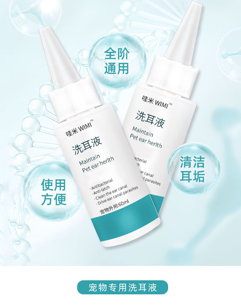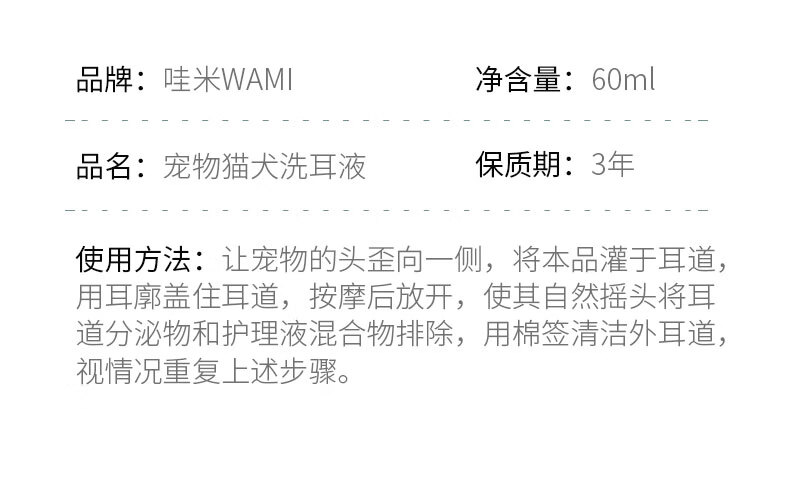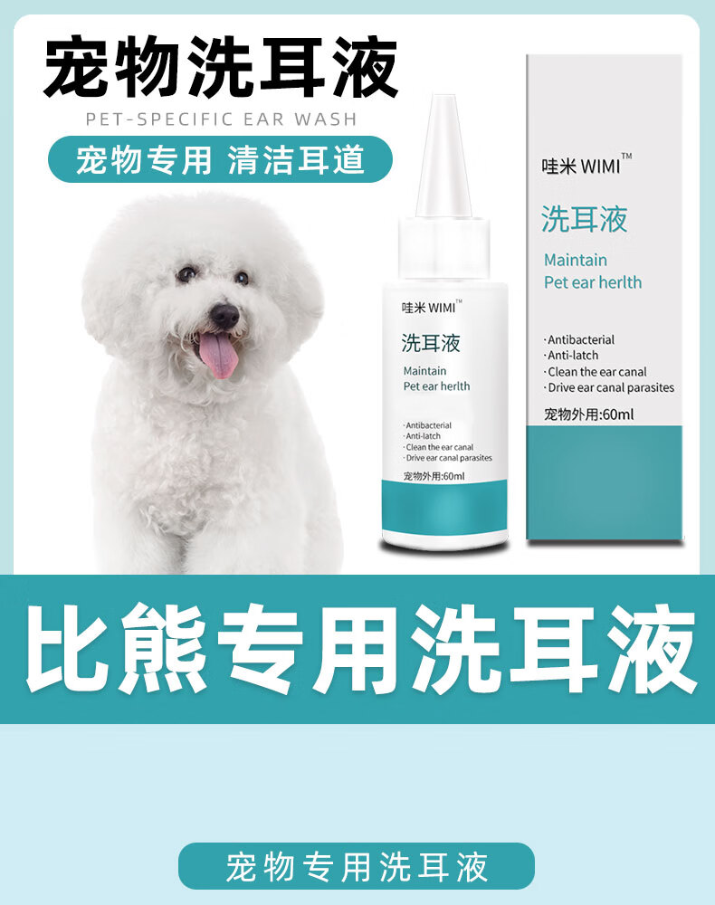 Wami Bichon special ear cleaning liquid for dogs and pets, ear drops, ear cleaning liquid, dog and cat ear odor, dog ear cleaning liquid, 1 bottle 60ml
