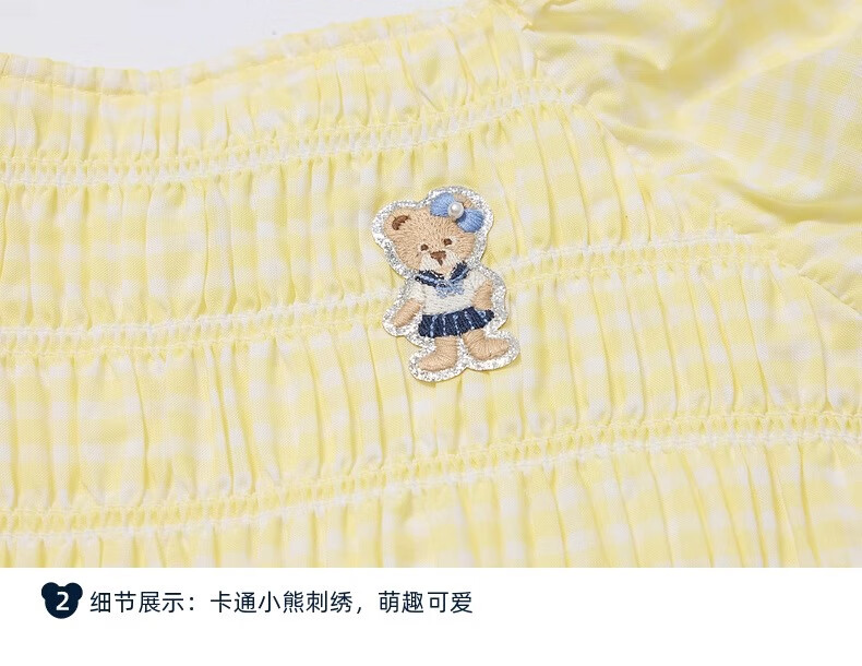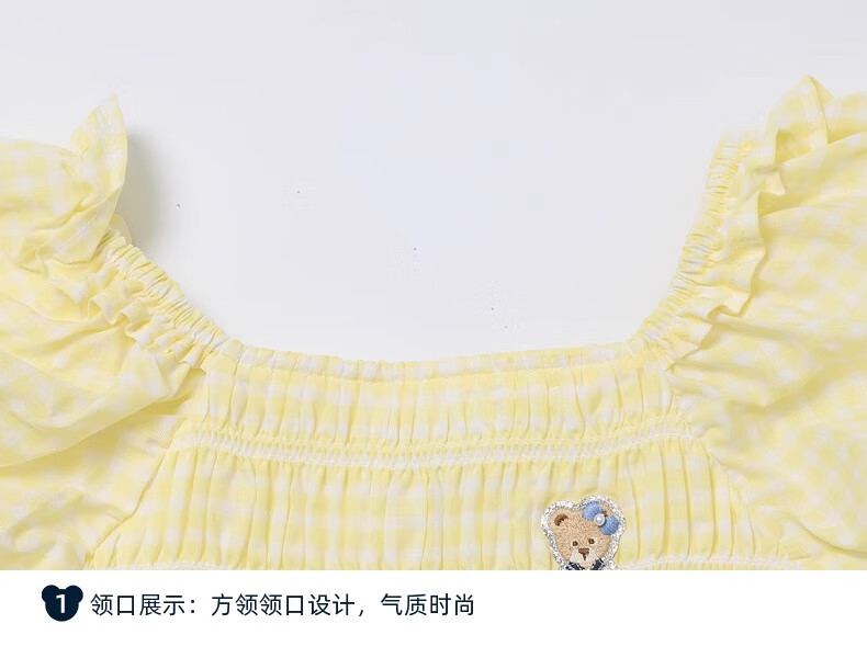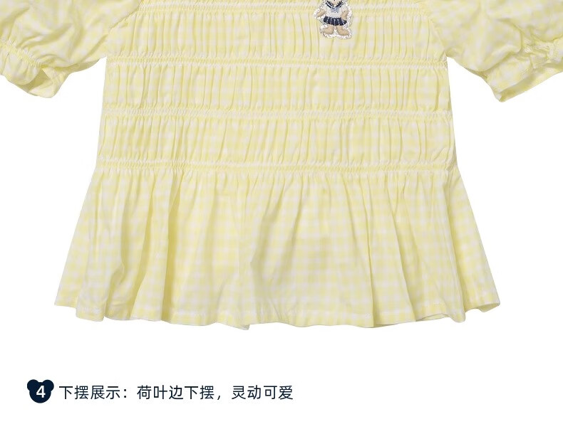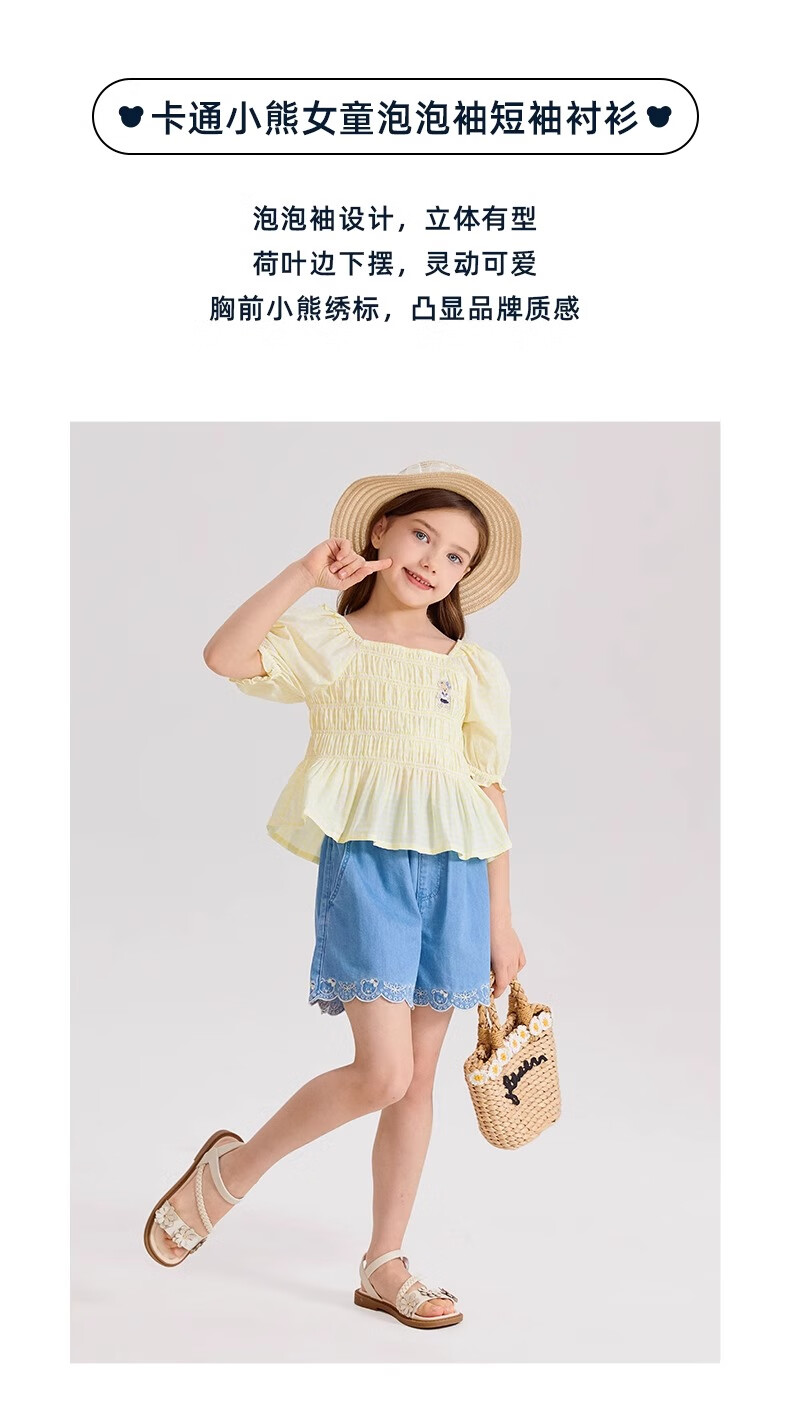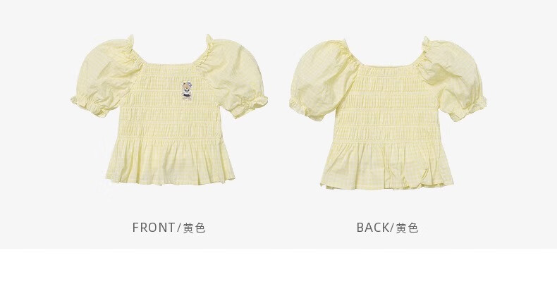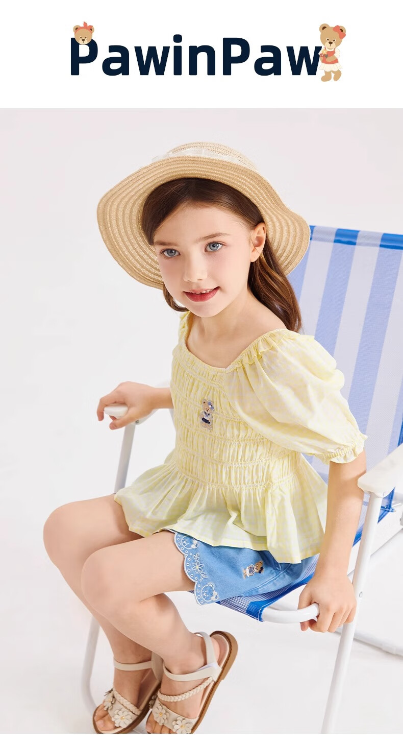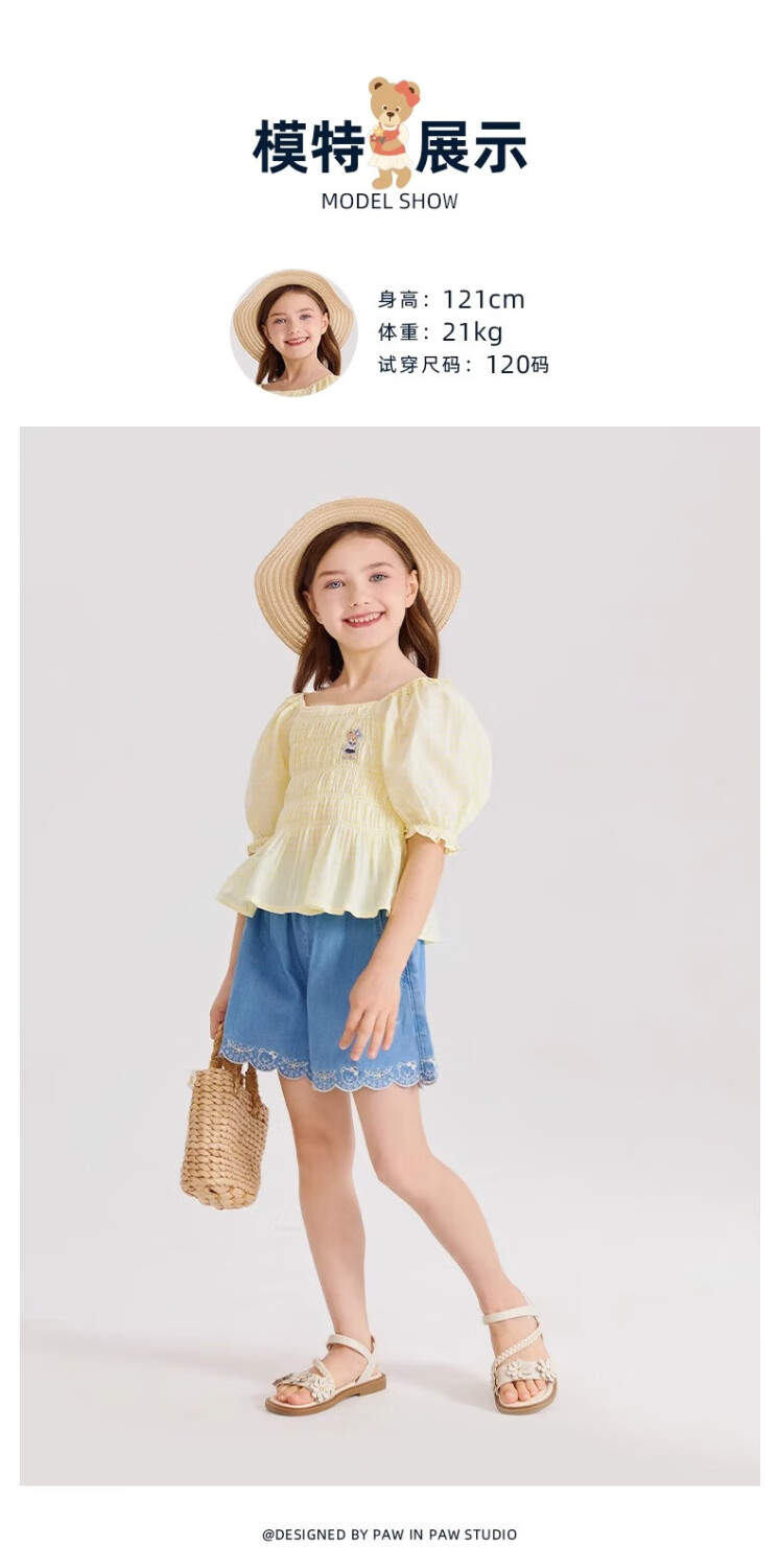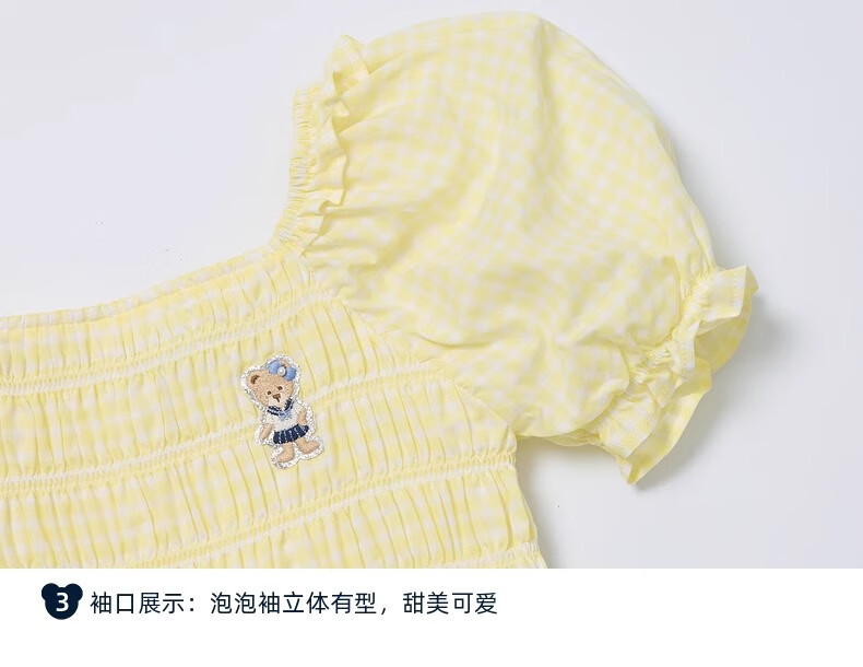 PawinPaw Cartoon Bear Children's Clothing Spring and Summer Girls Puff Sleeve Short Sleeve Shirt Sweet and Cute Yellow/30 110