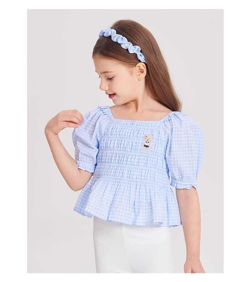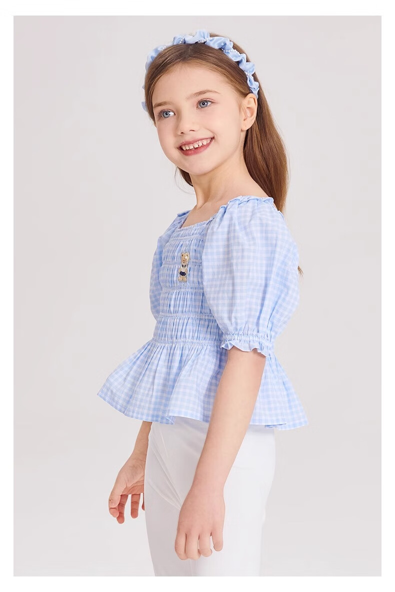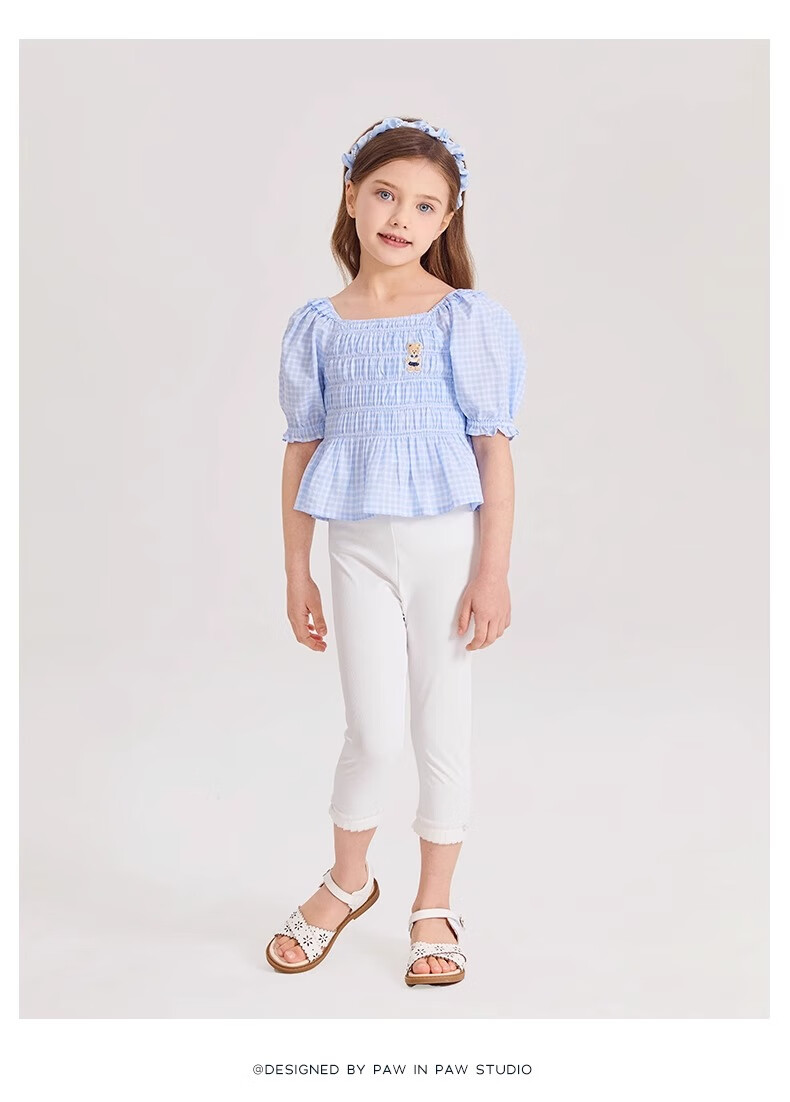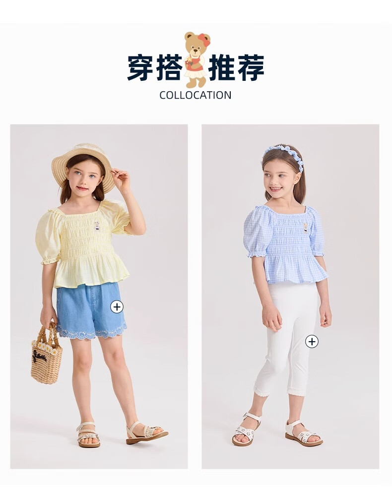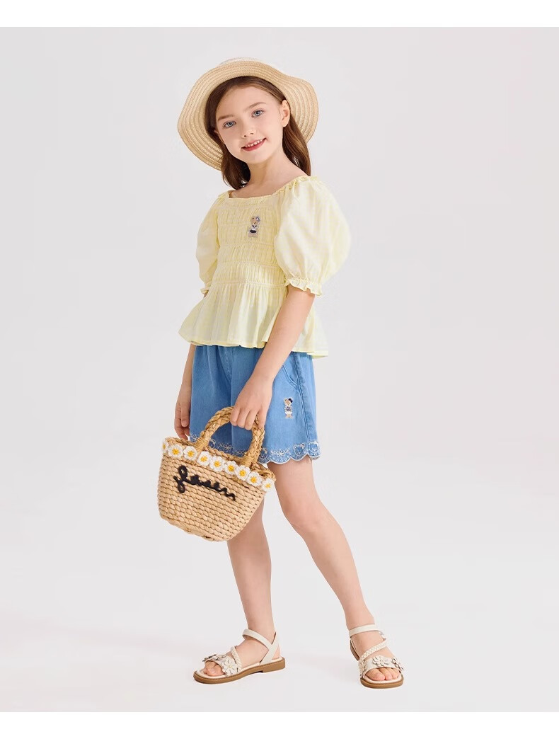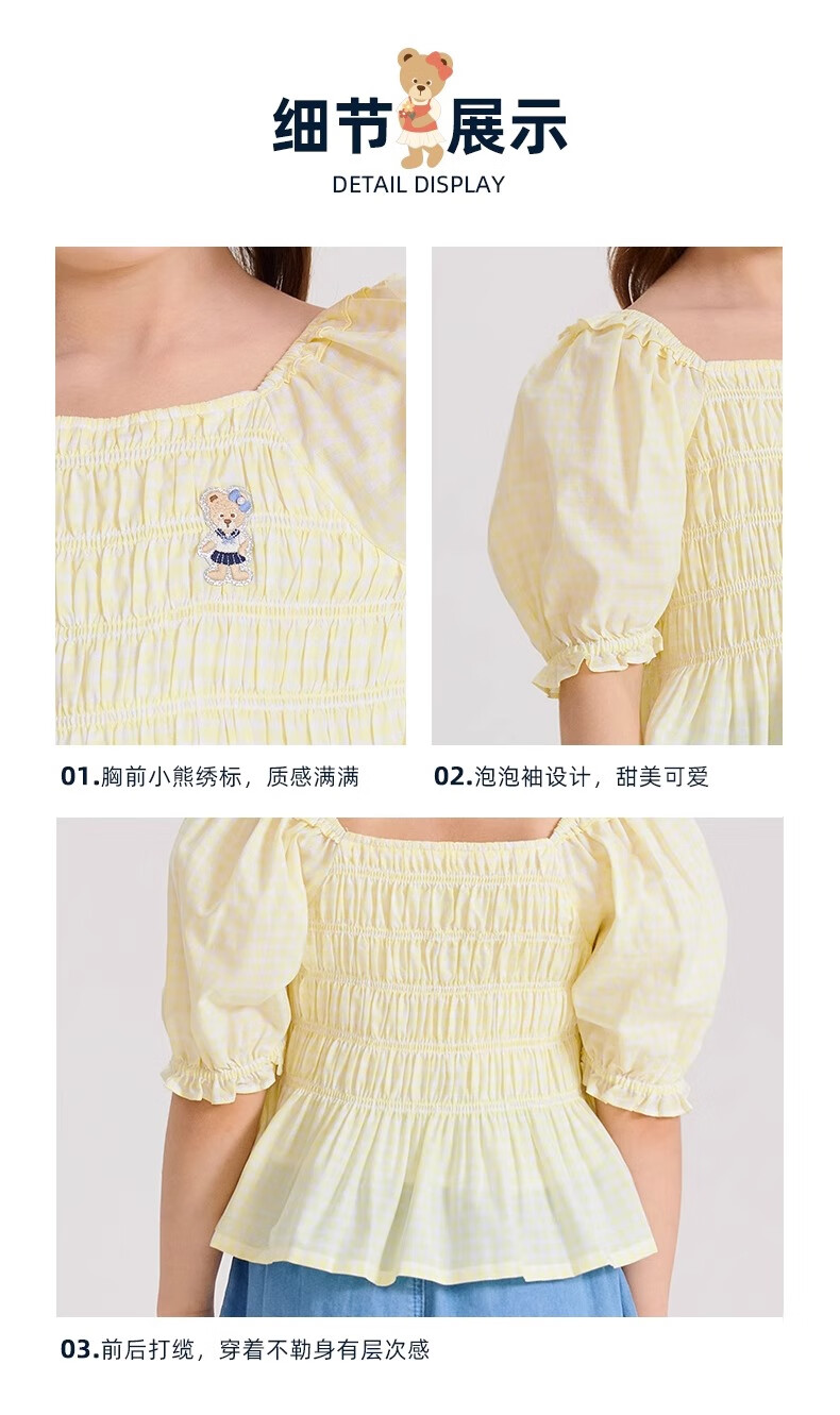 PawinPaw Cartoon Bear Children's Clothing Spring and Summer Girls Puff Sleeve Short Sleeve Shirt Sweet and Cute Yellow/30 110