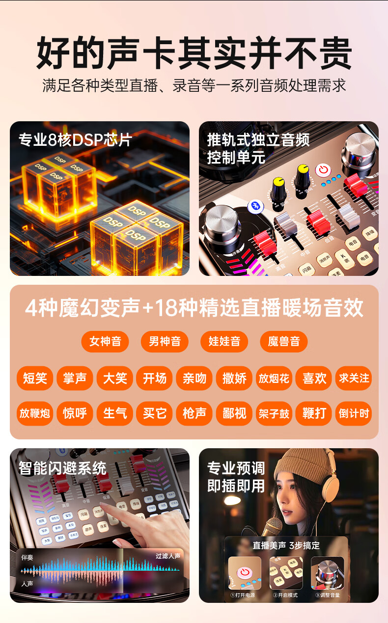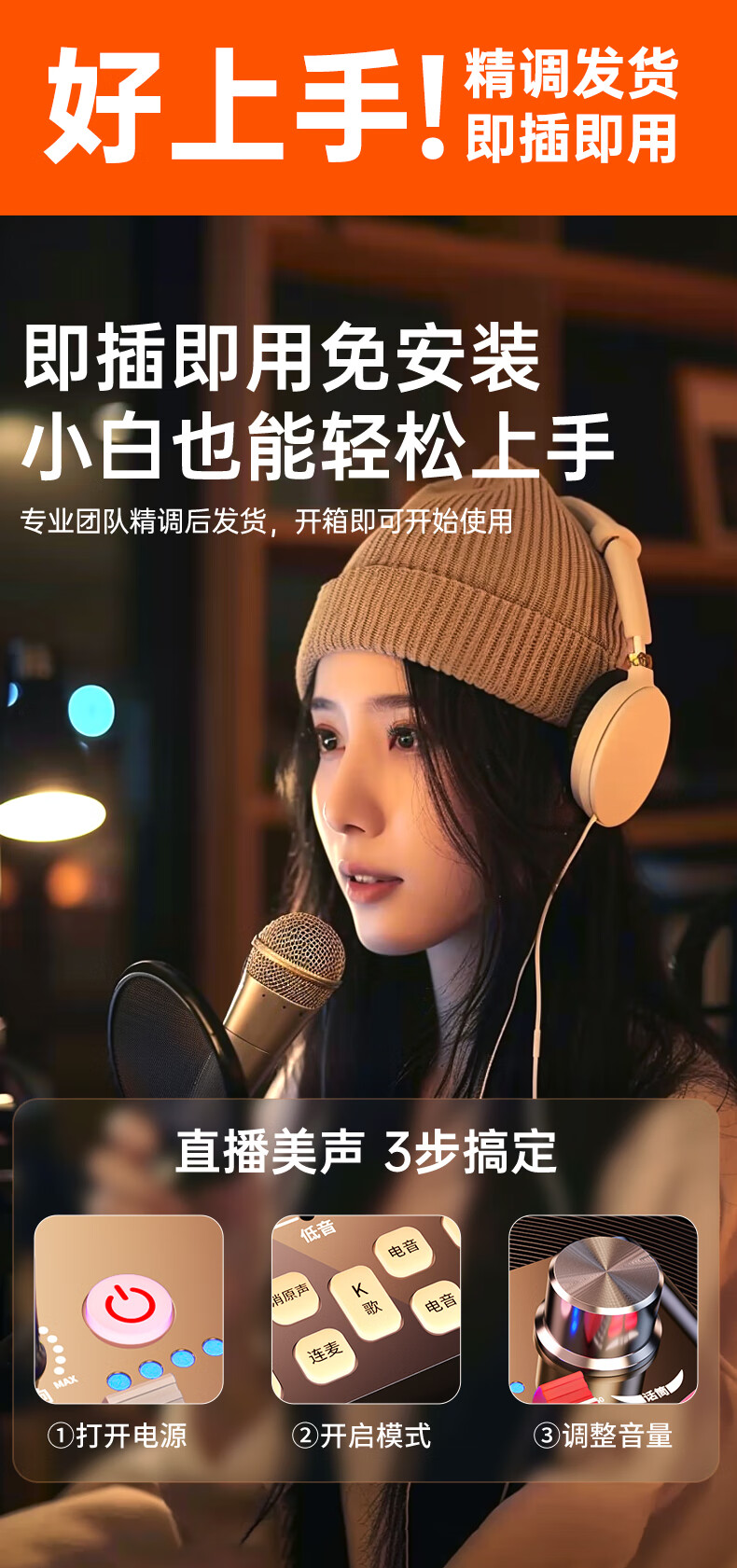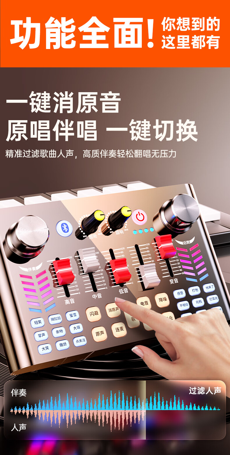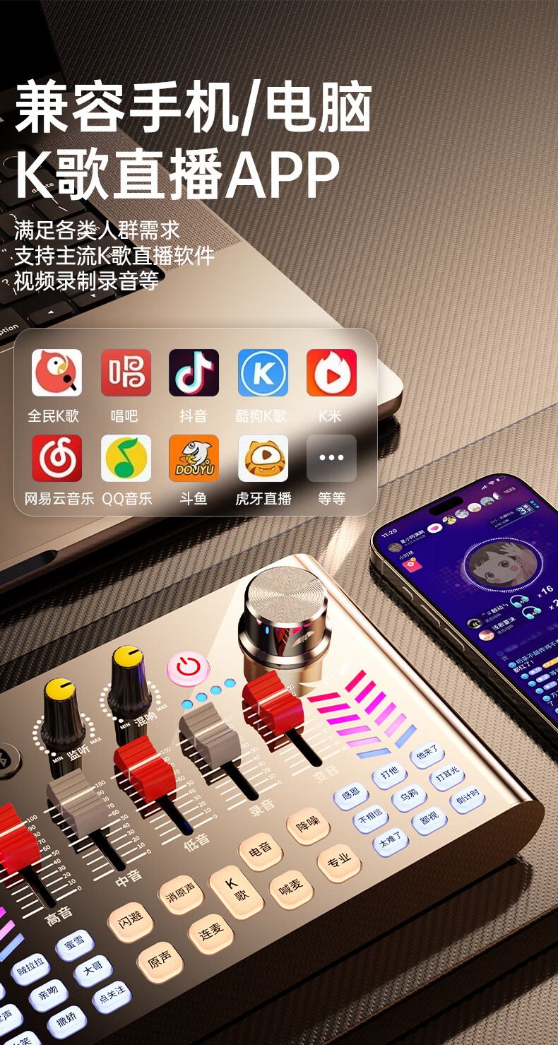 Jinyun sound card live broadcast equipment complete set external mobile phone computer recording outdoor anchor singing microphone complete set all-purpose model - complete set of sound card + handheld microphone