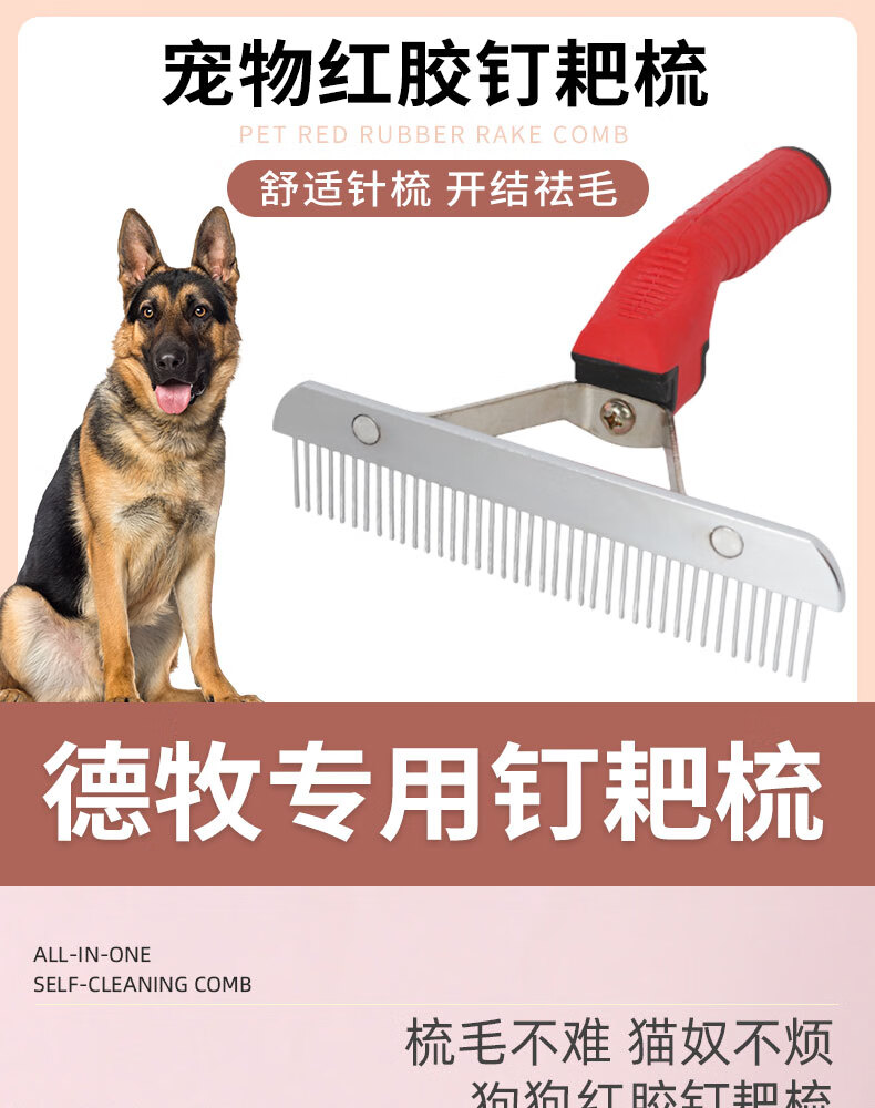 Guapai German Shepherd special nail rake comb dog hair comb to remove floating hair cleaner dog hair detangling comb pet hair removal comb nail rake comb with rubber grip/combing is not tiring