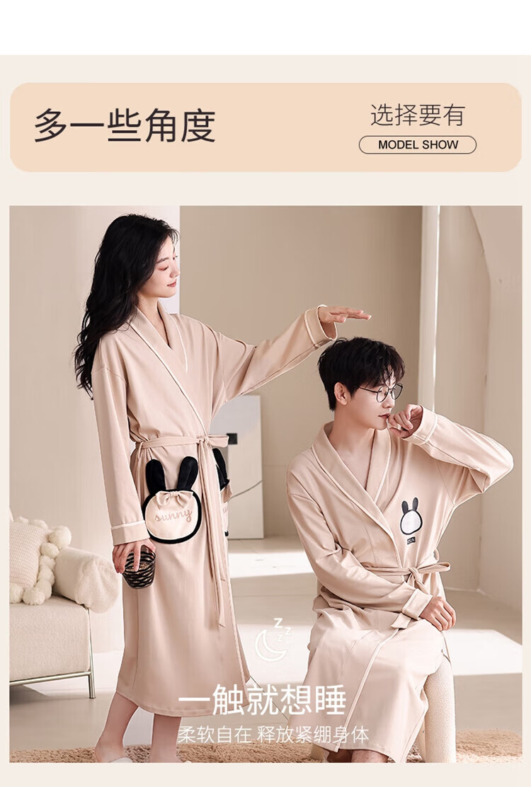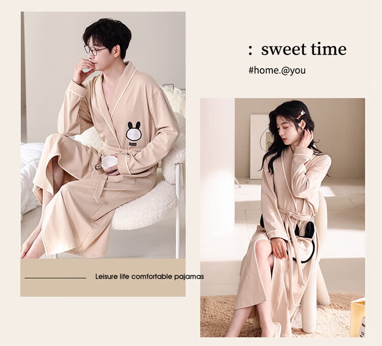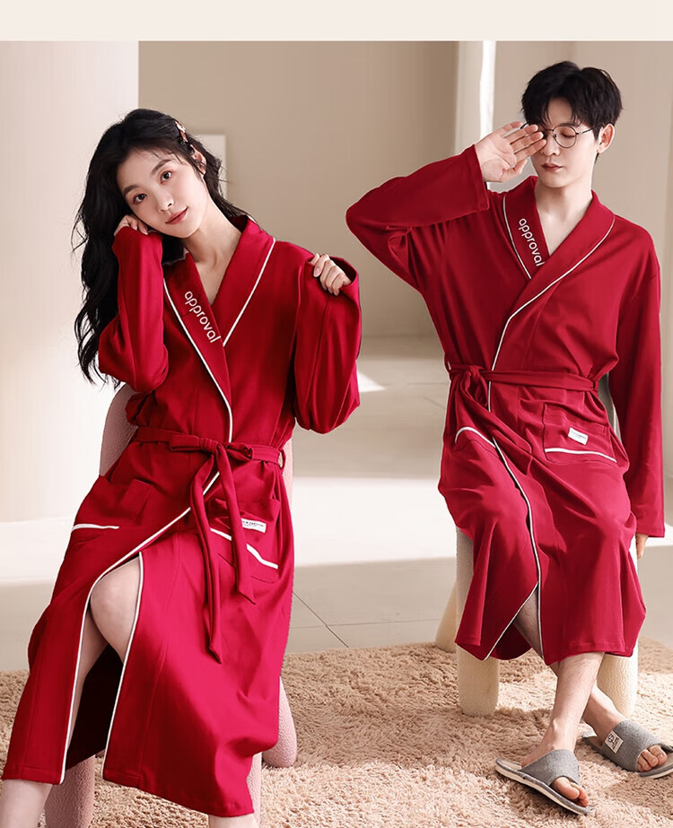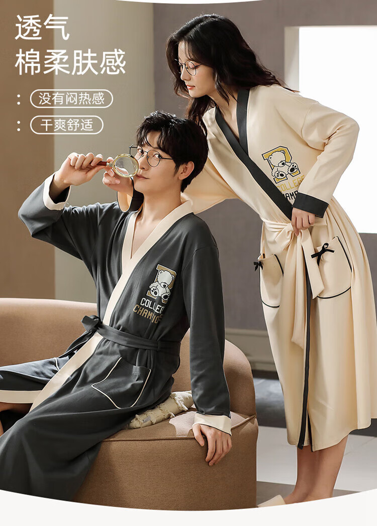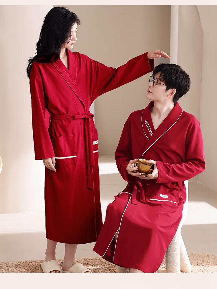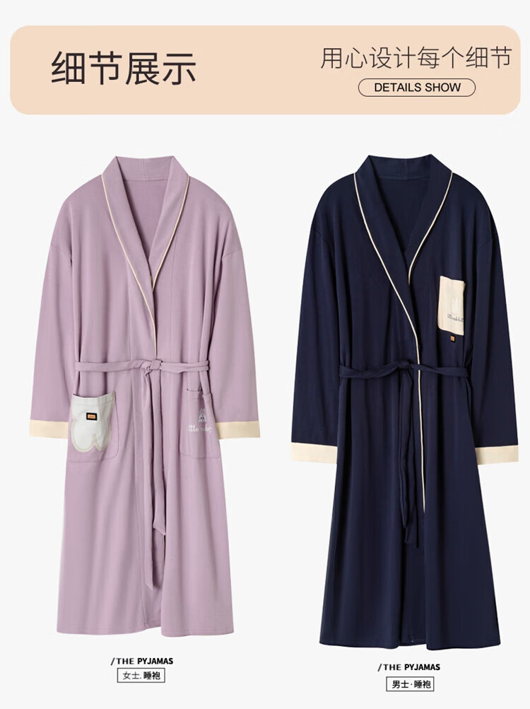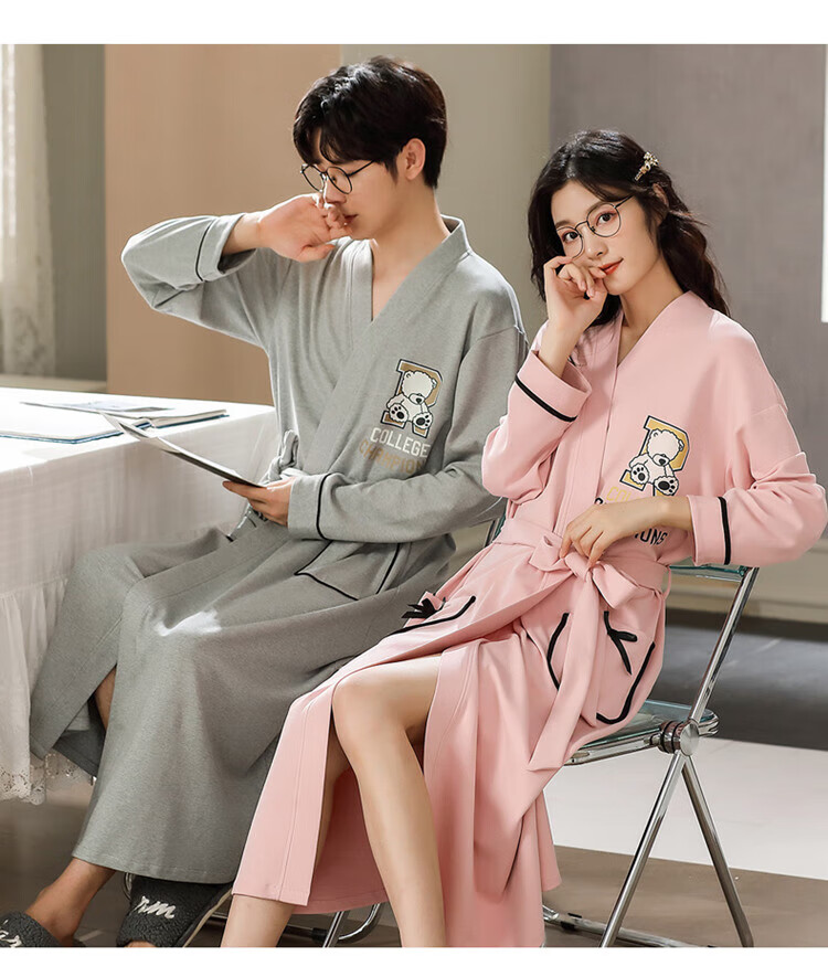 LangSha brand new nightgown couple pajamas for men and women for all seasons pure cotton bathrobe style spring and autumn men's long bathrobe SD2264 long-sleeved style XL male recommended 120-140Jin Jin equals 0.5 kg