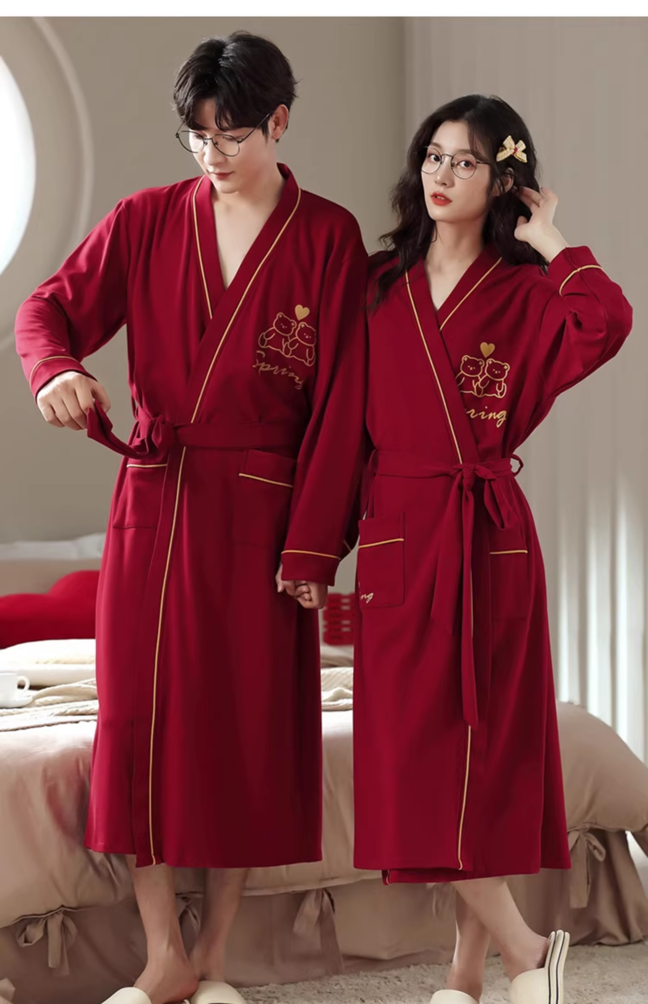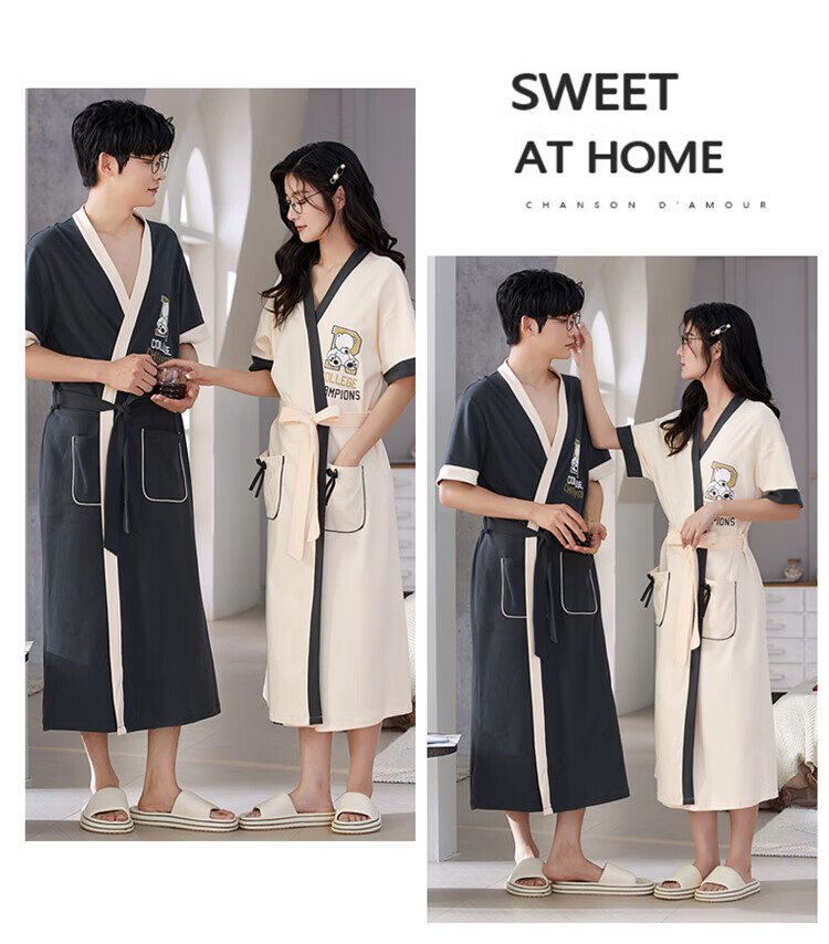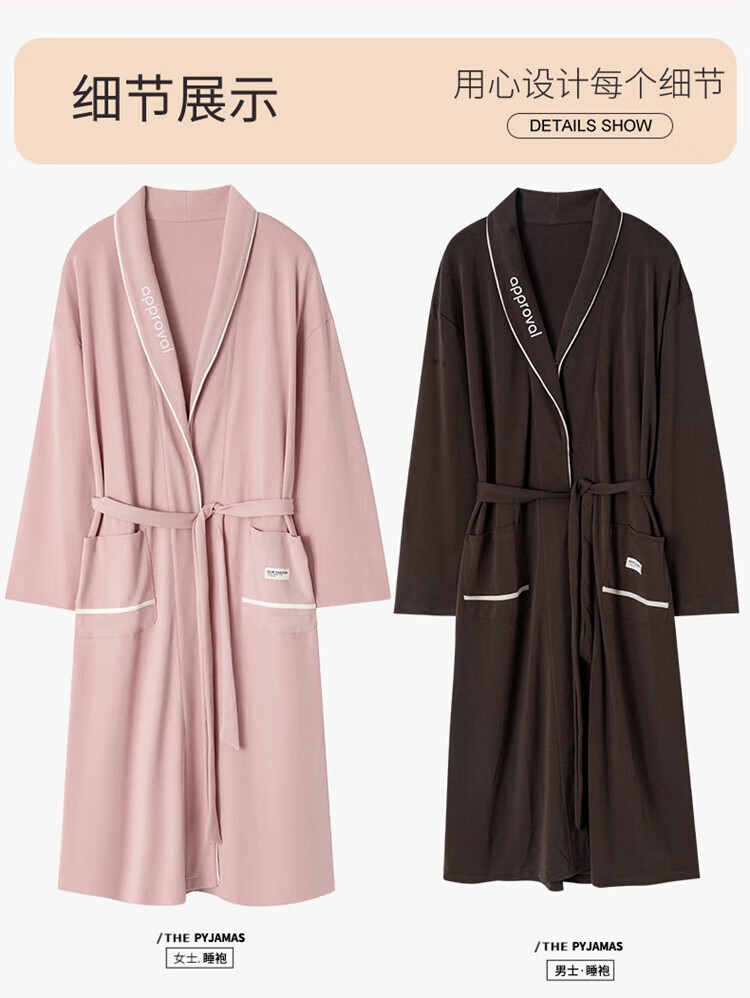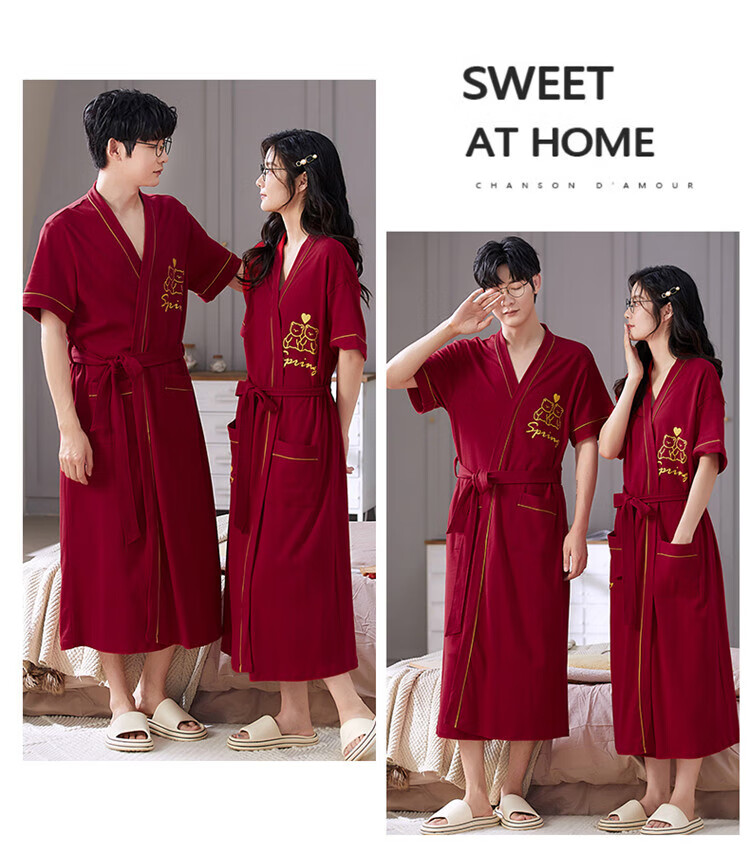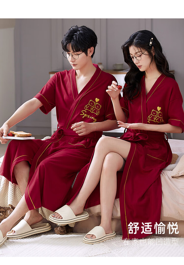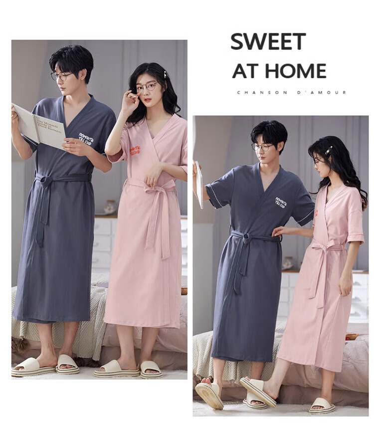 LangSha brand new nightgown couple pajamas for men and women for all seasons pure cotton bathrobe style spring and autumn men's long bathrobe SD2264 long-sleeved style XL male recommended 120-140Jin Jin equals 0.5 kg