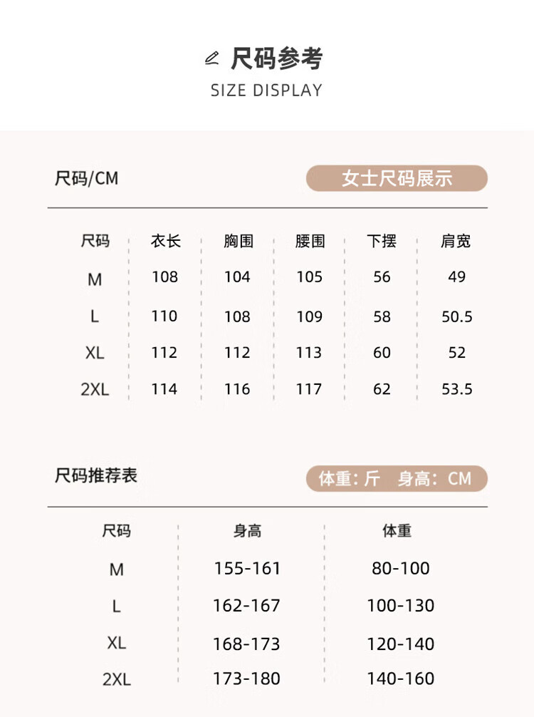 China (cm) 160-165/84-86 165-170 / 88-90 167-172 / 92-96 168-173 / 98-102 170-176 / 106-110