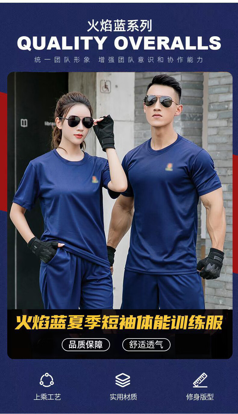 Jihua 3535 flame blue fire-fighting fitness suit summer short-sleeved training suit outdoor sports round neck suit quick-drying breathable T-shirt short-sleeved suit national team 175/92-96