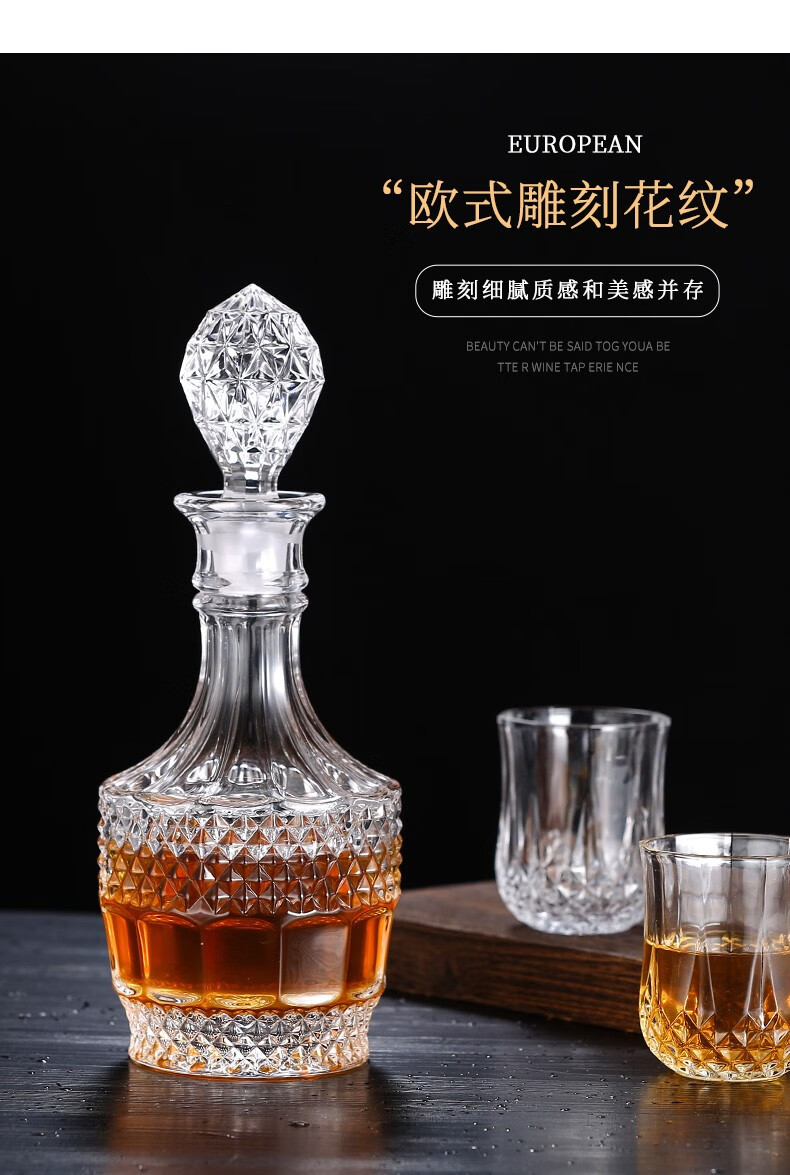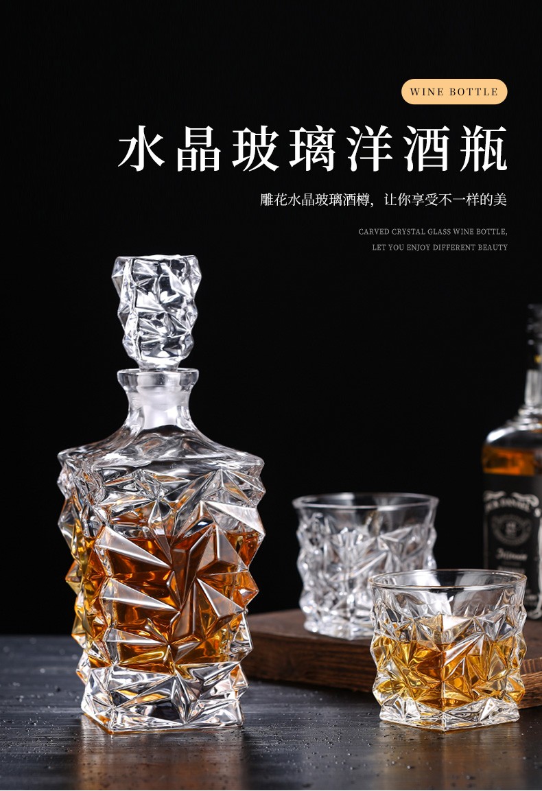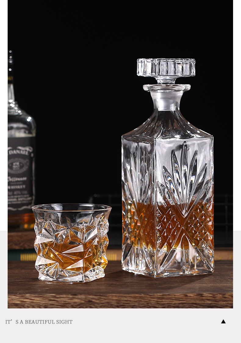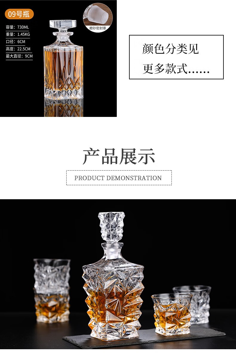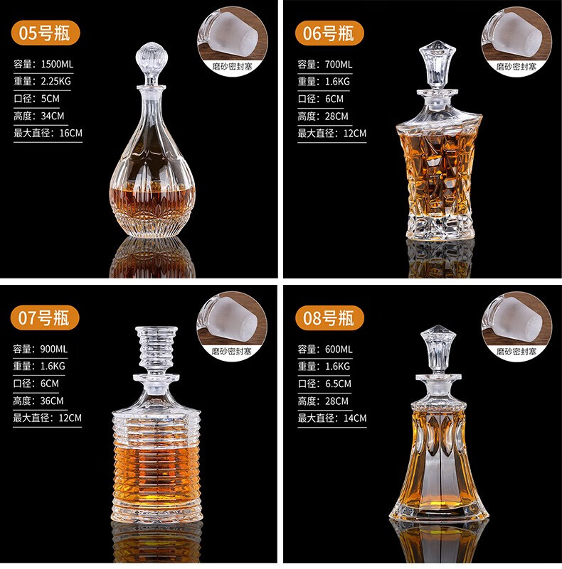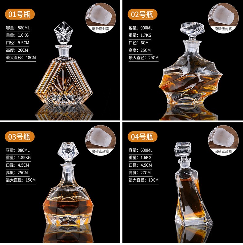 Yitelan Whiskey Foreign Wine Bottle Household Crystal Glass Wine Bottle Red Wine White Wine High-end Sealed Storage Bottle No. 9 Frosted Sealing Plug 730ml