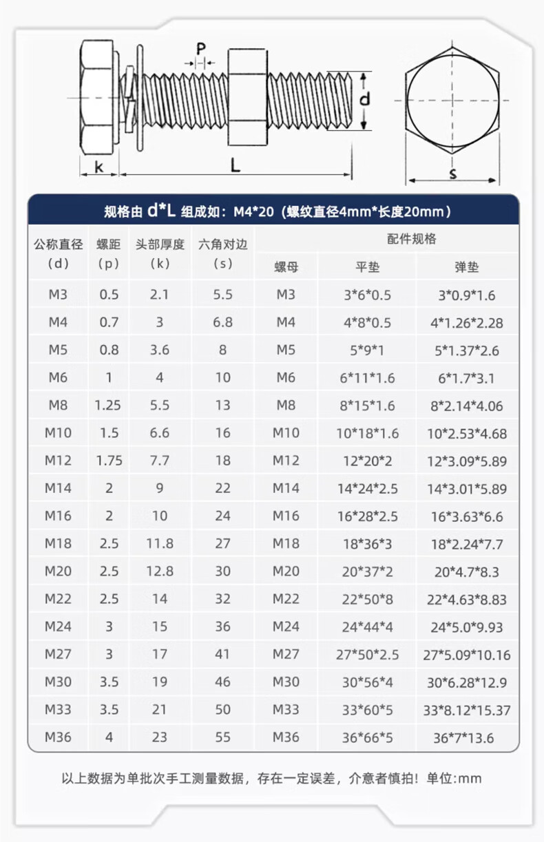 Tianzhuo Hardware 316L stainless steel external hexagonal bolt screw nut set complete flat spring washer combination M6M8M10M12-M20 M8*35-5 set