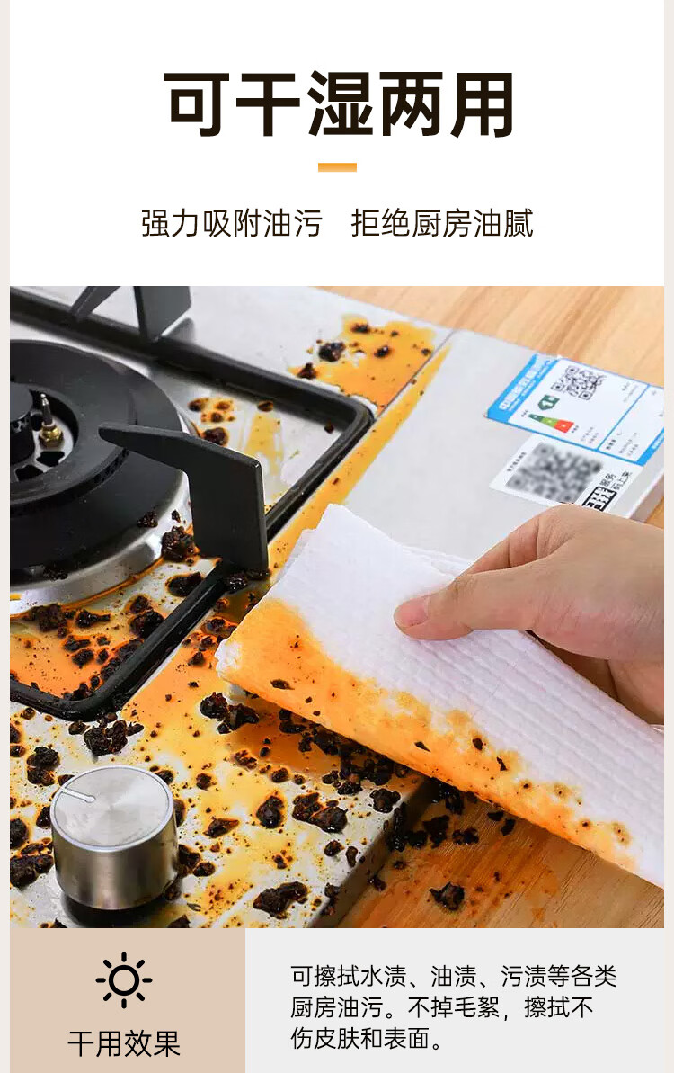 Connaught lazy rags 100 pieces/roll Kitchen disposable rags thickened and larger paper towels special paper for oil and water absorption lazy rags hot sale 100 pieces * 1 roll