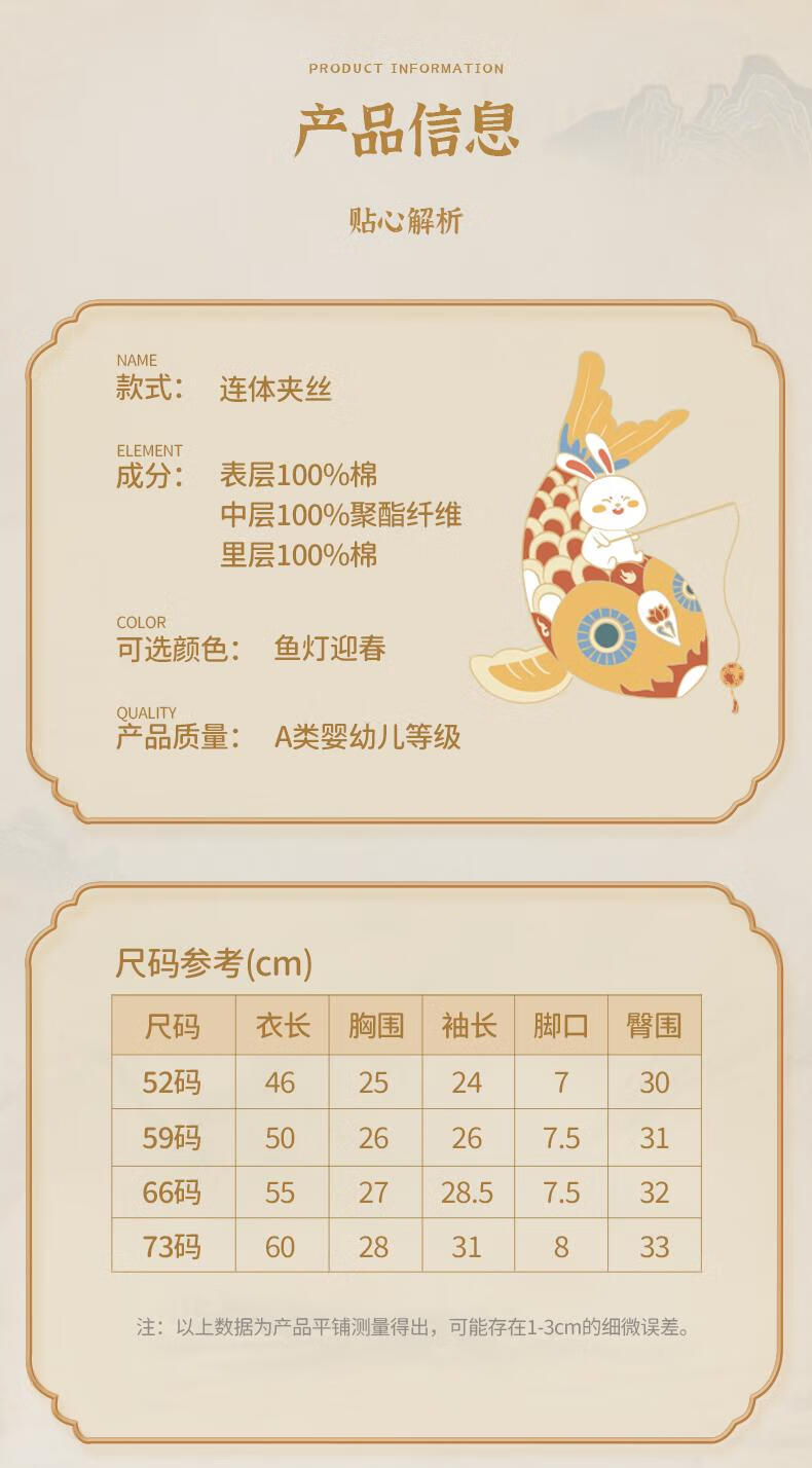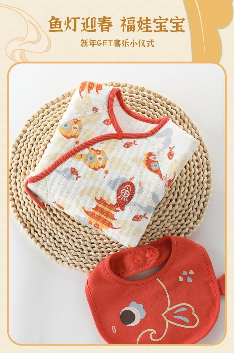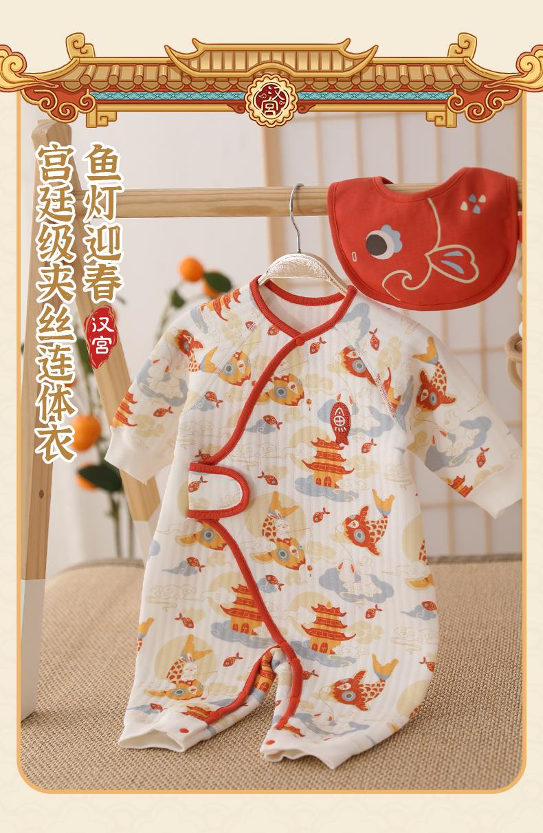 Han Palace Premium Newborn Baby Clothes Autumn and Winter Silk Harness Chinese Style Full Moon Clothes One Year Old New Year Dress Treasure Fish Lantern Welcomes Spring 59cm