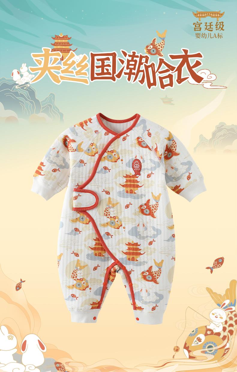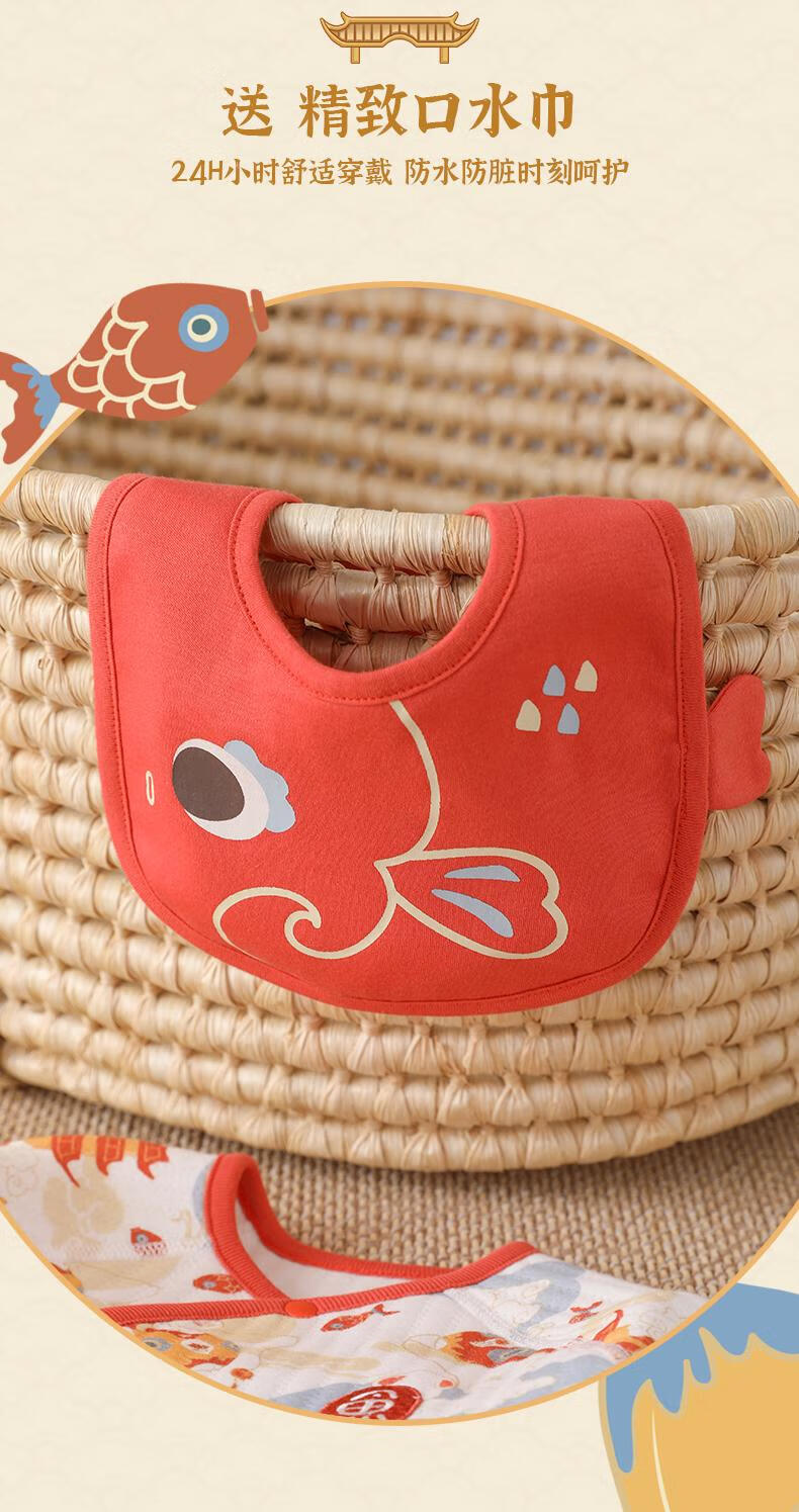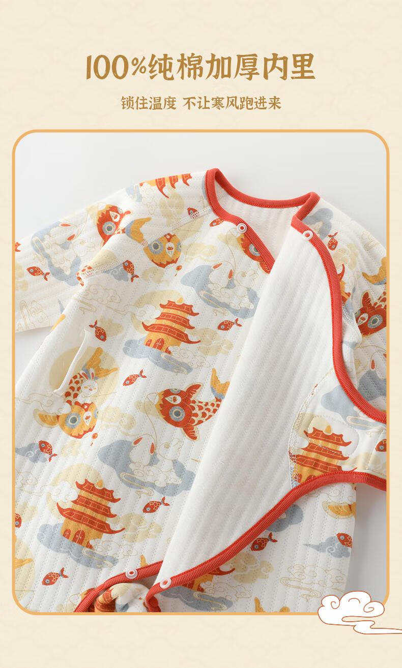 Han Palace Premium Newborn Baby Clothes Autumn and Winter Silk Harness Chinese Style Full Moon Clothes One Year Old New Year Dress Treasure Fish Lantern Welcomes Spring 59cm