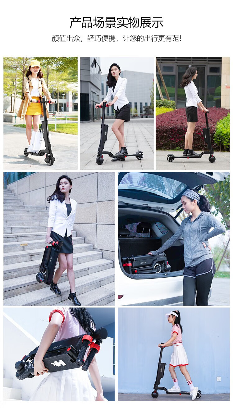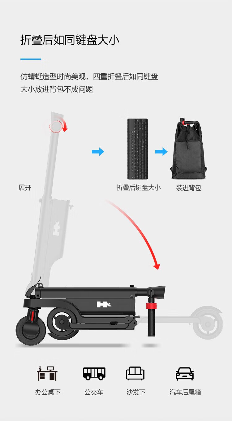HX Huanxi Folding Electric Scooter Small Mini Adult Student Transportation Light Portable Scooter Battery Removable Single Battery APP Version Not Included About 20 Kilometers