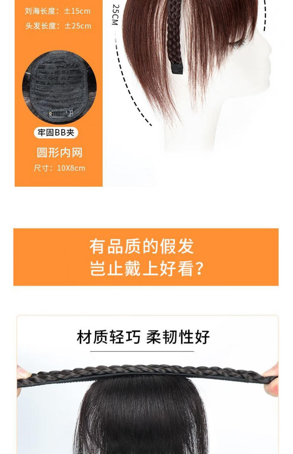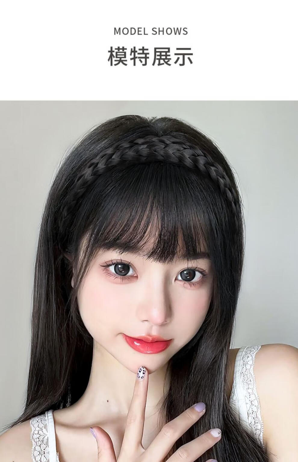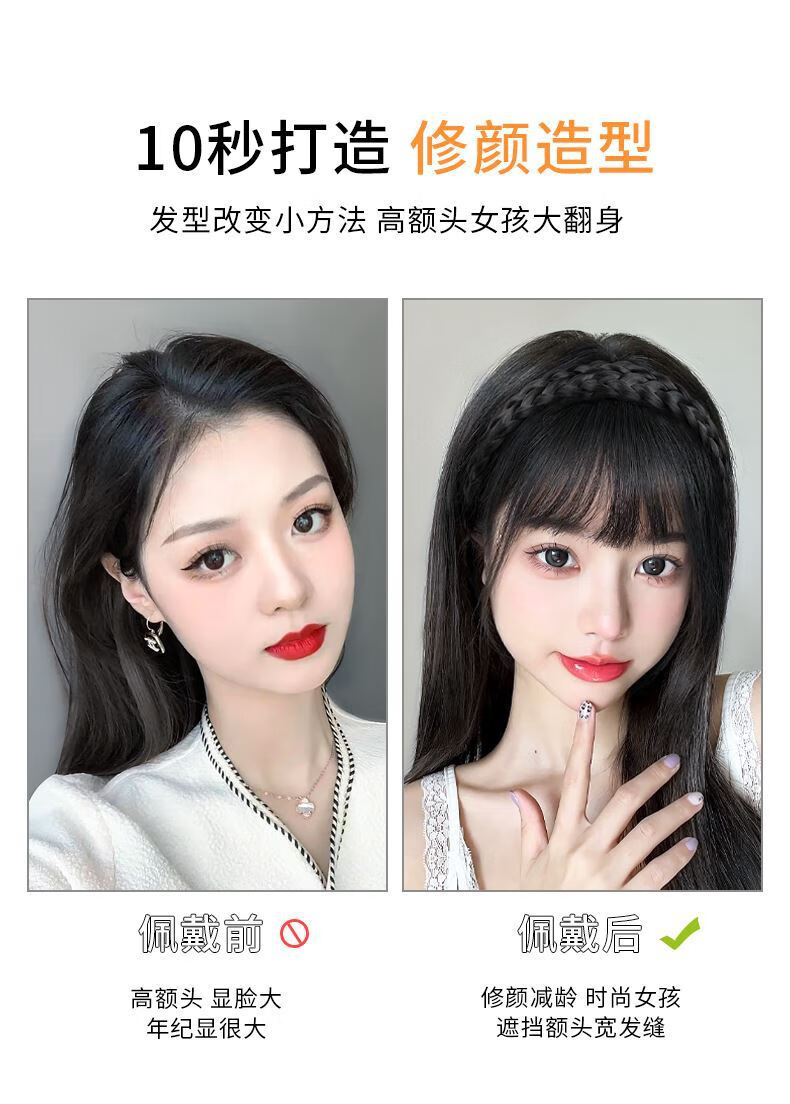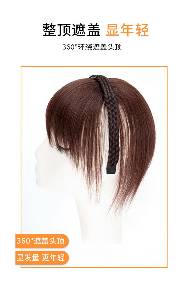 Moyan (MOYAN) wig headband for women with braided bangs, one-piece headgear to cover white hair, real hair on forehead, seamless air bangs, wig piece, high temperature wire - headband with bangs, light brown A13-102