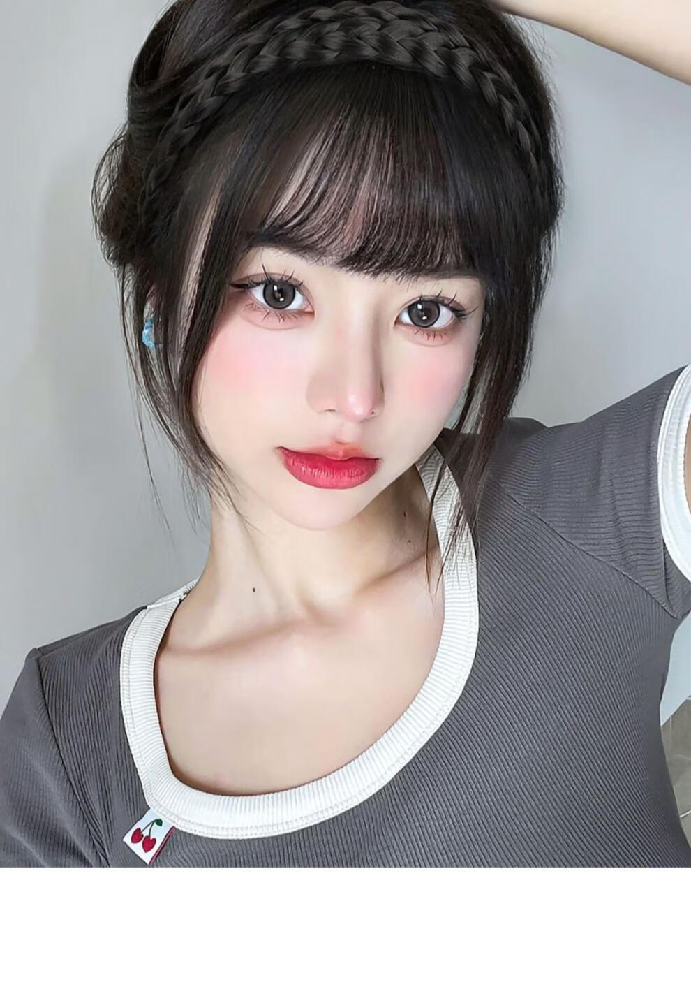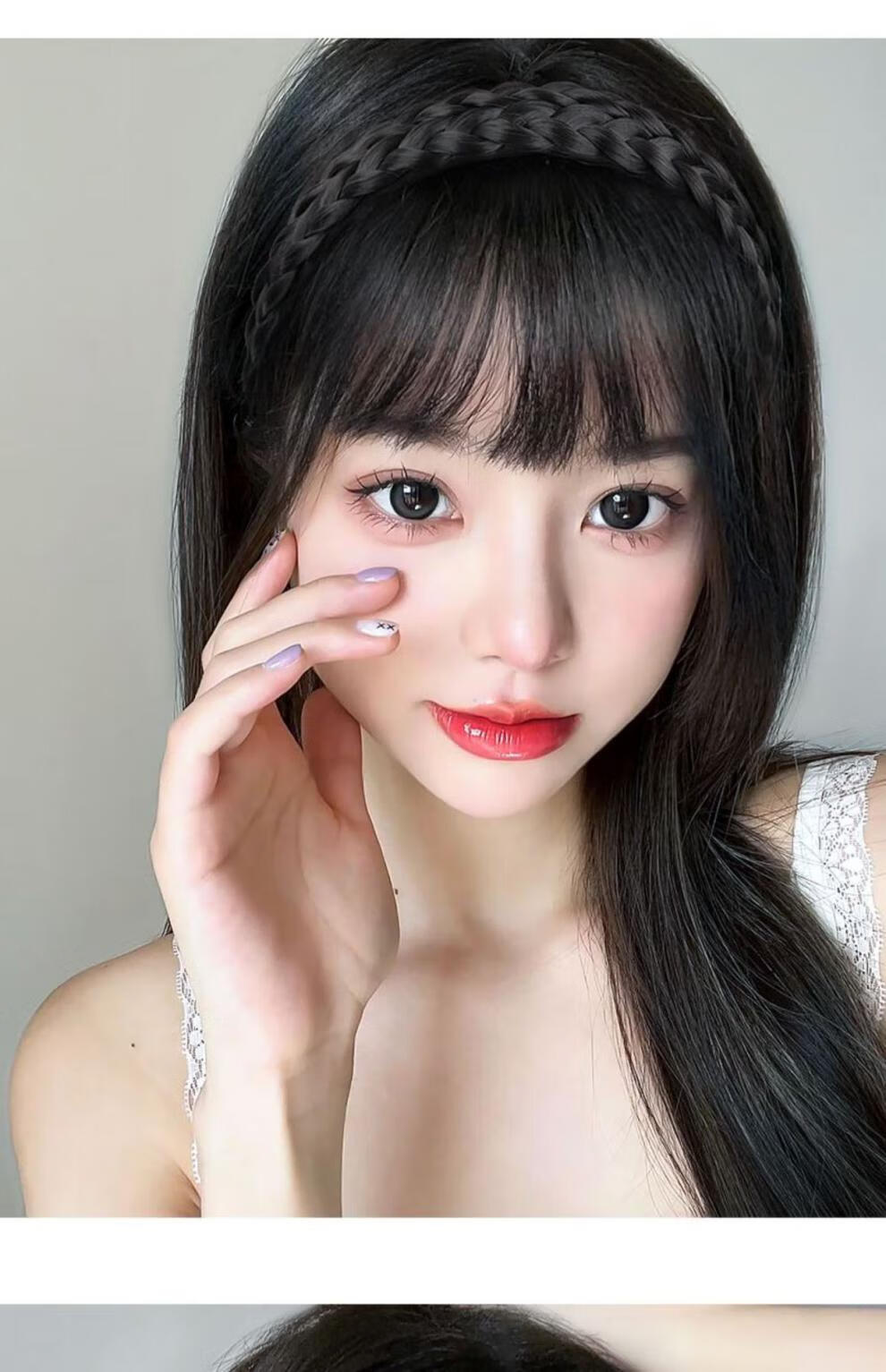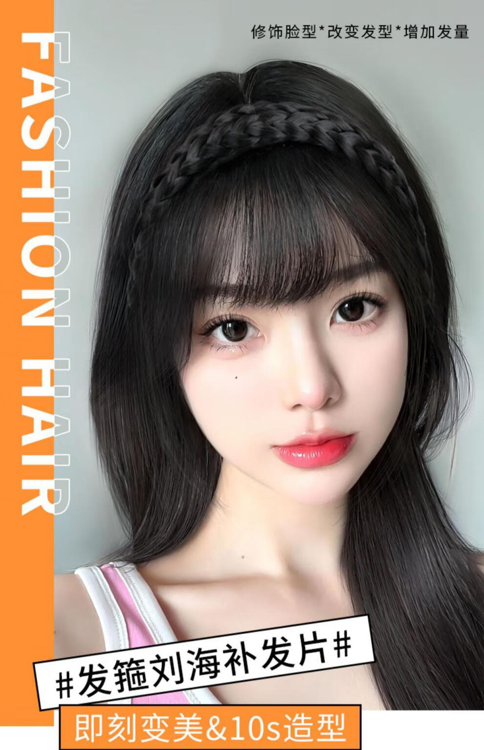 Moyan (MOYAN) wig headband for women with braided bangs, one-piece headgear to cover white hair, real hair on forehead, seamless air bangs, wig piece, high temperature wire - headband with bangs, light brown A13-102