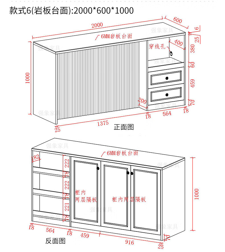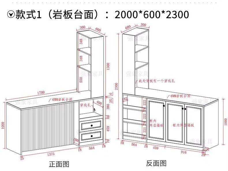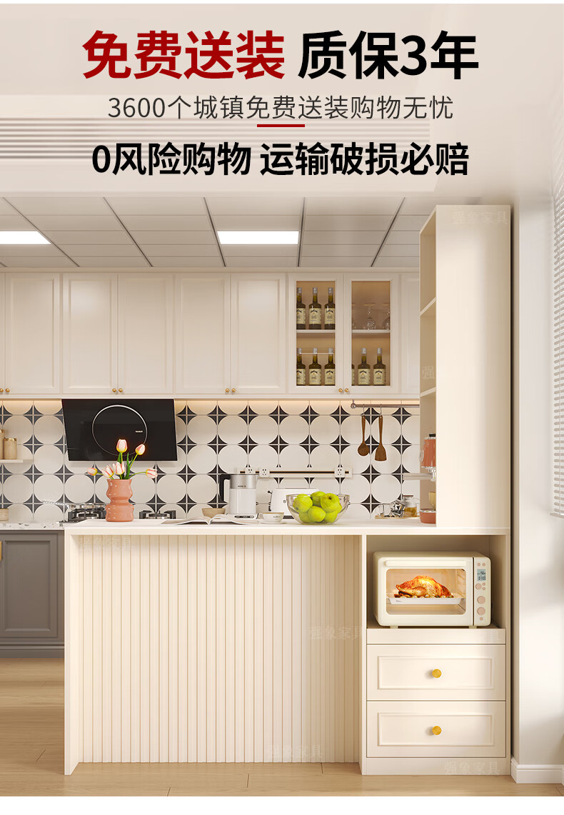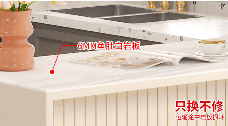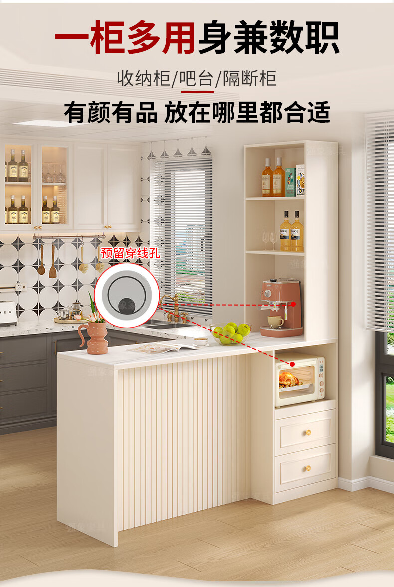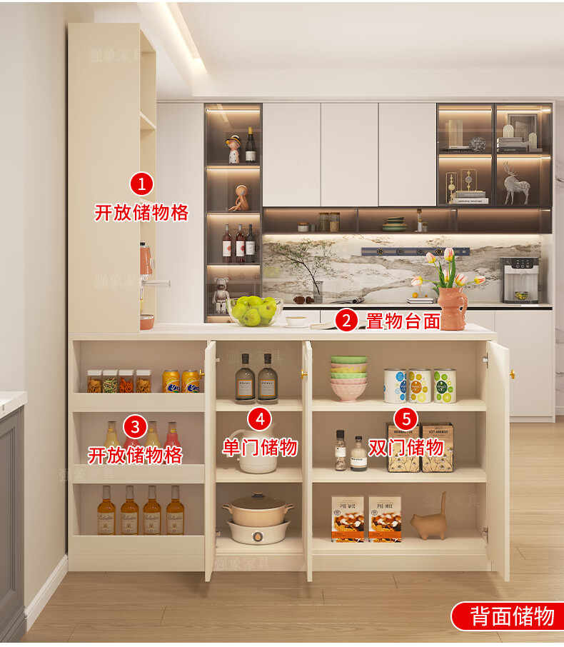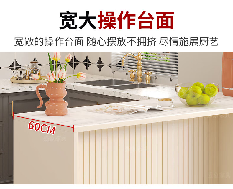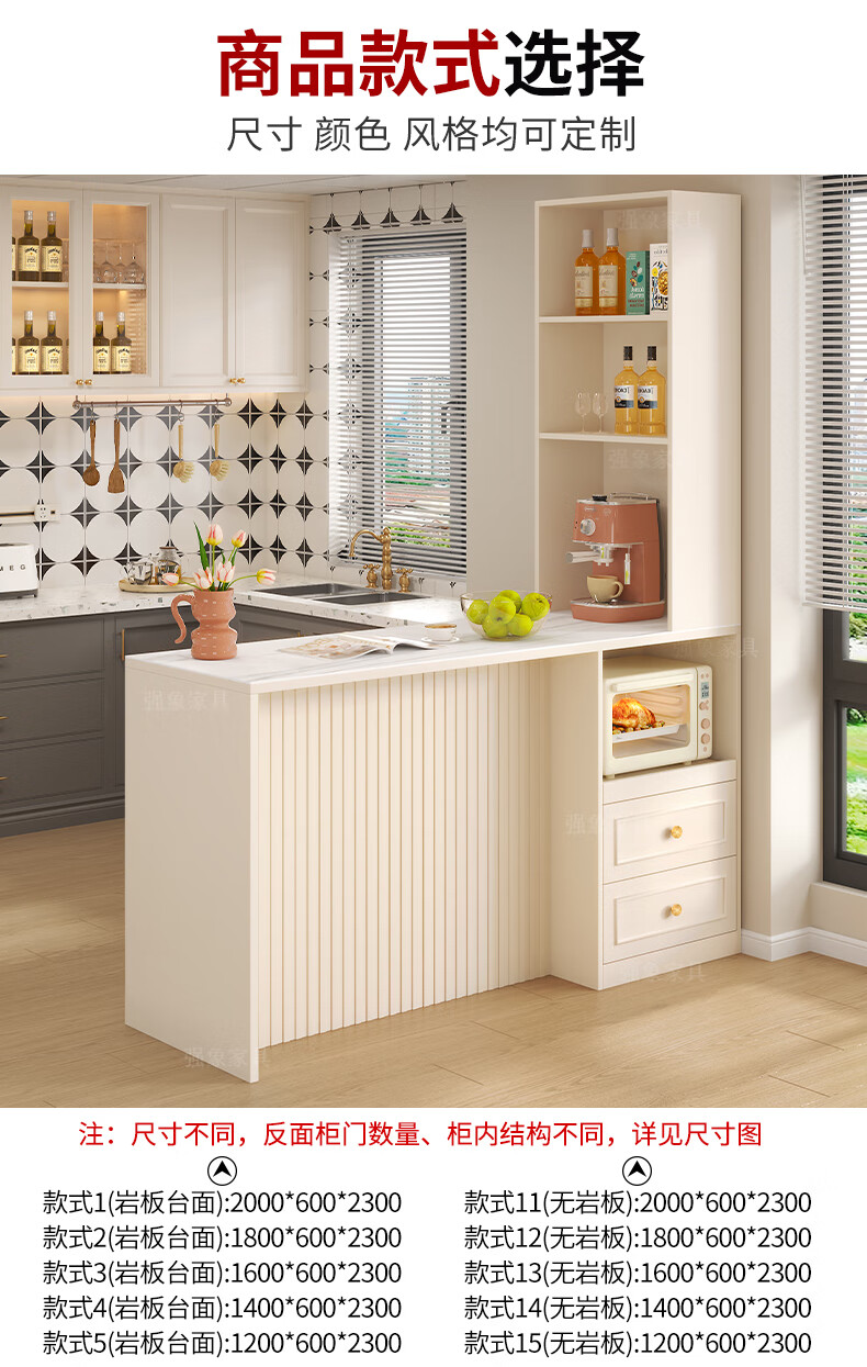 Qiangxiang Cream Style Slate Sideboard Dining Table Integrated Bar Kitchen Storage Island Table Partition Cabinet Small Apartment G259 Style 1 (Stone Table Top) 2000*600*2300