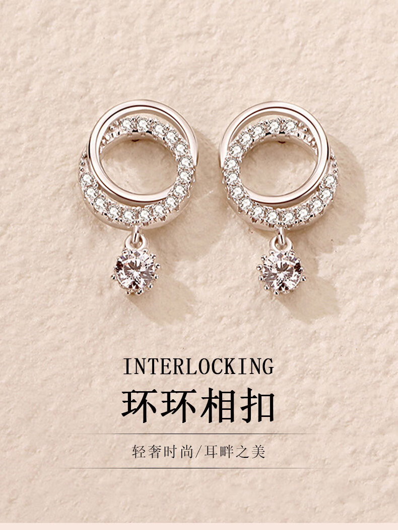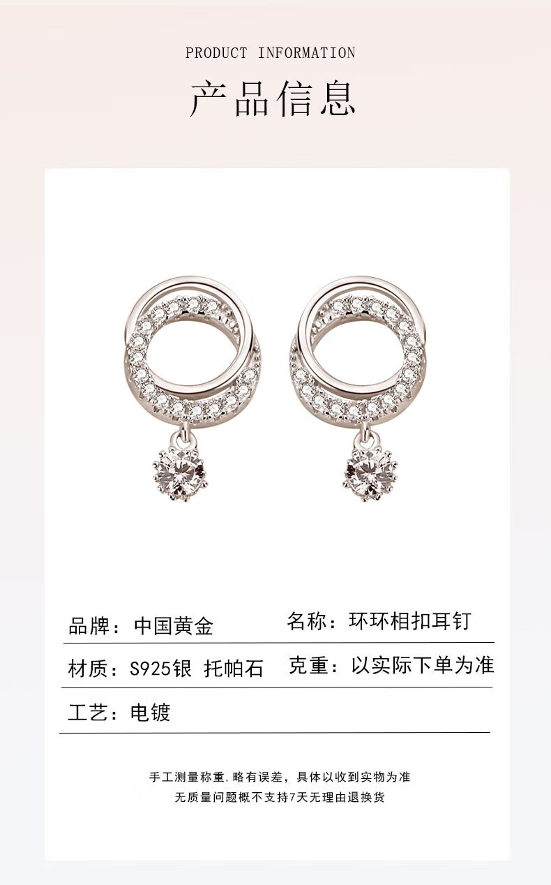 CHINA GOLD S925 Silver Interlocking Earrings Women's Jewelry Earrings Valentine's Day Birthday Gift for Girlfriend and Wife Delivery Today/Next Day Interlocking Earrings