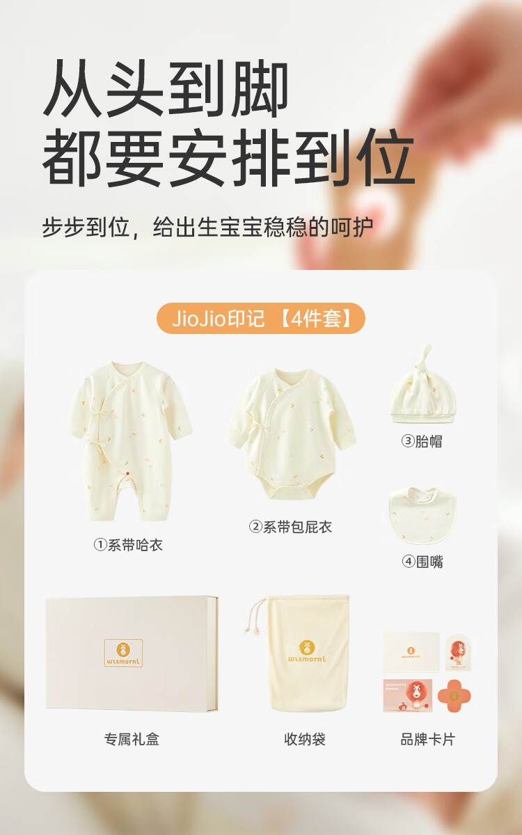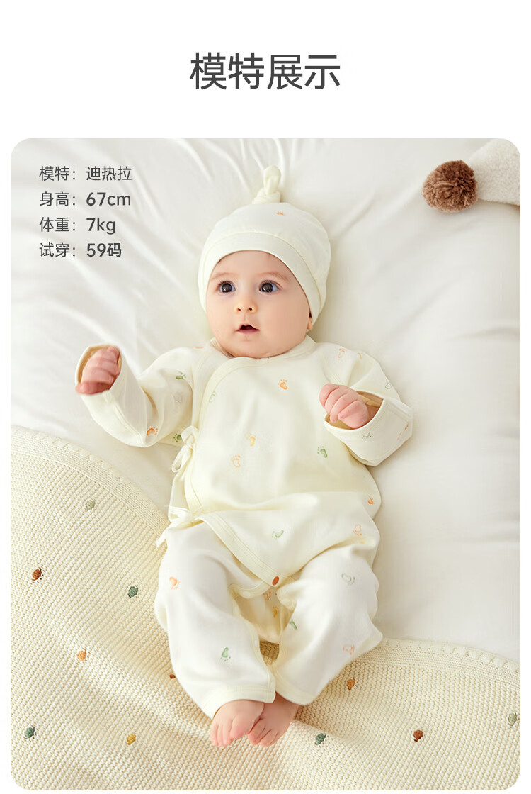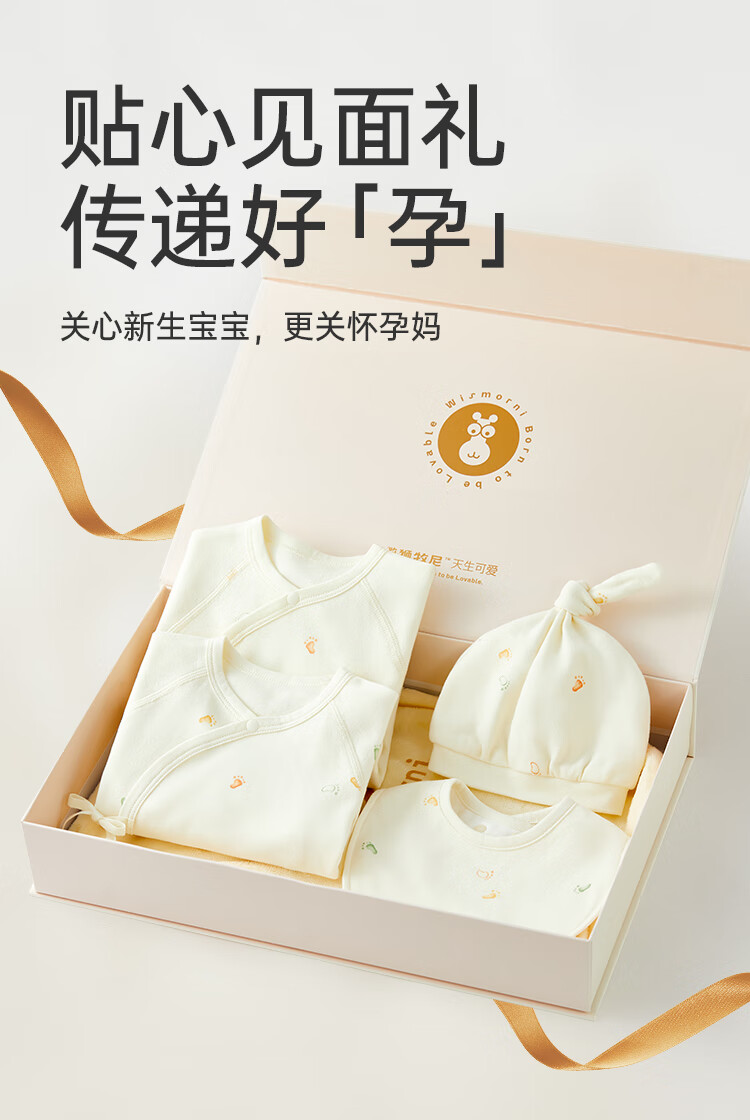 Wei Shi Muni Pregnant Mother's Gift Newborn Baby Pure Cotton Clothes Baby One-piece Clothes Gift Box 2-piece Gift Box Set (Four Seasons) 59cm