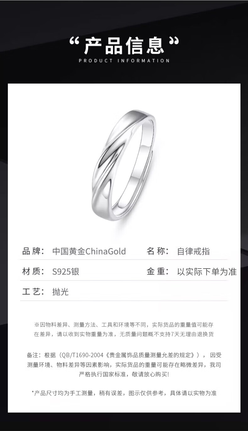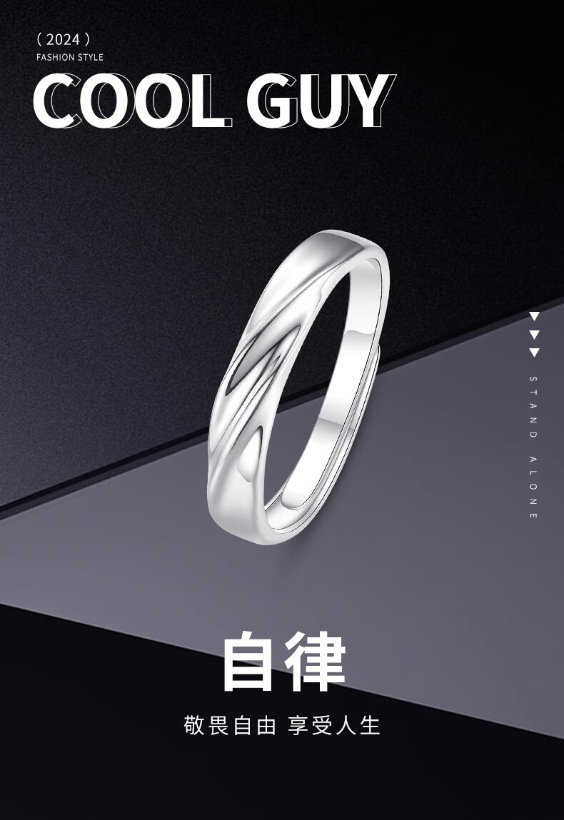 China Gold (CHINA GOLD) self-discipline silver ring new tail ring niche men's ring as a Valentine's Day birthday gift for the Year of the Horse and animal year gift for your boyfriend Self-discipline Ring-S925 Silver Men's Style-Zhongjin Gift Box