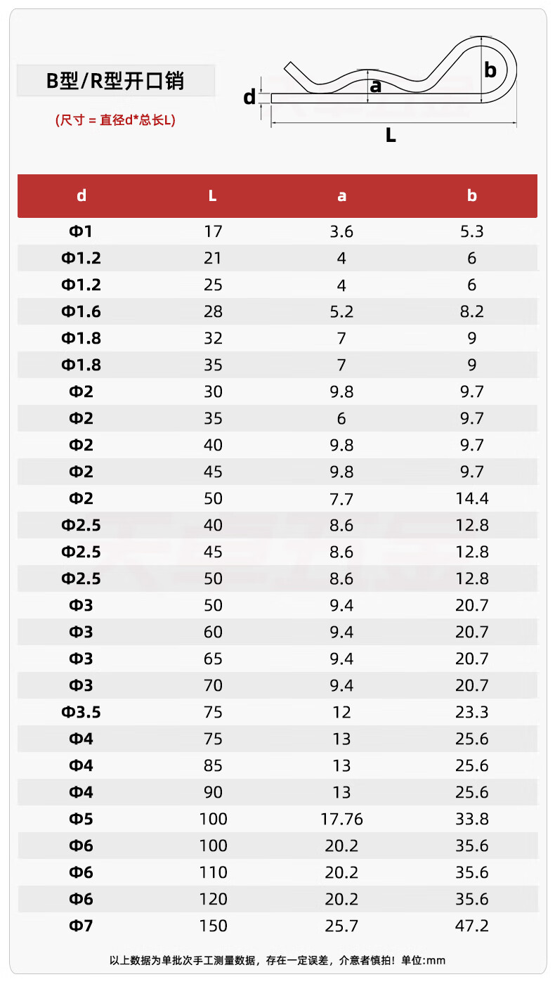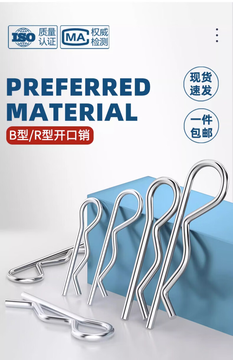 Tianzhuo Hardware B-shaped pin R-shaped pin elastic closed opening pin stainless steel wave pin R-shaped pin bayonet hairpin lock pin spring steel 5*100 (5 pieces)