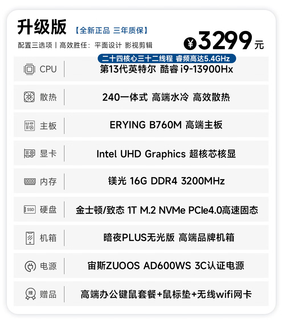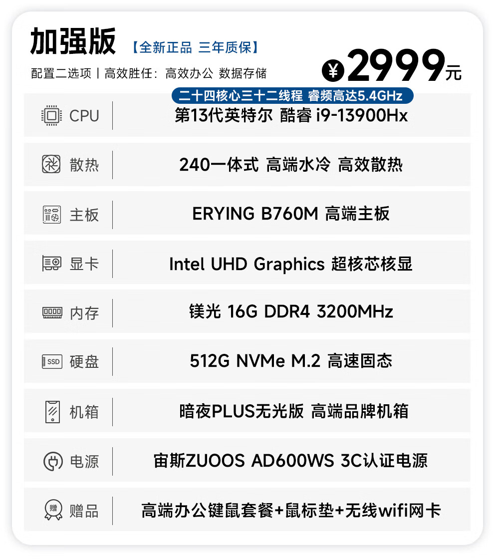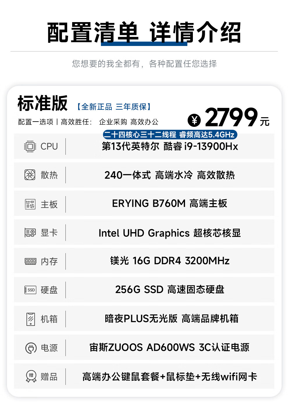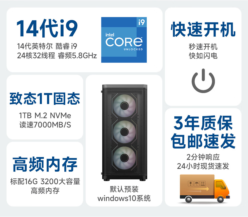 Reso Intel Core i9 12900/i9 13900/i9 14900HX desktop office gaming computer host enterprise procurement designer complete machine DIY assembly machine complete set Configuration three 13th generation Core i9丨16G丨1TB M.2