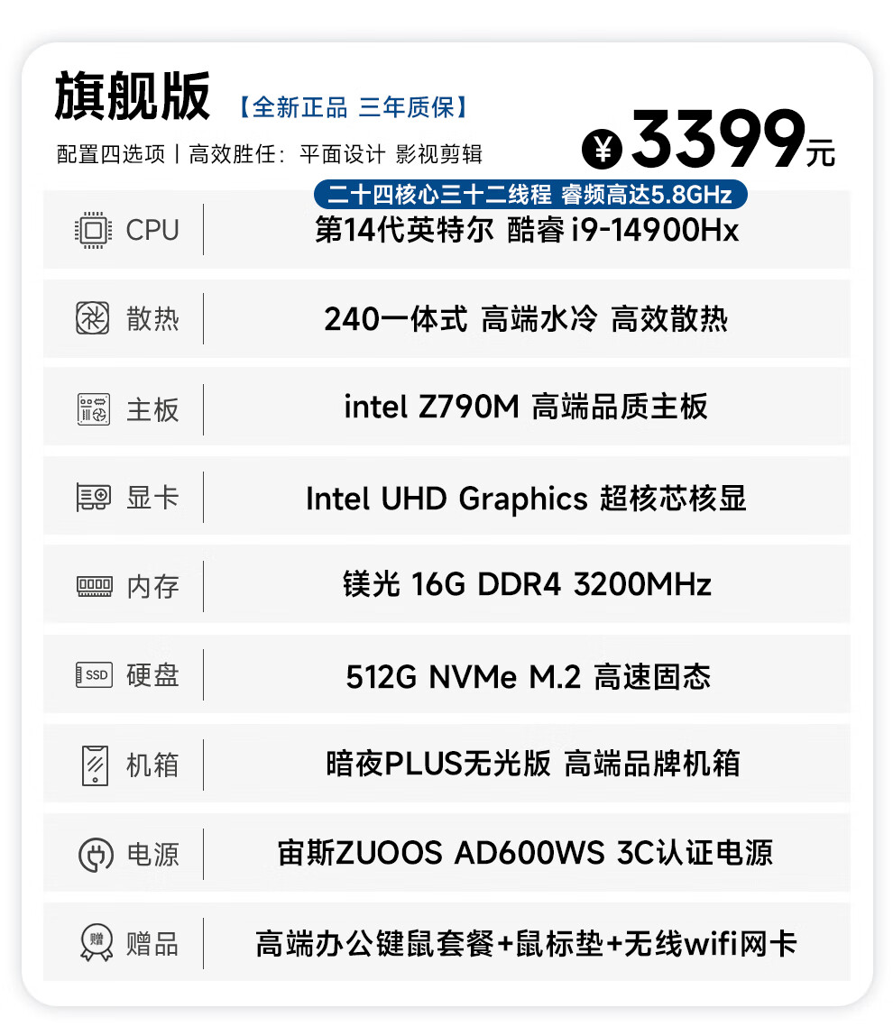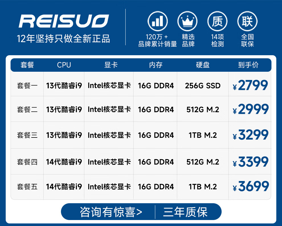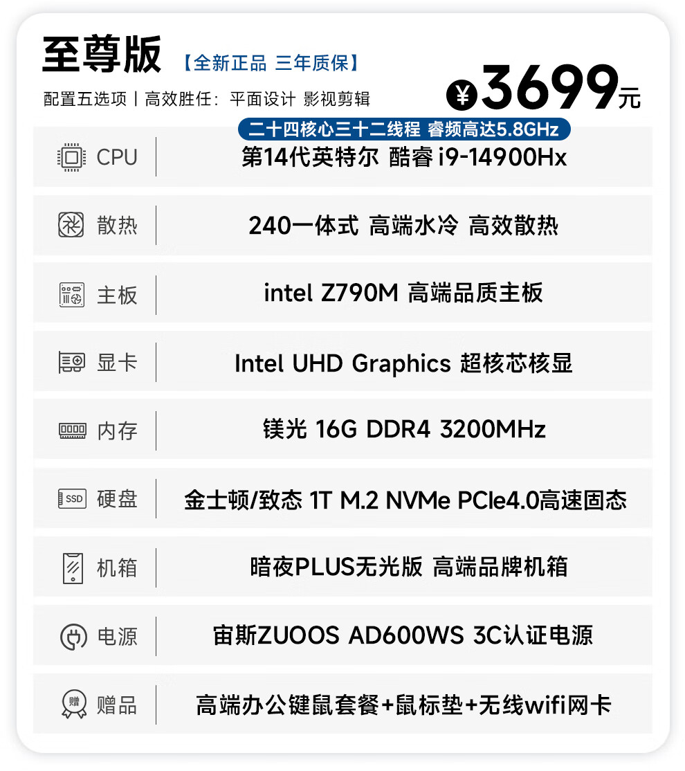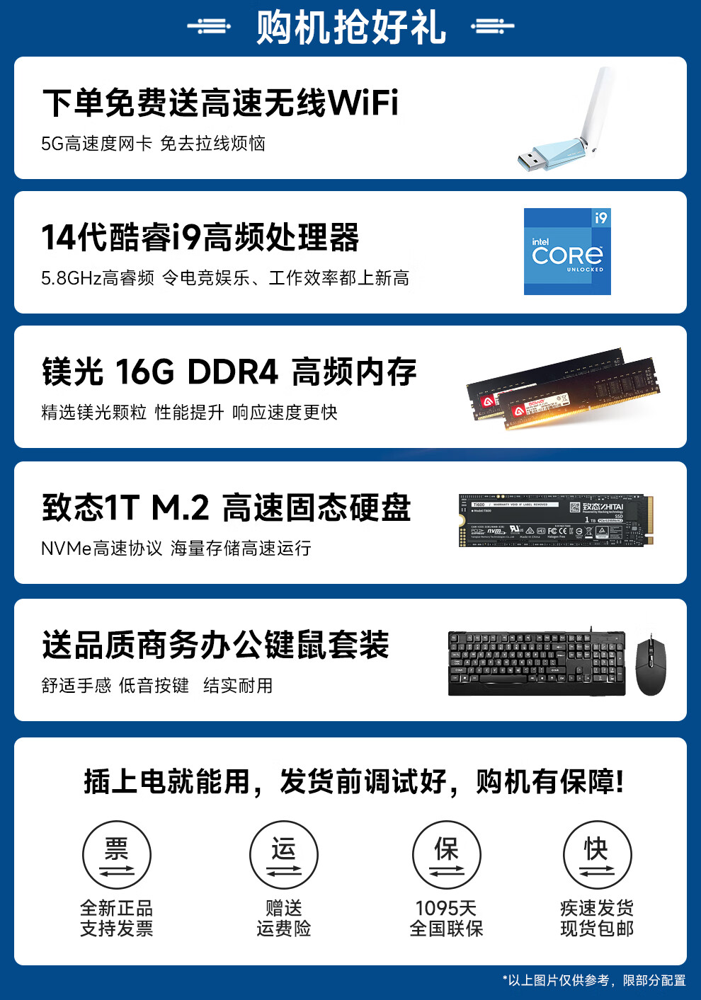 Reso Intel Core i9 12900/i9 13900/i9 14900HX desktop office gaming computer host enterprise procurement designer complete machine DIY assembly machine complete set Configuration three 13th generation Core i9丨16G丨1TB M.2