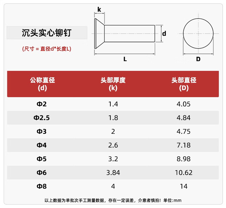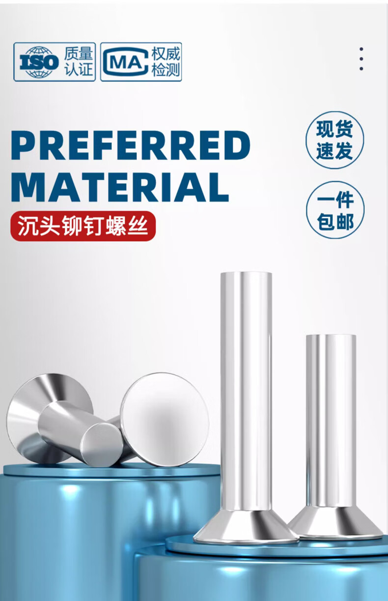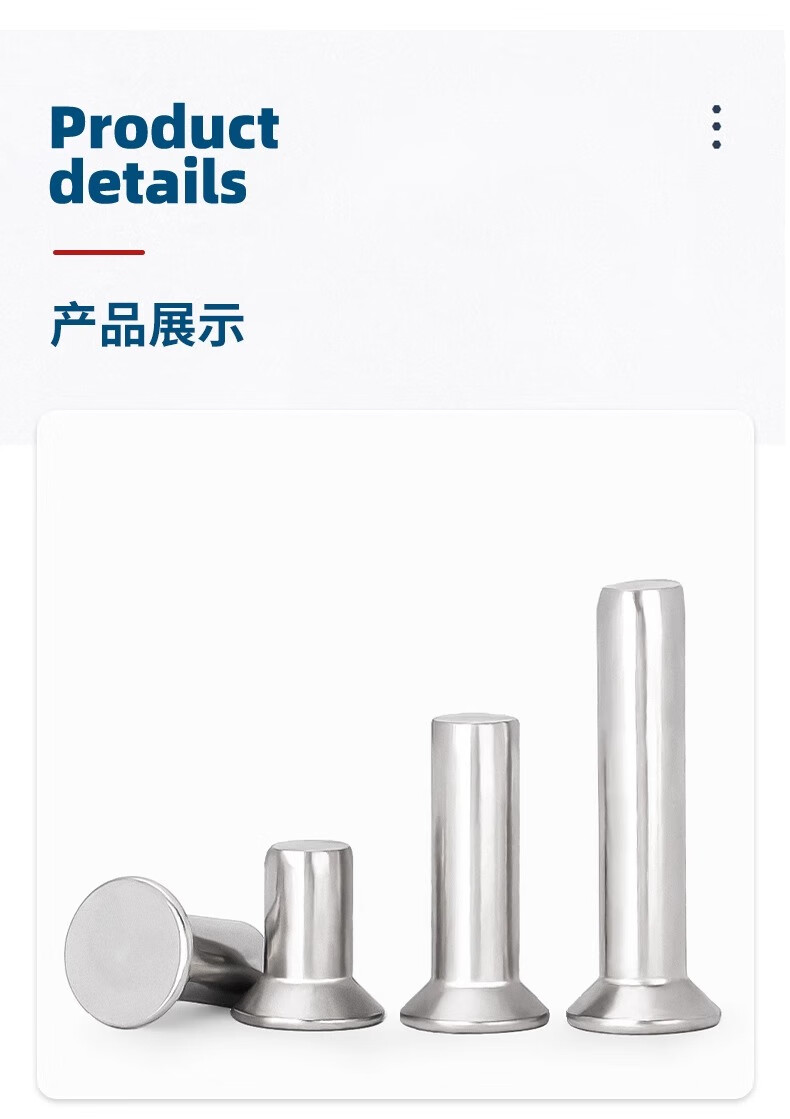 Tianzhuo Hardware GB869 304 stainless steel countersunk head solid rivet flat head flat cone head knock-type M2M2.5M3M4M5M6M8 M8*30-5 pcs