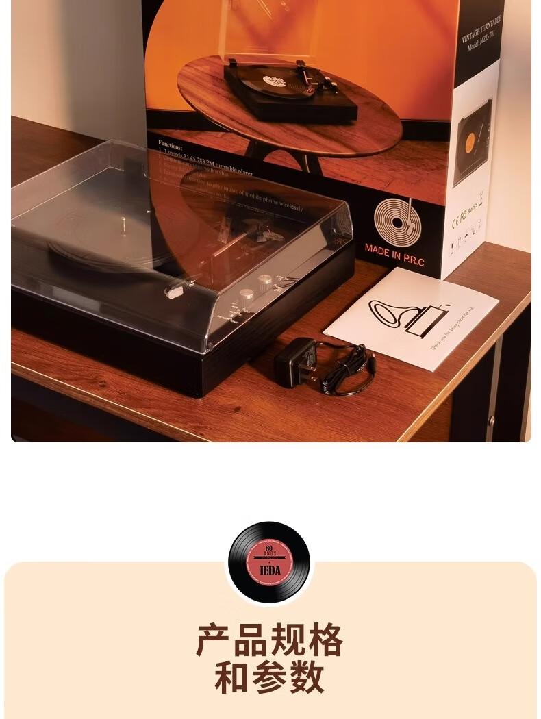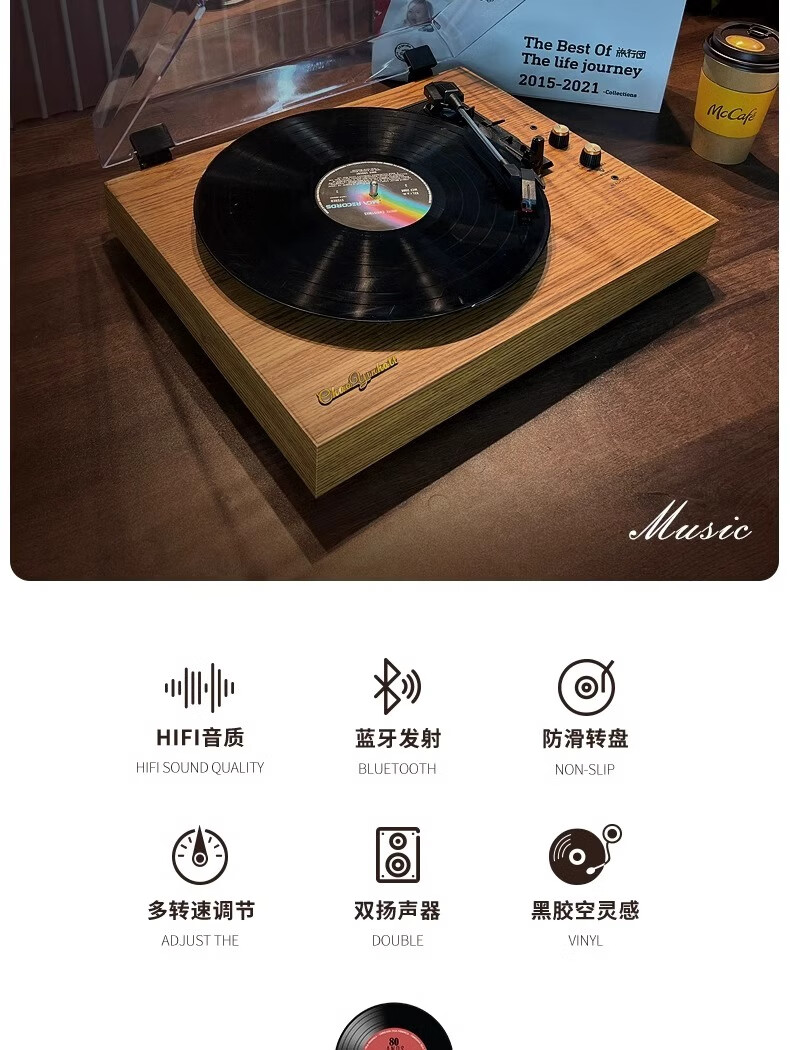 Xinku gives away records/gift bags, vinyl record player, retro gramophone, integrated audio, Bluetooth speaker, living room, European style housewarming, wedding, old-fashioned ornaments, table, birthday gift, classic version, black and red + stylus + wireless Bluetooth HIFI sound quality