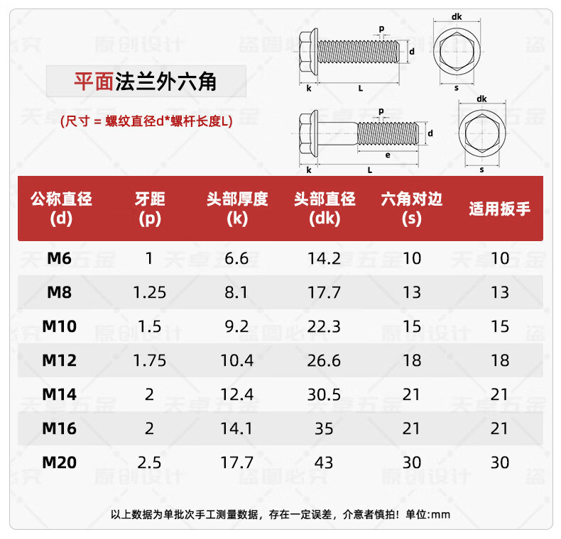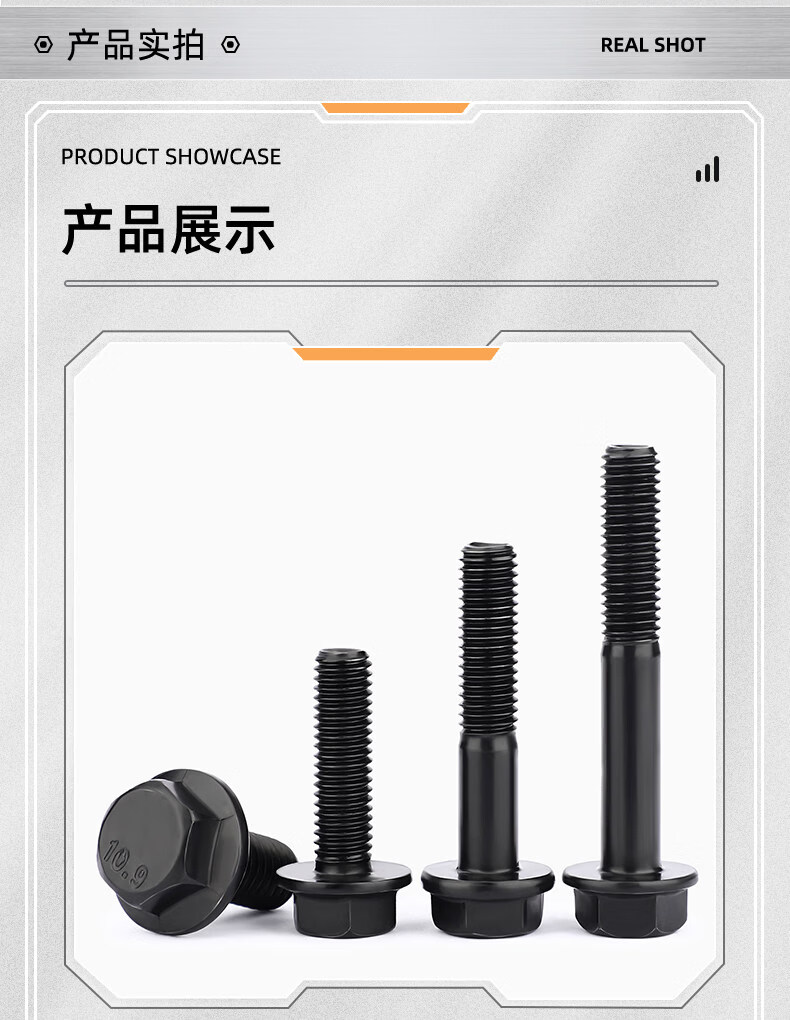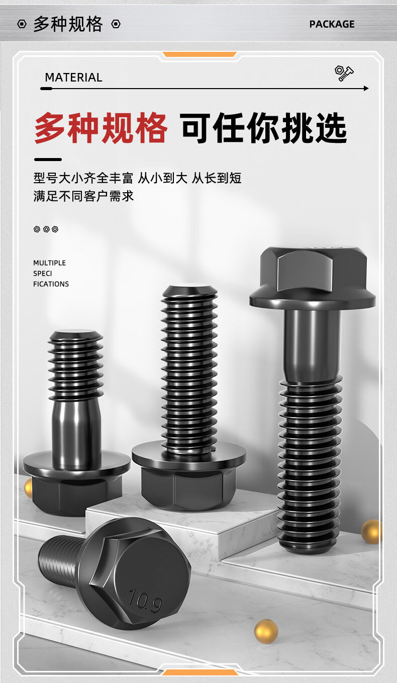 Tianzhuo Hardware Grade 10.9 flange outer hexagonal bolt GB5789 automotive auto parts screws MM6M8M10M12M14-M20 flat M8*25 full thread 5 pcs