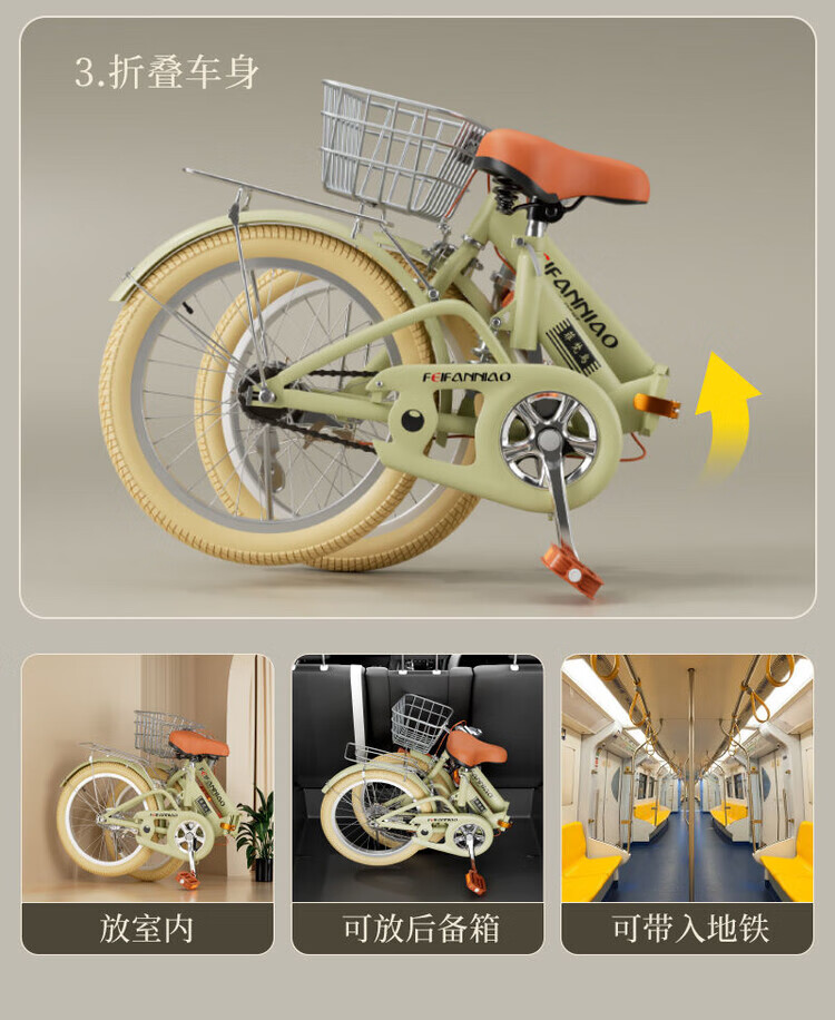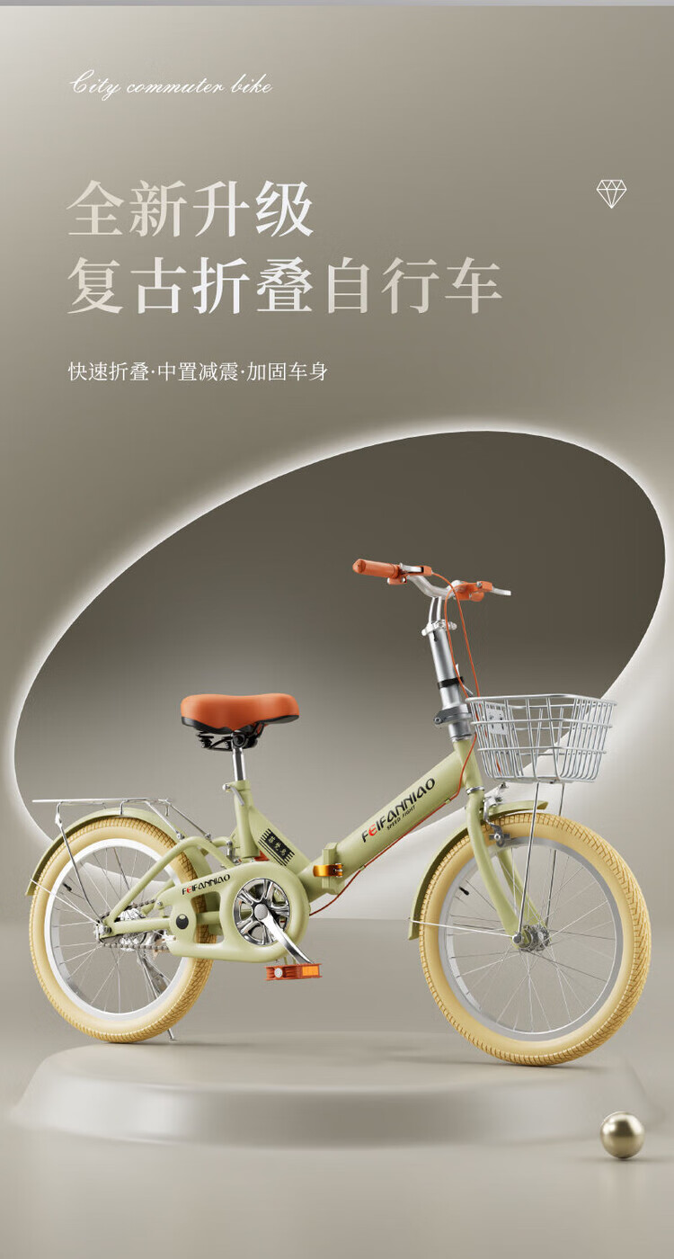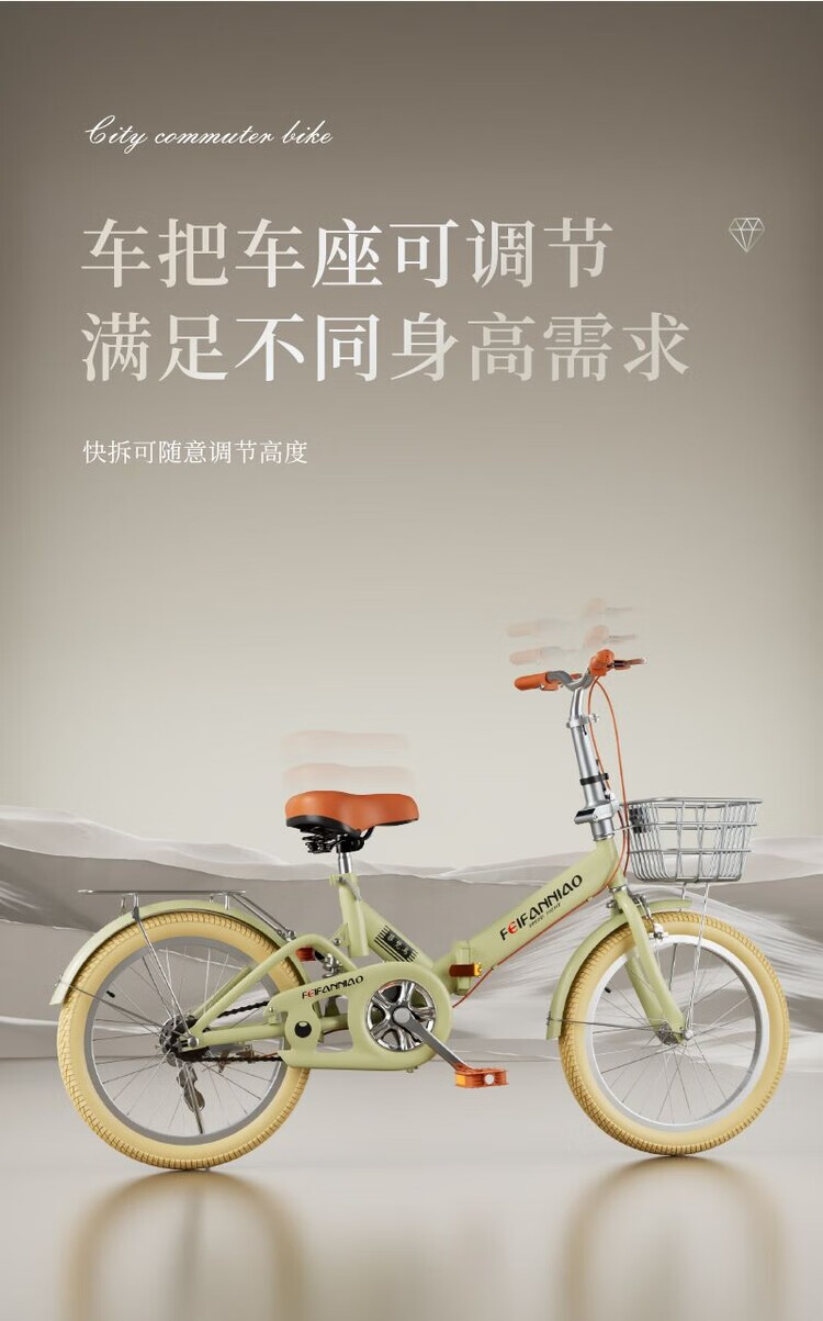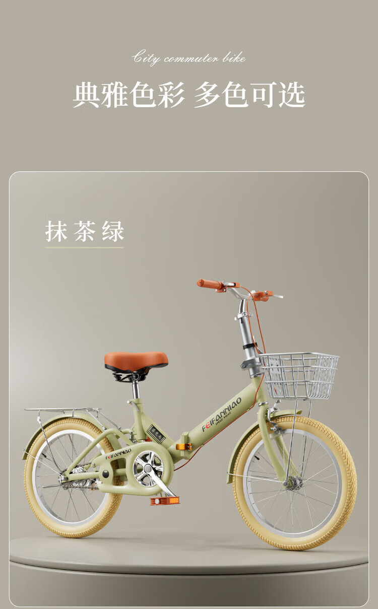 Installation-free folding bicycle for adults, children, and men, 20/22-inch ultra-light portable single-speed bicycle for work, new matcha green spoked wheel + gift bag, 20-inch suitable for height 125-155 cm