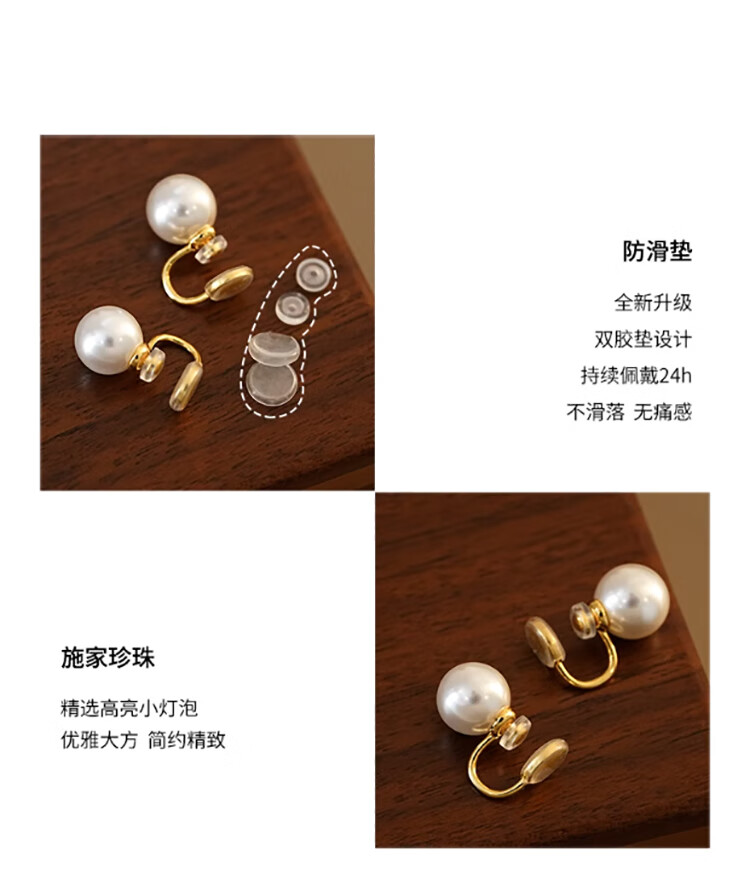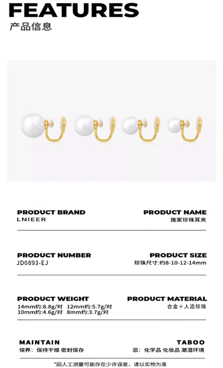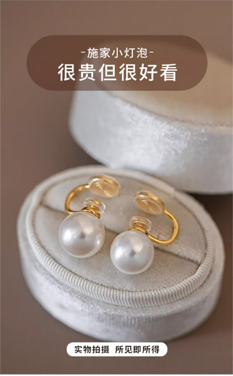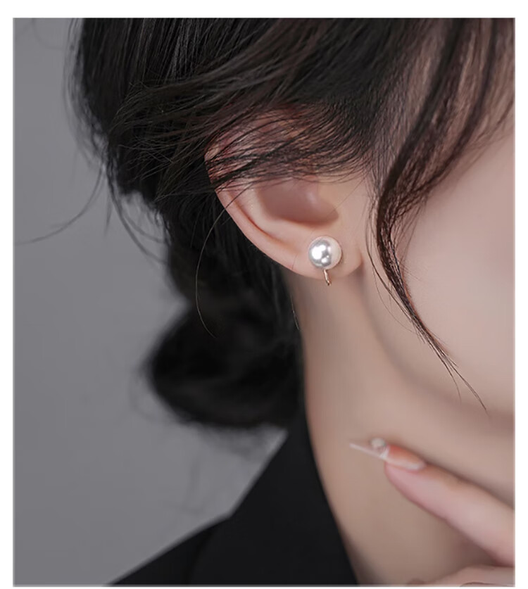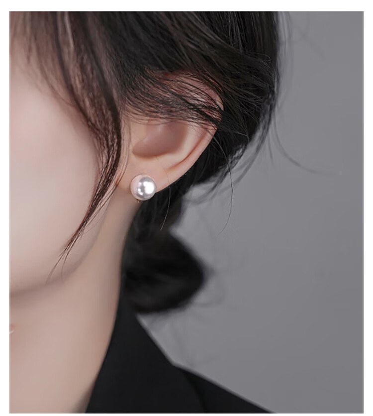 Lnieer Shijia Pearl Earrings No Piercing Pearl Ear Clip Women's New Large Pearl Earrings Mosquito Repellent Disk Premium Autumn and Winter Earrings Fever Same Style Shijia Pearl Ear Clip 8mm