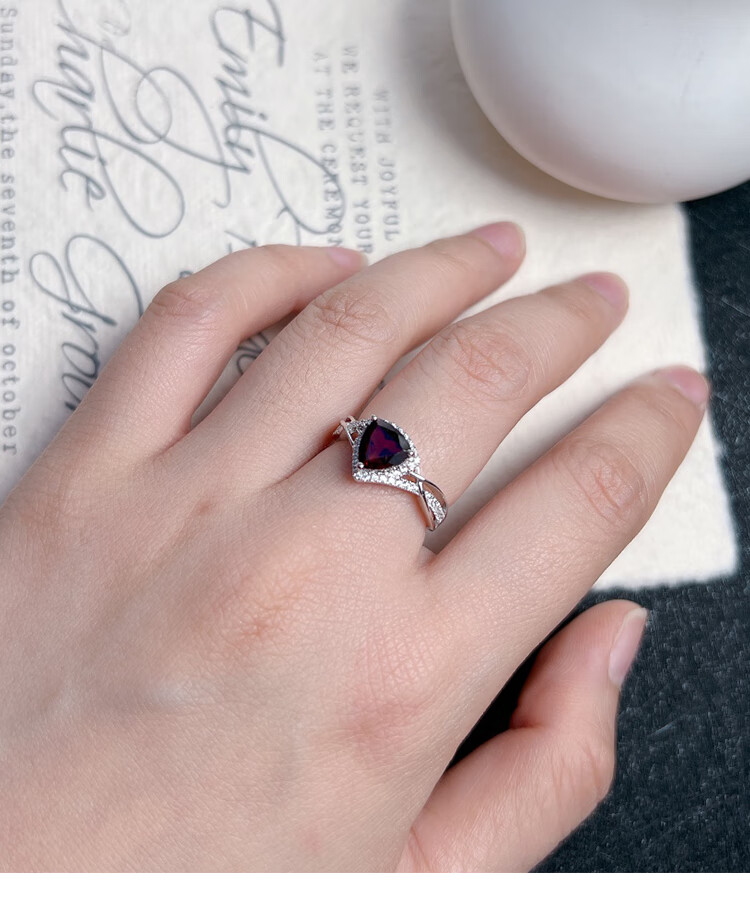 CAJJ Francois 1.0 carat garnet ring for women, natural colored gemstone, jewelry gemstone, 925 silver inlaid, size 15