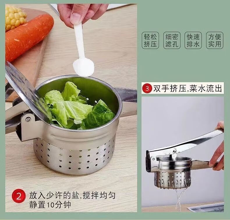 Meikejie vegetable filling water squeezer stainless steel manual juicer household juicer vegetable dehydration dumpling filling squeeze vegetable water artifact all steel thickened 16.5cm * full hole