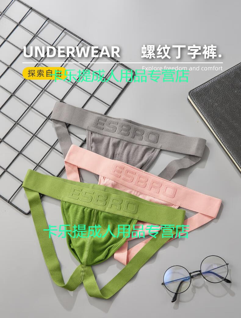 Long Night Sexy Men's Double Butt Briefs, Comfortable, Breathable, Personalized Ribbed U-convex Sexy Butt Lifting Thongs, Low Waist Double Butt Pants, Pink L