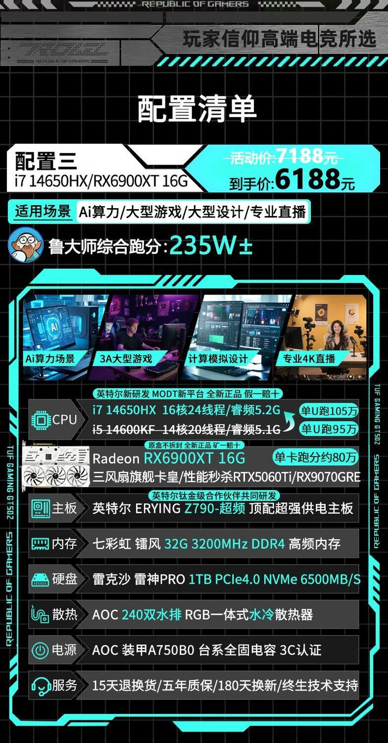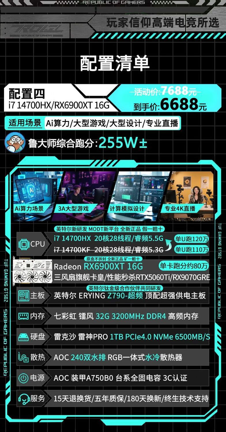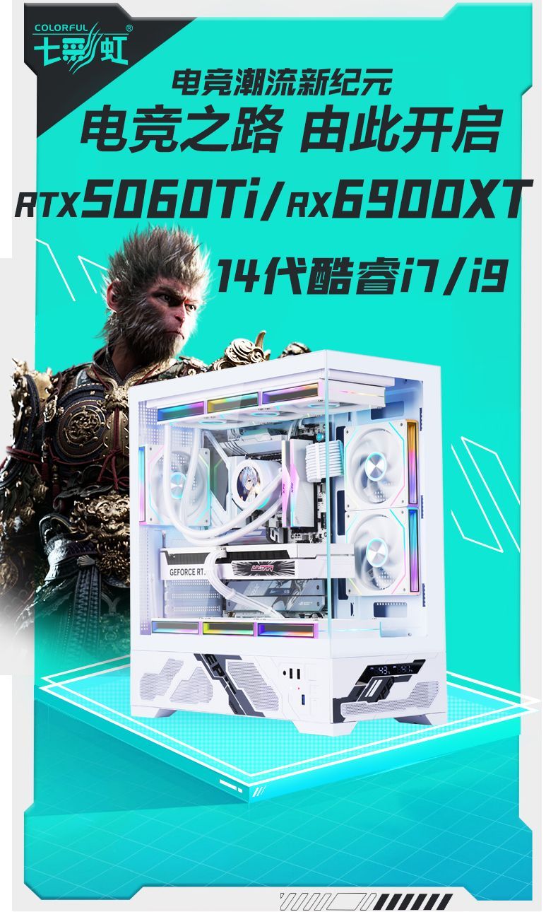 Colorful i9 14900KF/i7 14700KF/i5 14600KF+RTX5060Ti/RX6900XT card king desktop computer e-sports game AI live broadcast design and assembly host configuration five | 24 core 14th generation i9 + RX6900XT 16G computer host + five-year warranty AI computing power | e-sports | design | live broadcast