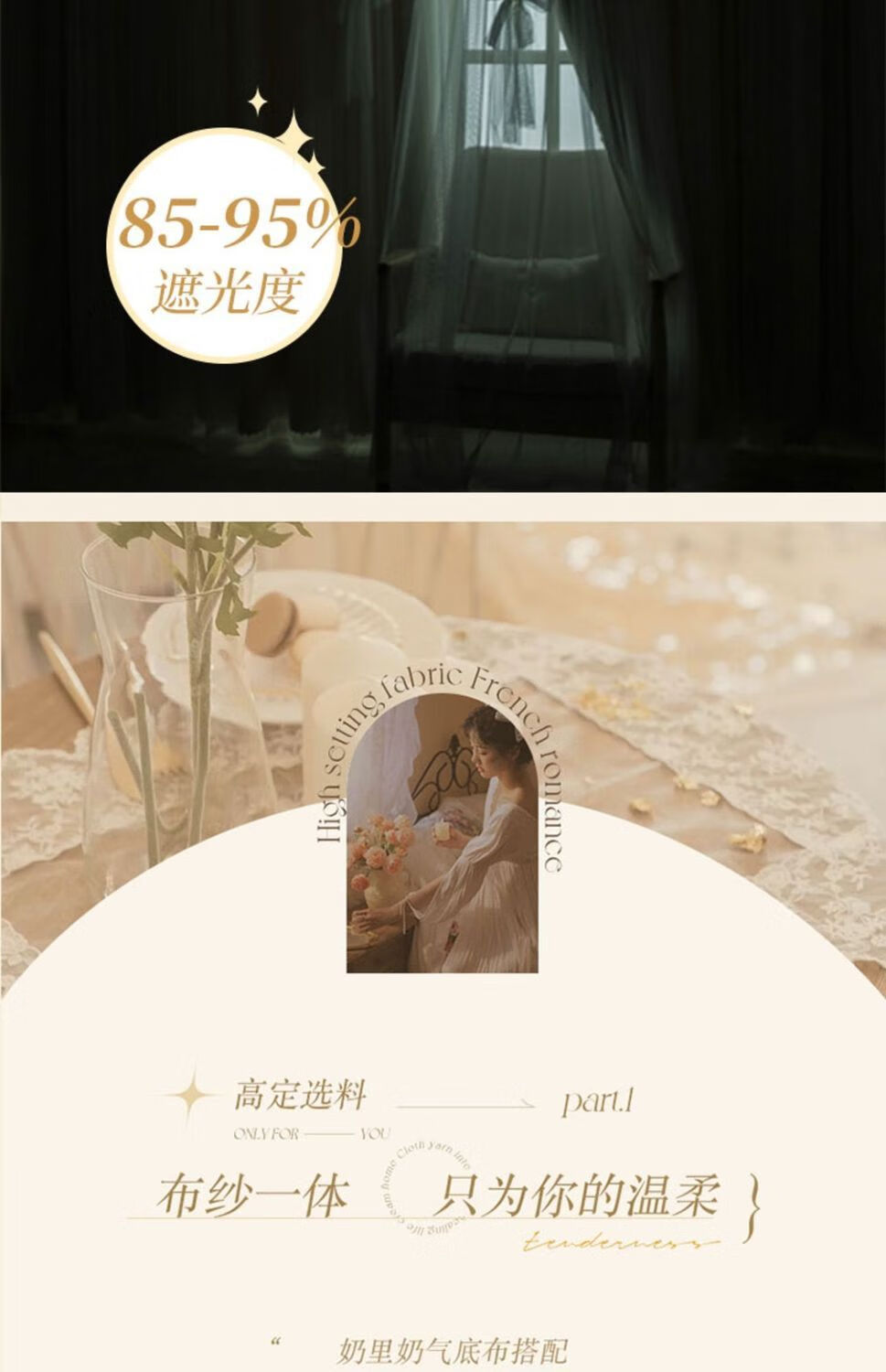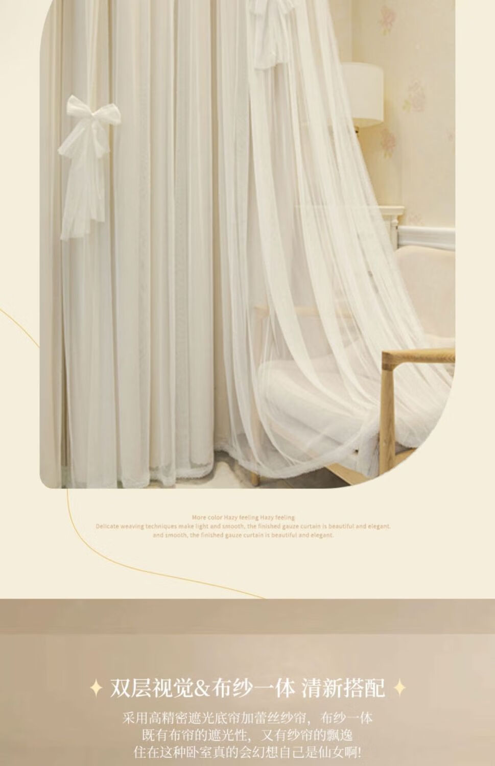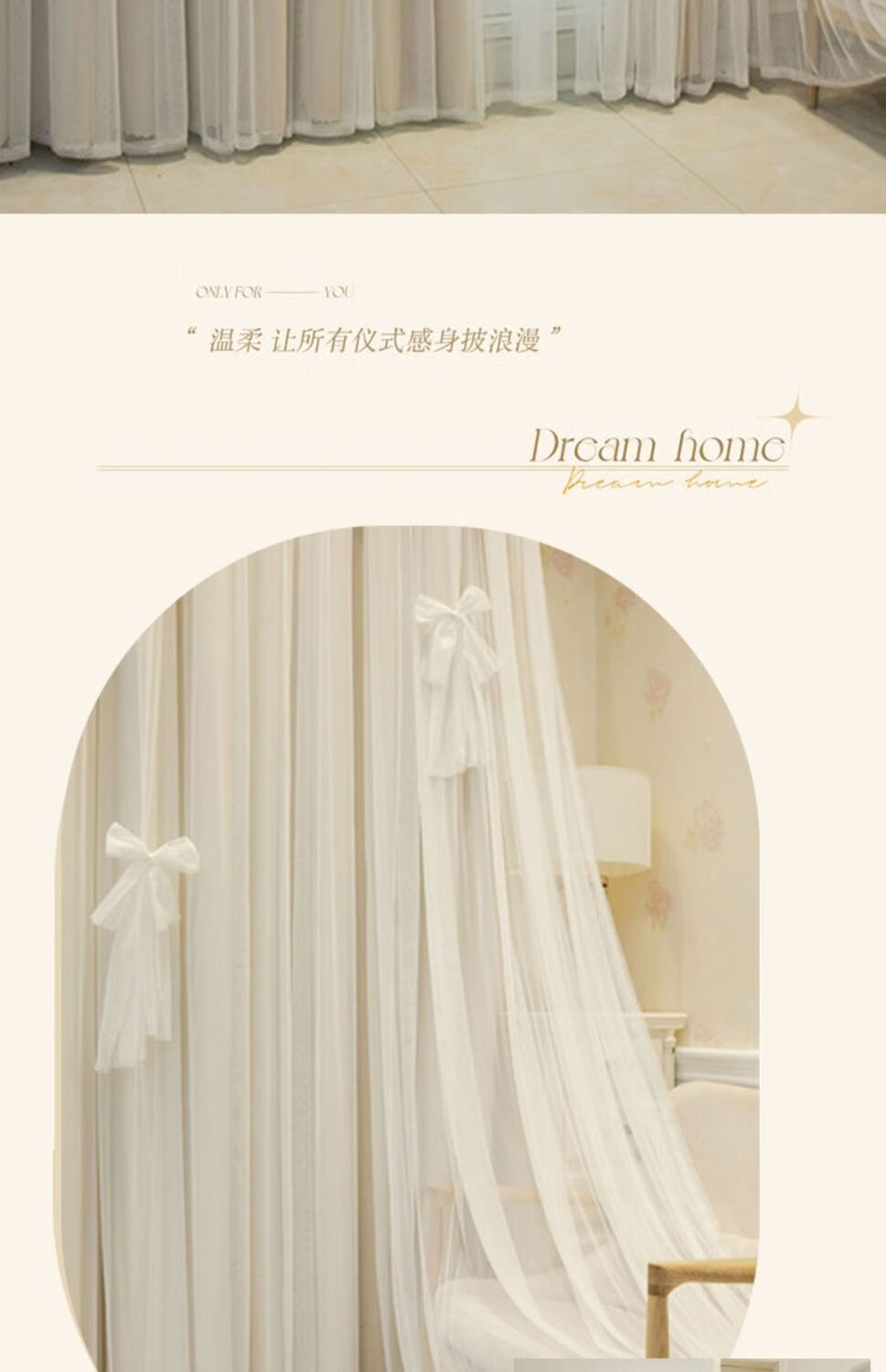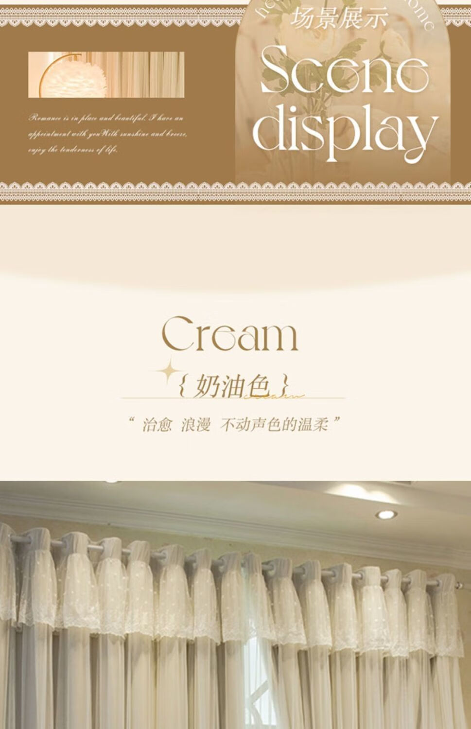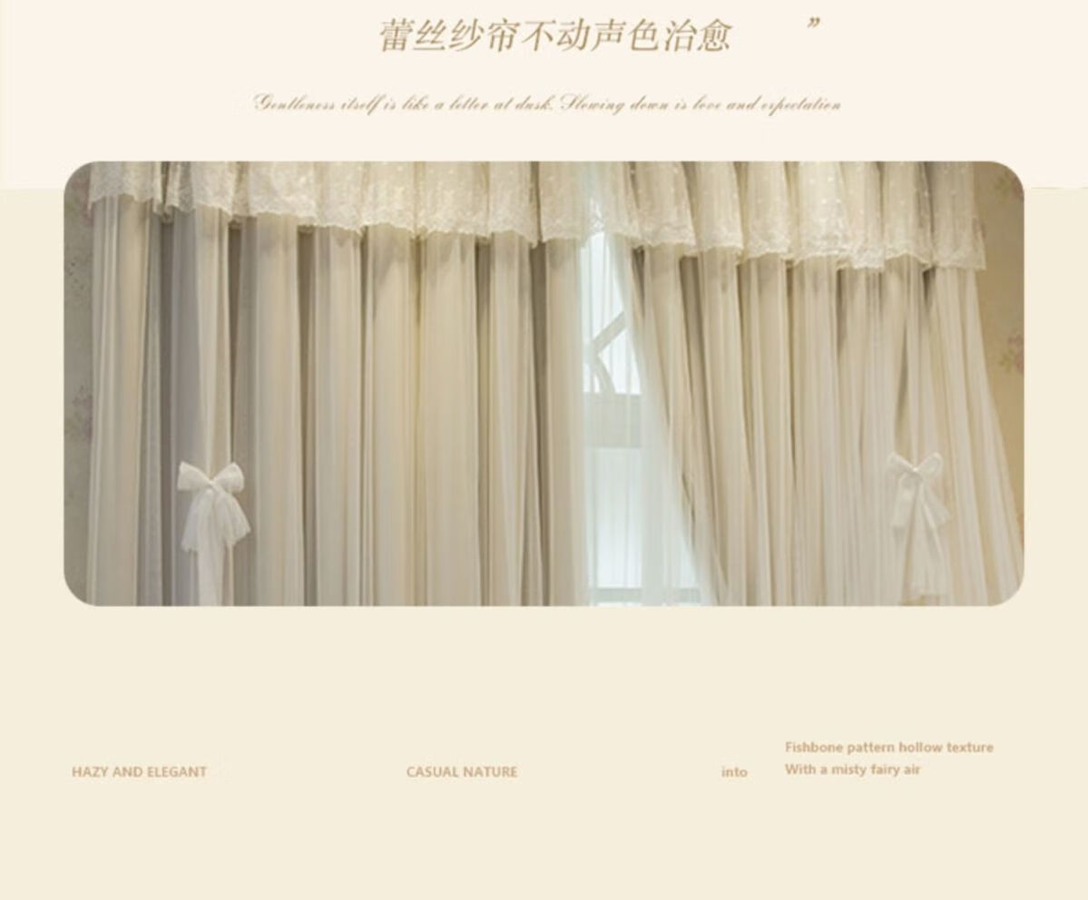 Ruiba Cream Style Curtains Blackout Beige Girly Bedroom Bay Window Double Layer Douyin Internet Celebrity Princess Style Fantasy Cloth and Gauze Integrated with Curtain Head - Not Hollow Cream Color Width 2.0*Height 2.7-Hook Type One Piece Height Adjustable