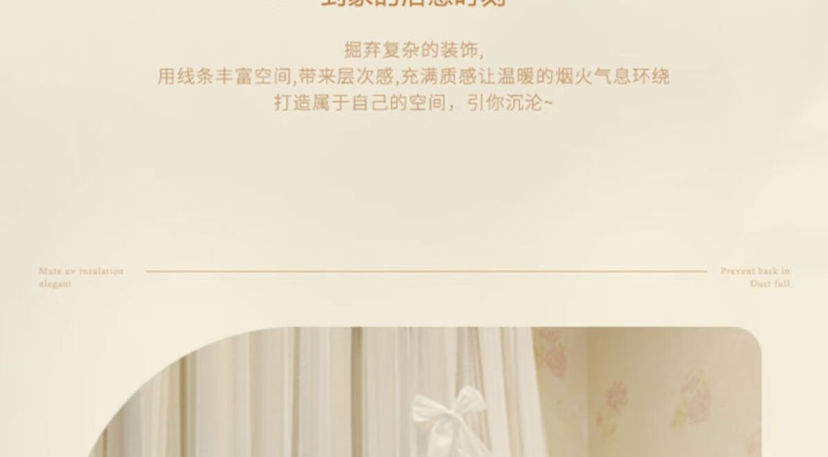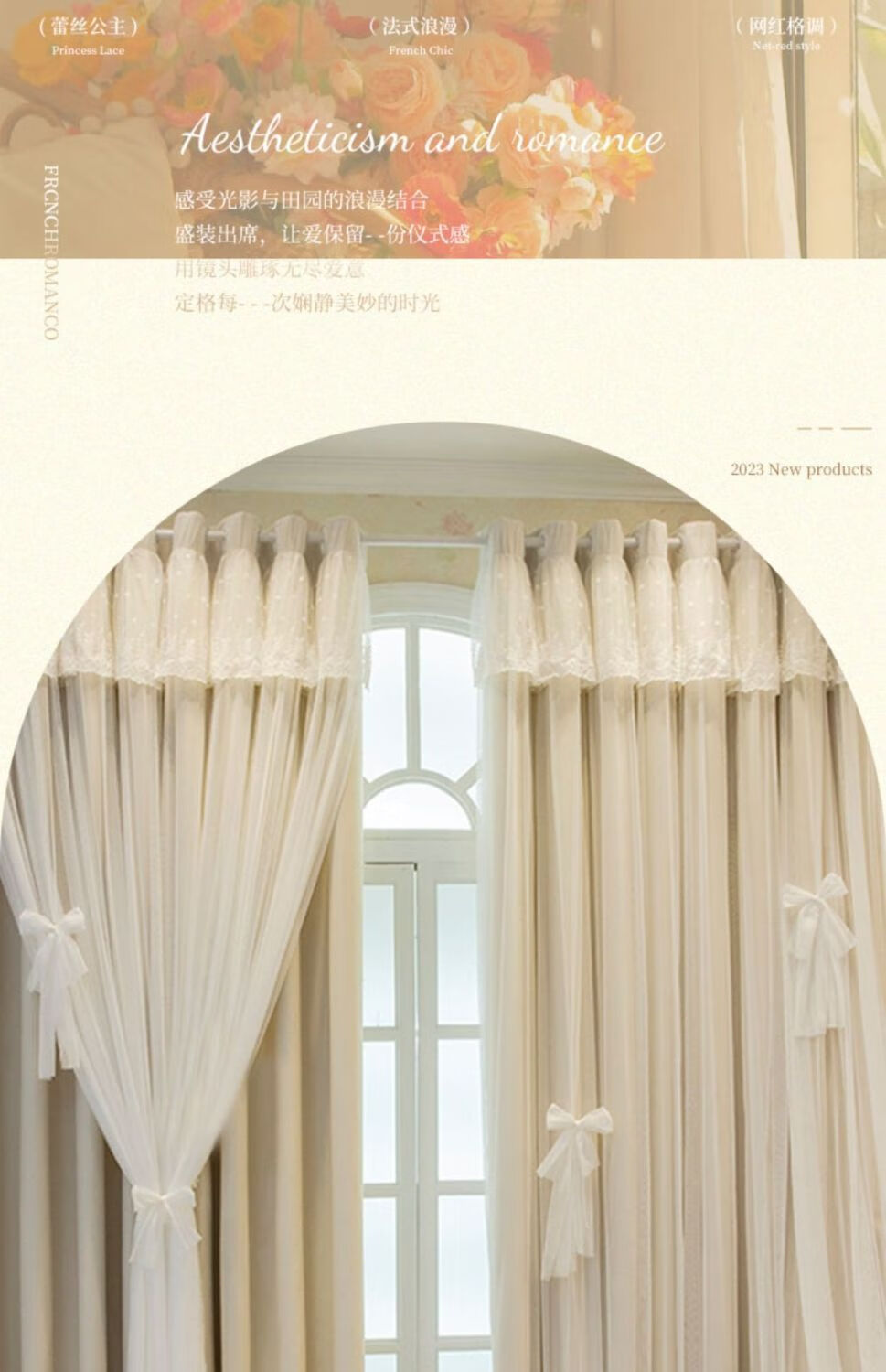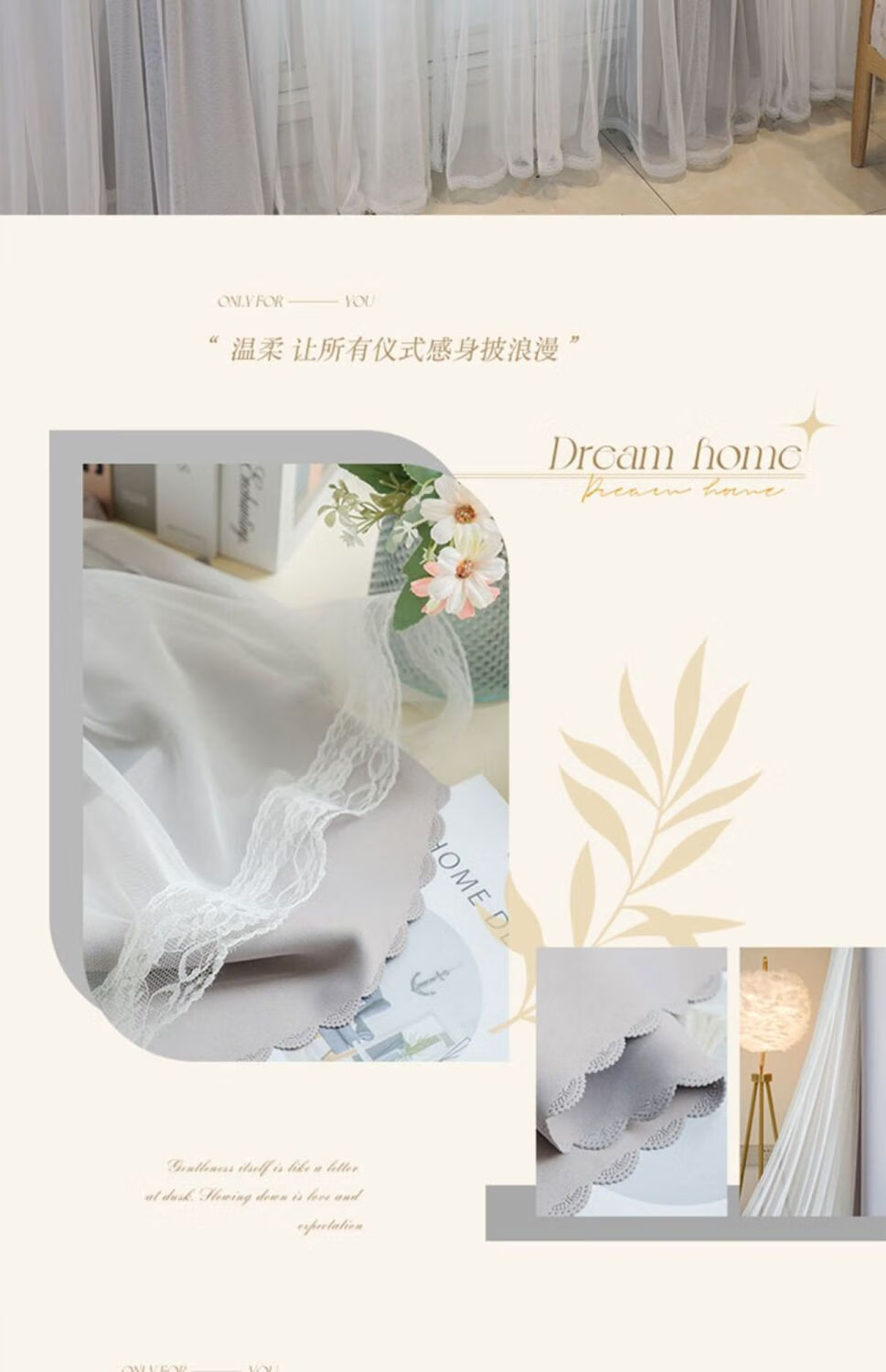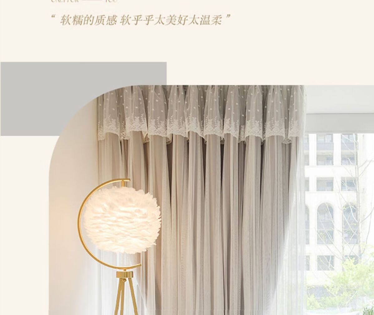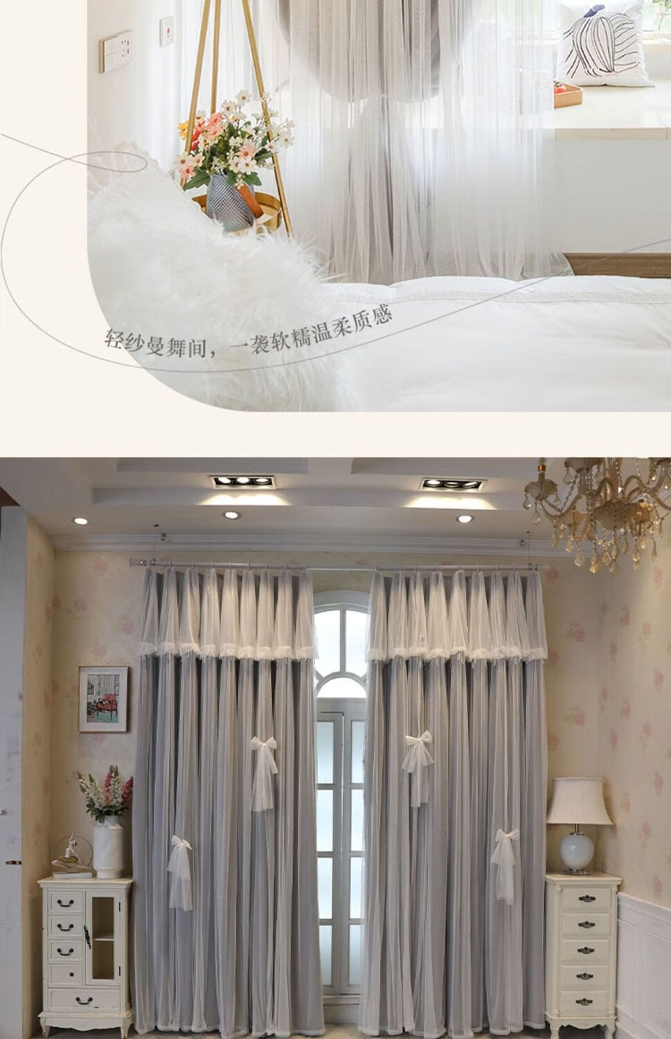 Ruiba Cream Style Curtains Blackout Beige Girly Bedroom Bay Window Double Layer Douyin Internet Celebrity Princess Style Fantasy Cloth and Gauze Integrated with Curtain Head - Not Hollow Cream Color Width 2.0*Height 2.7-Hook Type One Piece Height Adjustable