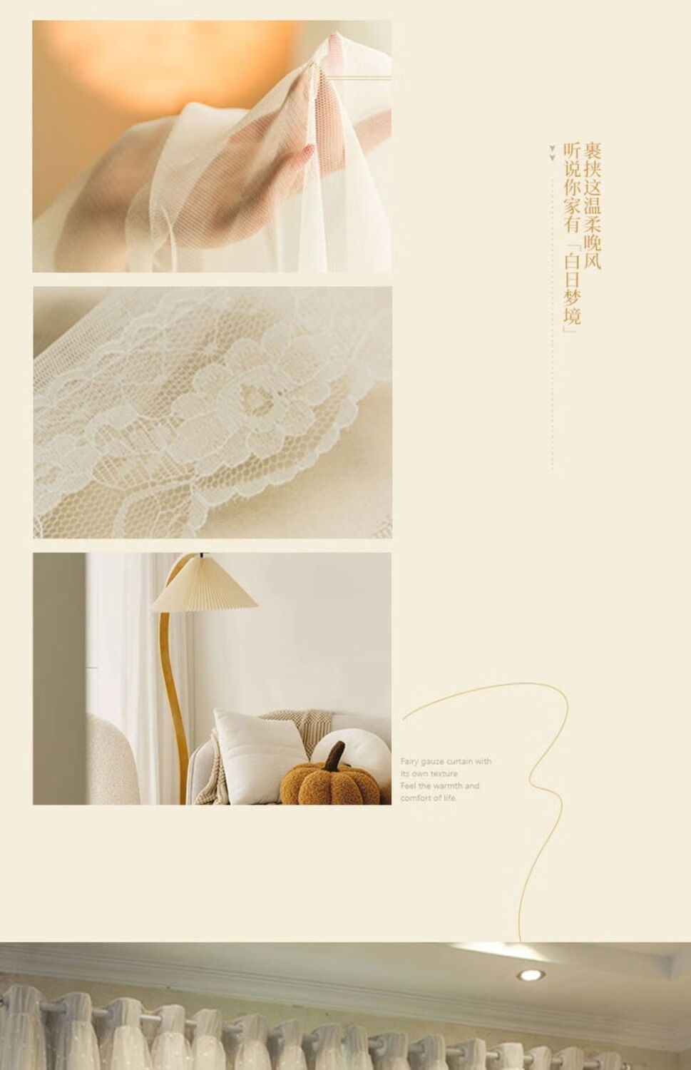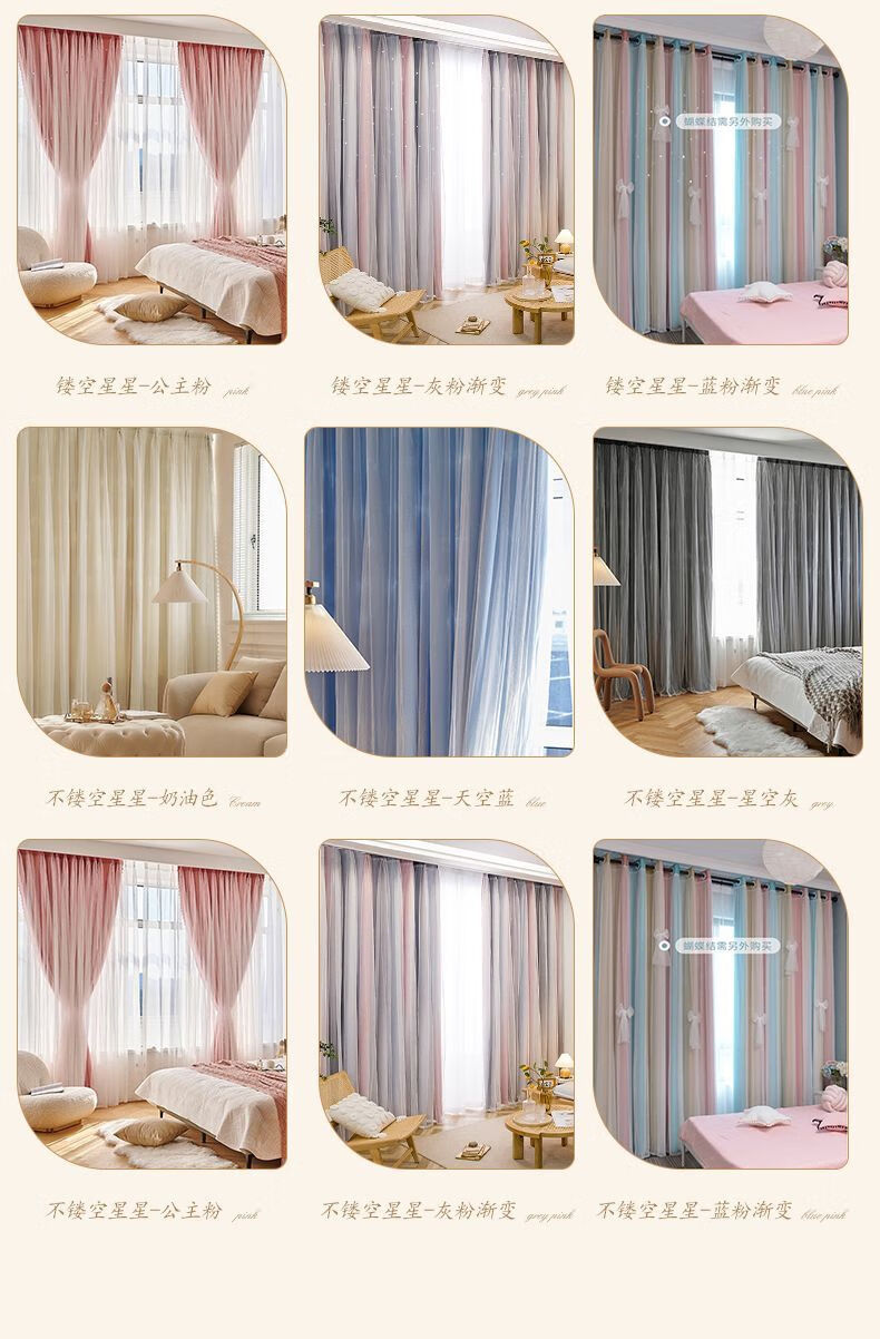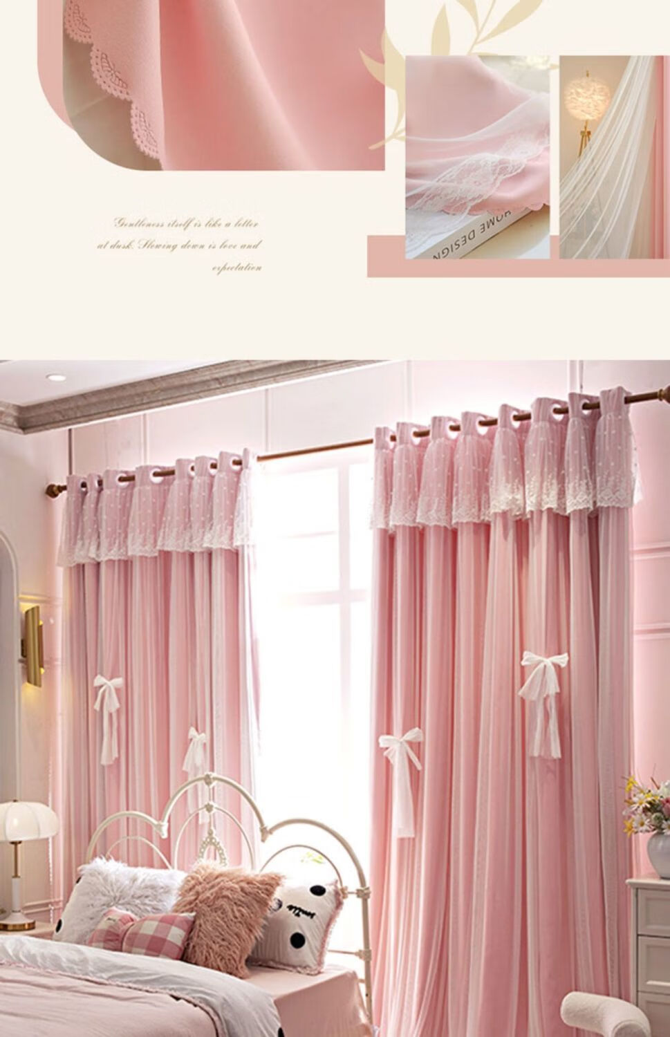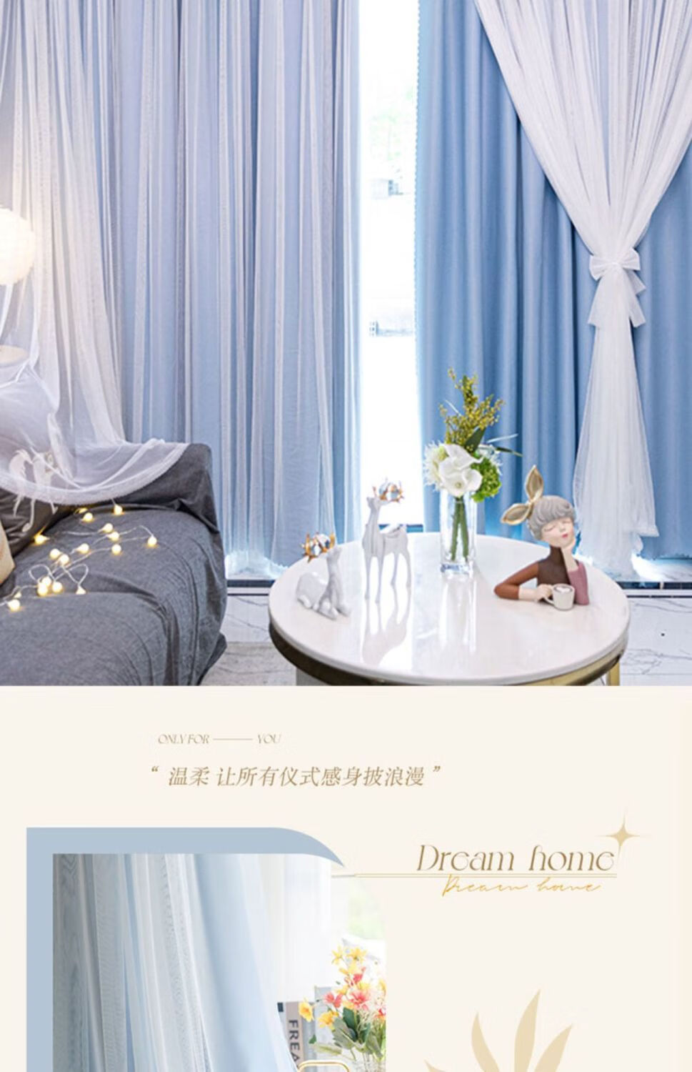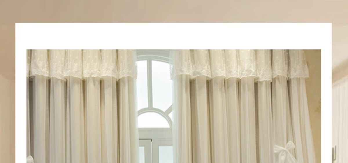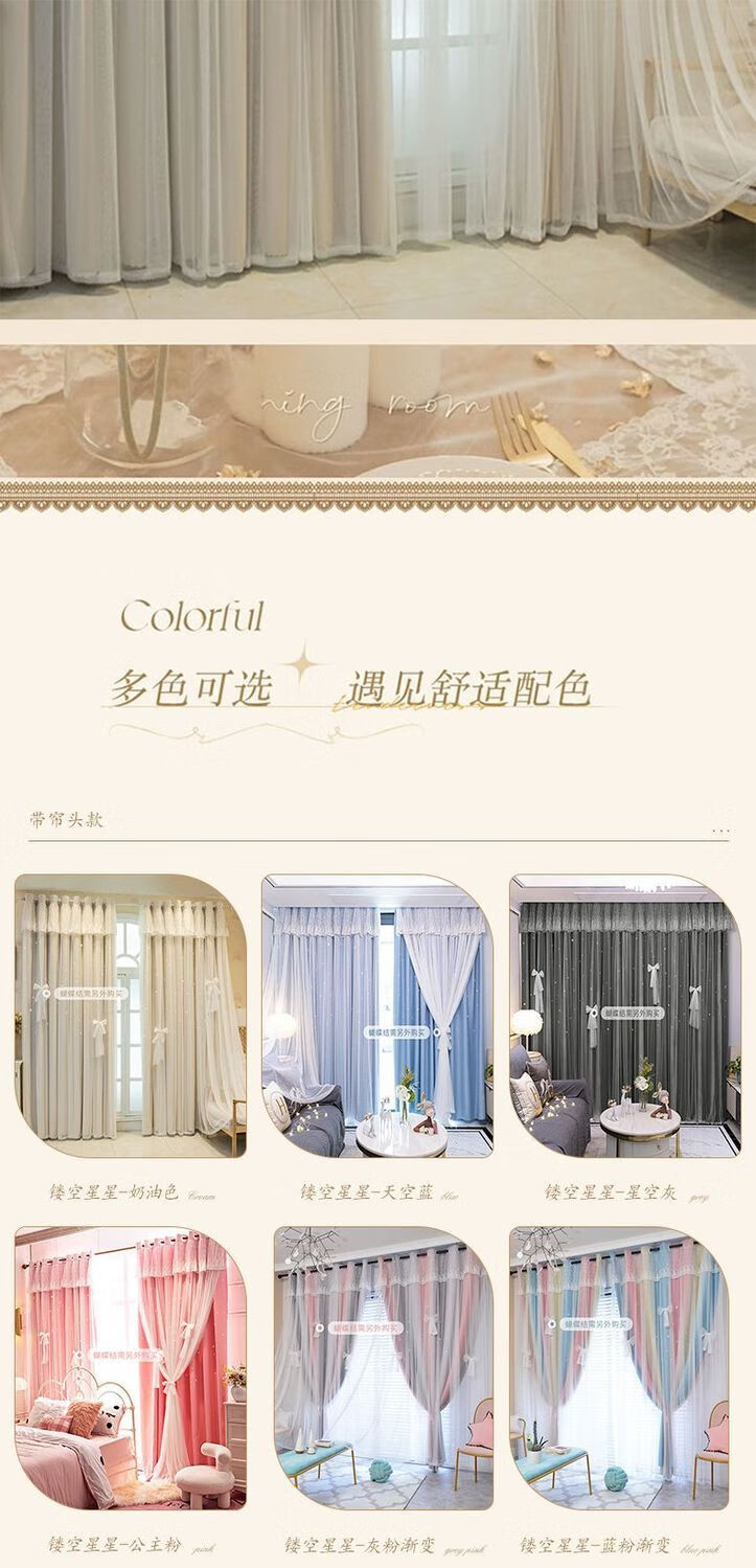 Ruiba Cream Style Curtains Blackout Beige Girly Bedroom Bay Window Double Layer Douyin Internet Celebrity Princess Style Fantasy Cloth and Gauze Integrated with Curtain Head - Not Hollow Cream Color Width 2.0*Height 2.7-Hook Type One Piece Height Adjustable