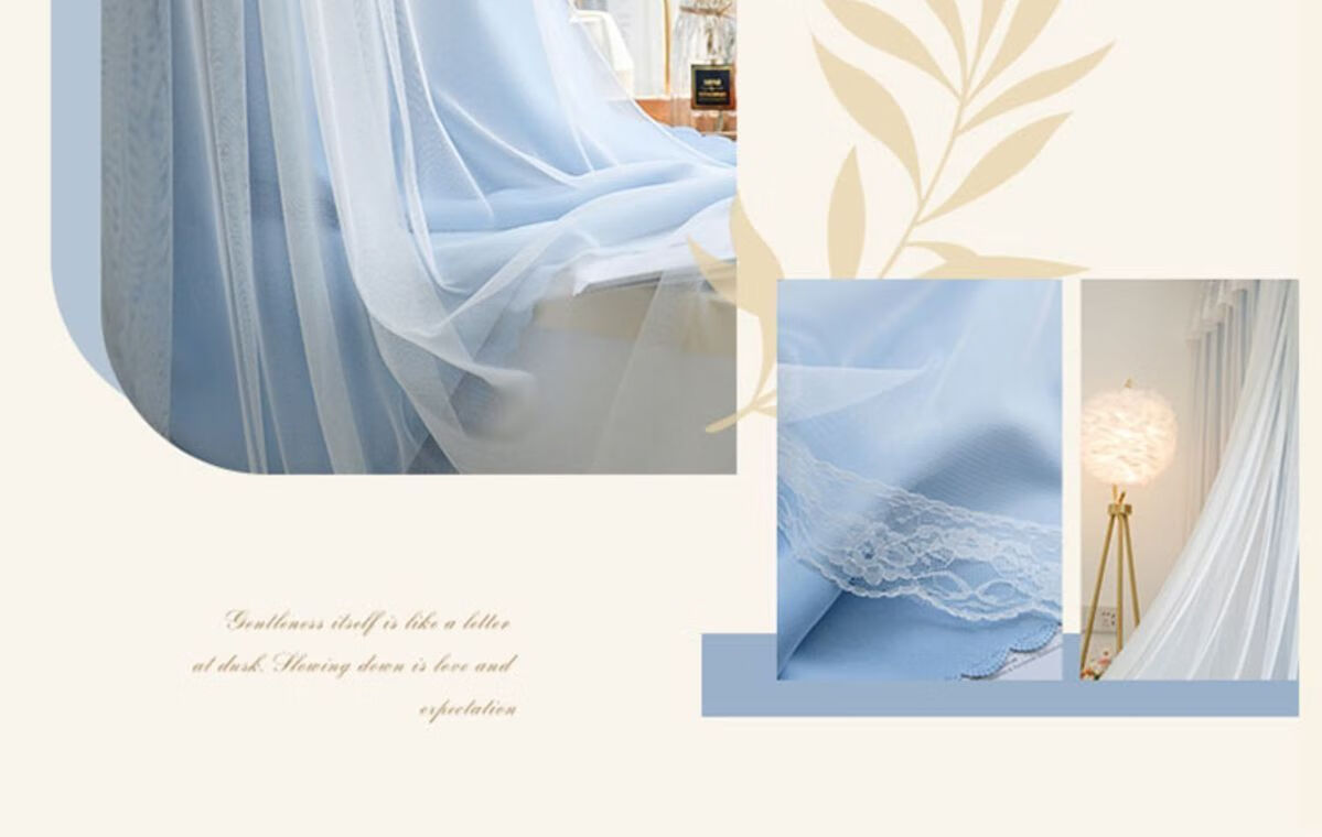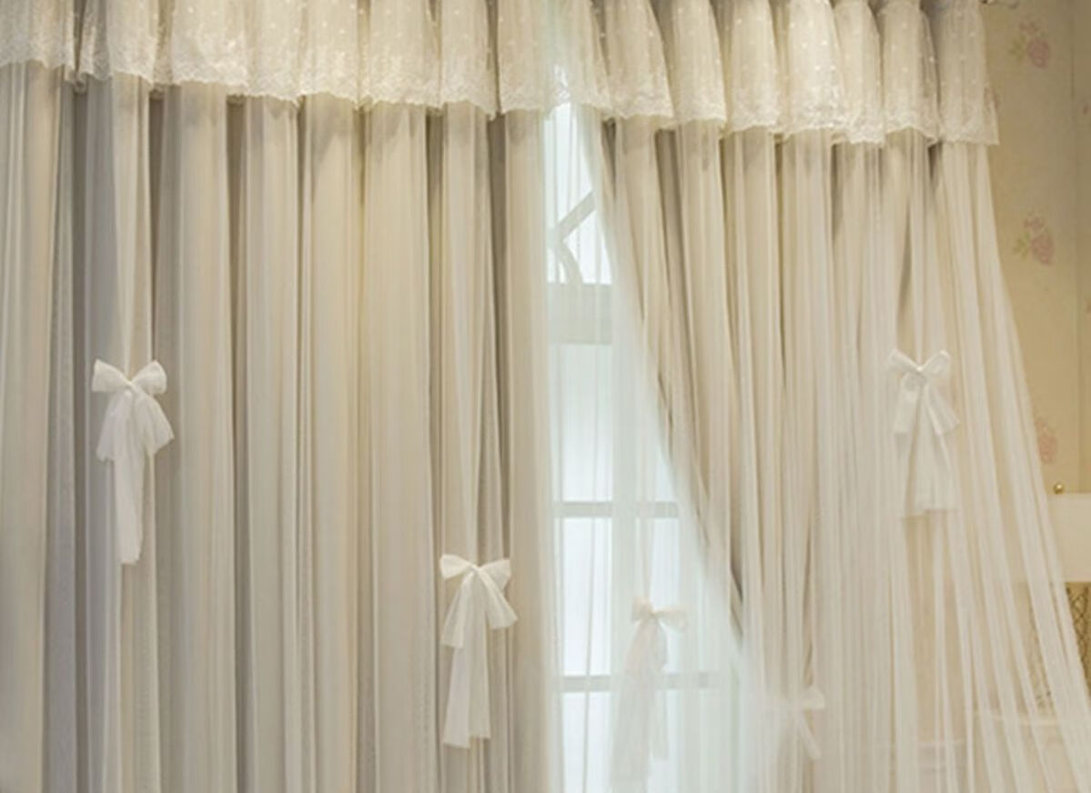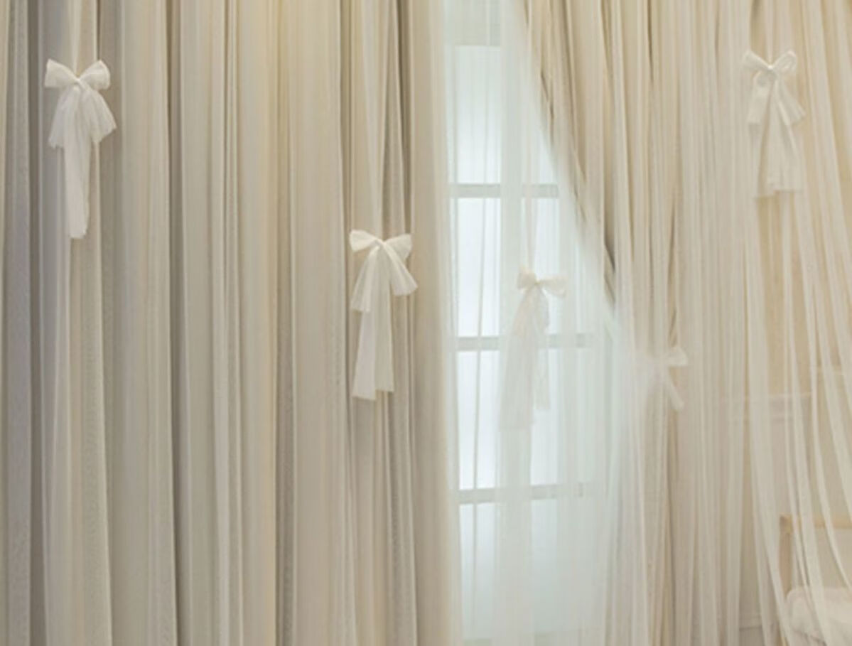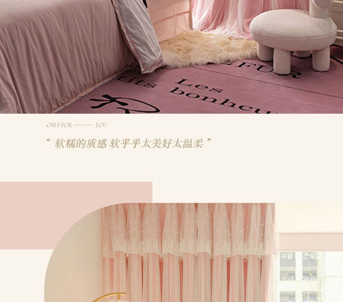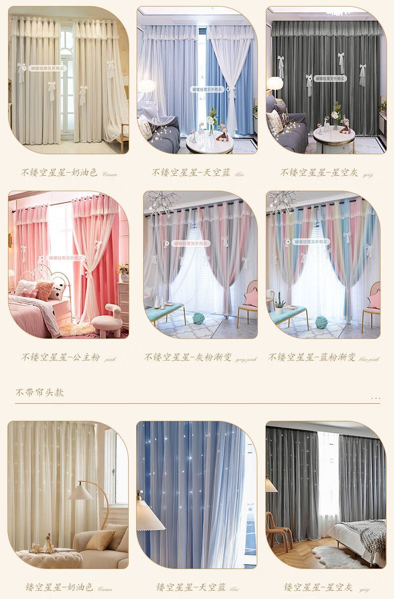 Ruiba Cream Style Curtains Blackout Beige Girly Bedroom Bay Window Double Layer Douyin Internet Celebrity Princess Style Fantasy Cloth and Gauze Integrated with Curtain Head - Not Hollow Cream Color Width 2.0*Height 2.7-Hook Type One Piece Height Adjustable