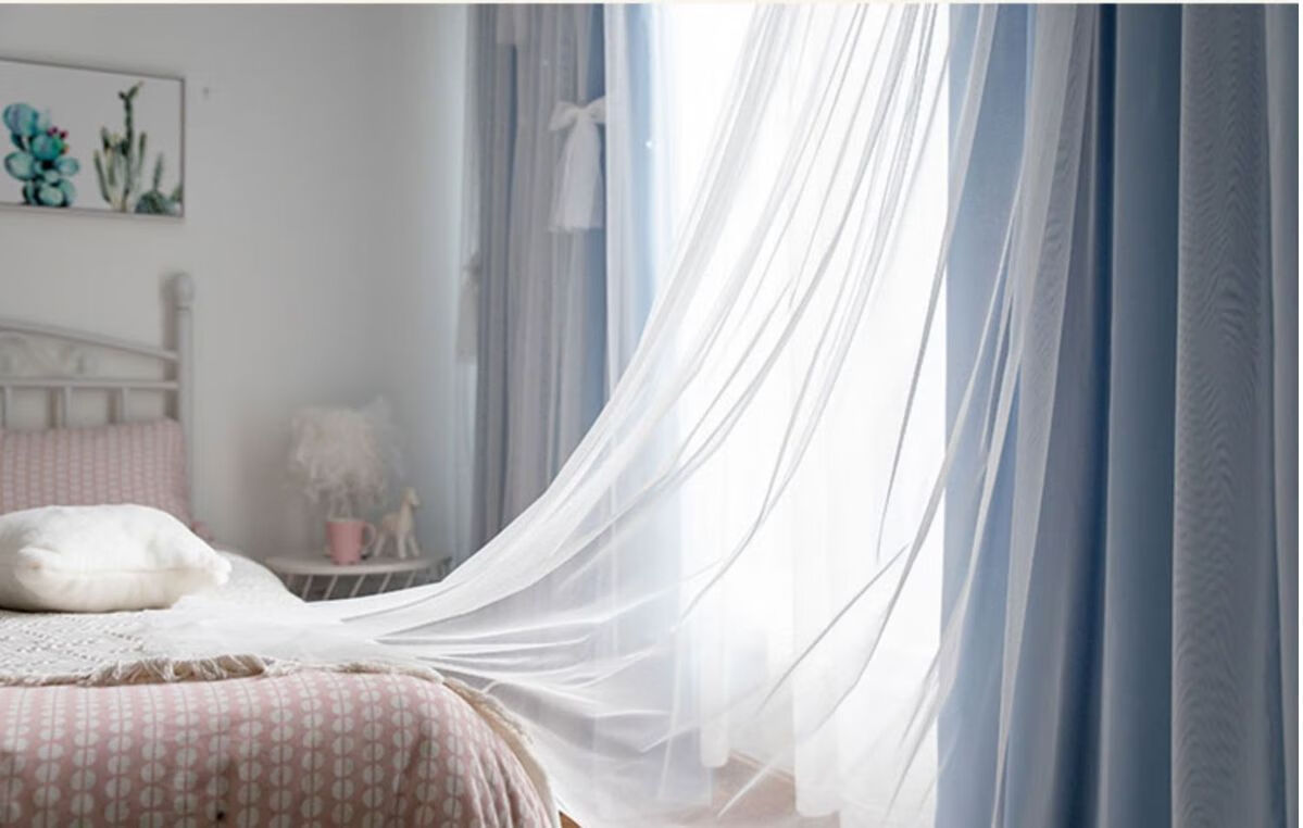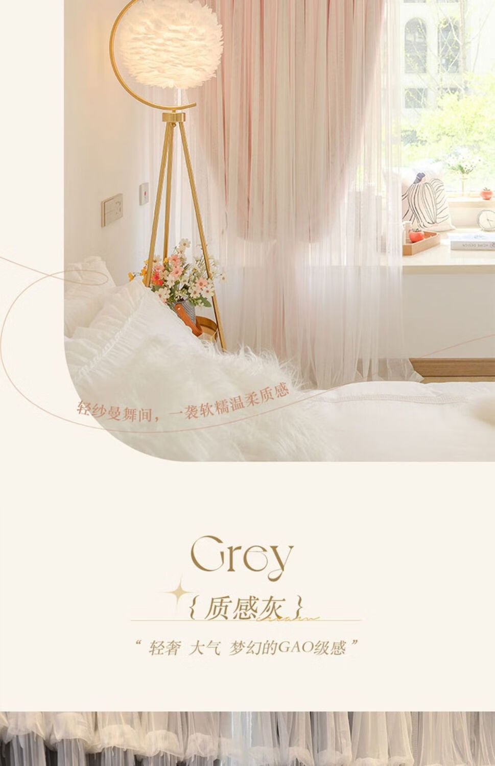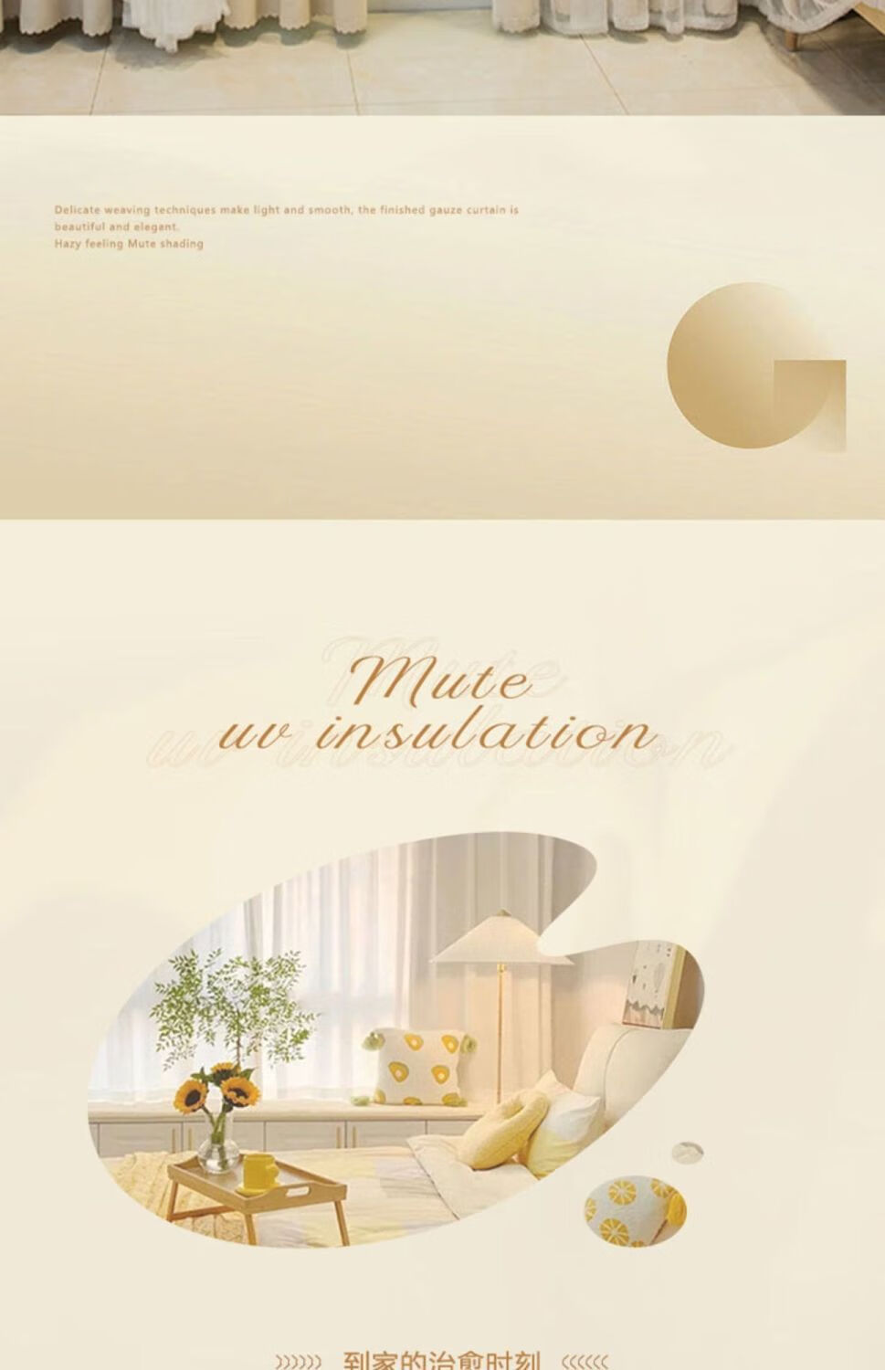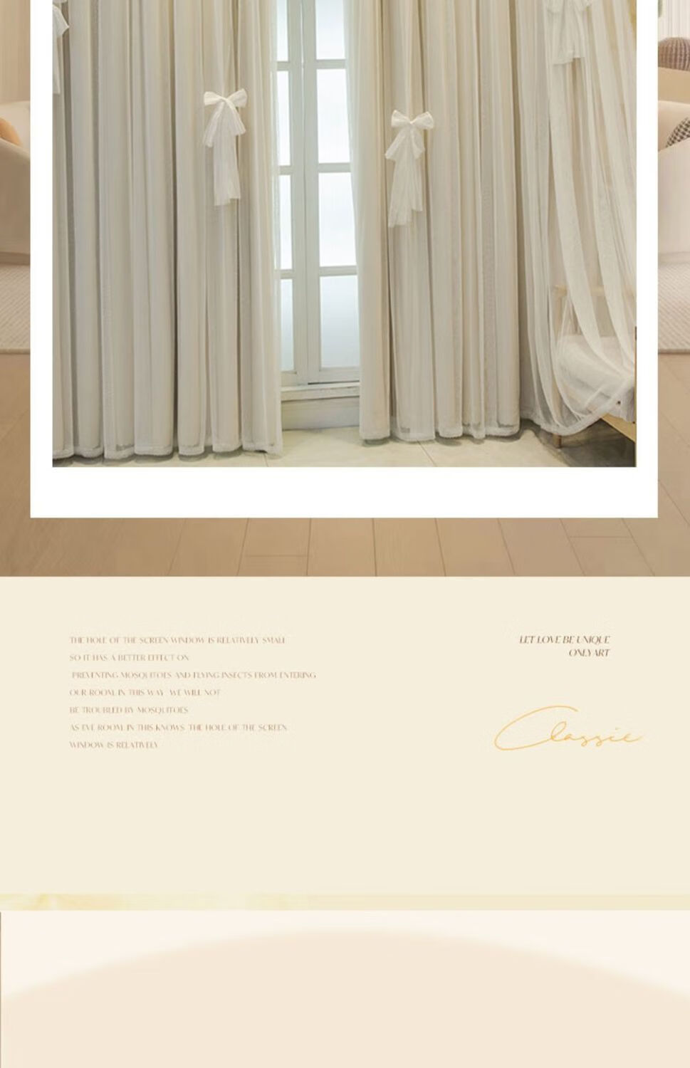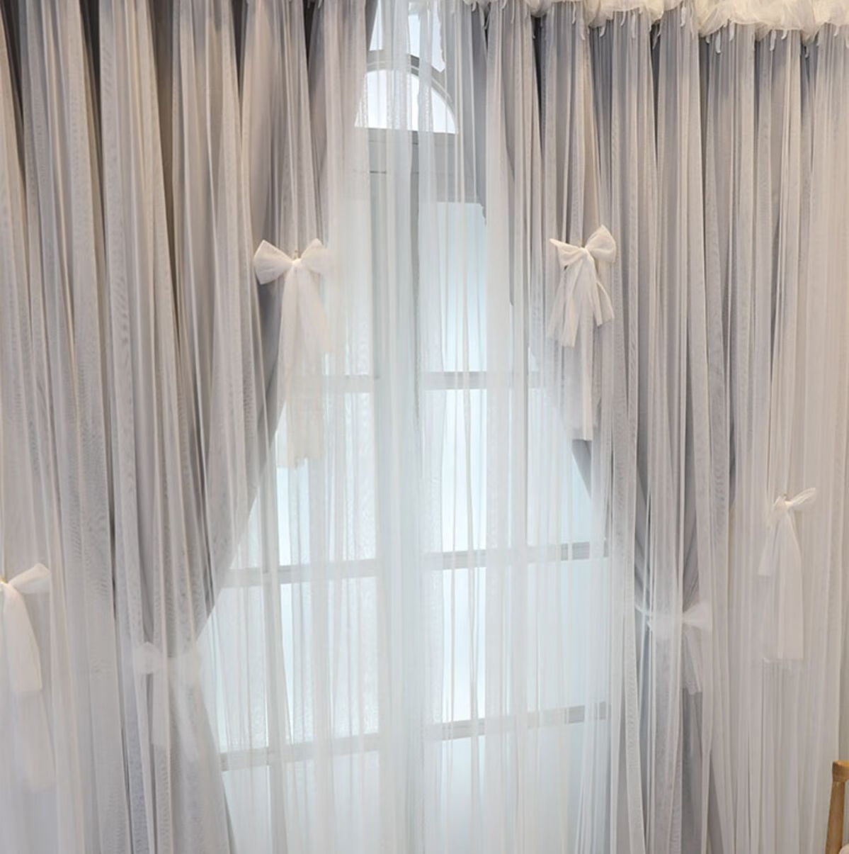 Ruiba Cream Style Curtains Blackout Beige Girly Bedroom Bay Window Double Layer Douyin Internet Celebrity Princess Style Fantasy Cloth and Gauze Integrated with Curtain Head - Not Hollow Cream Color Width 2.0*Height 2.7-Hook Type One Piece Height Adjustable
