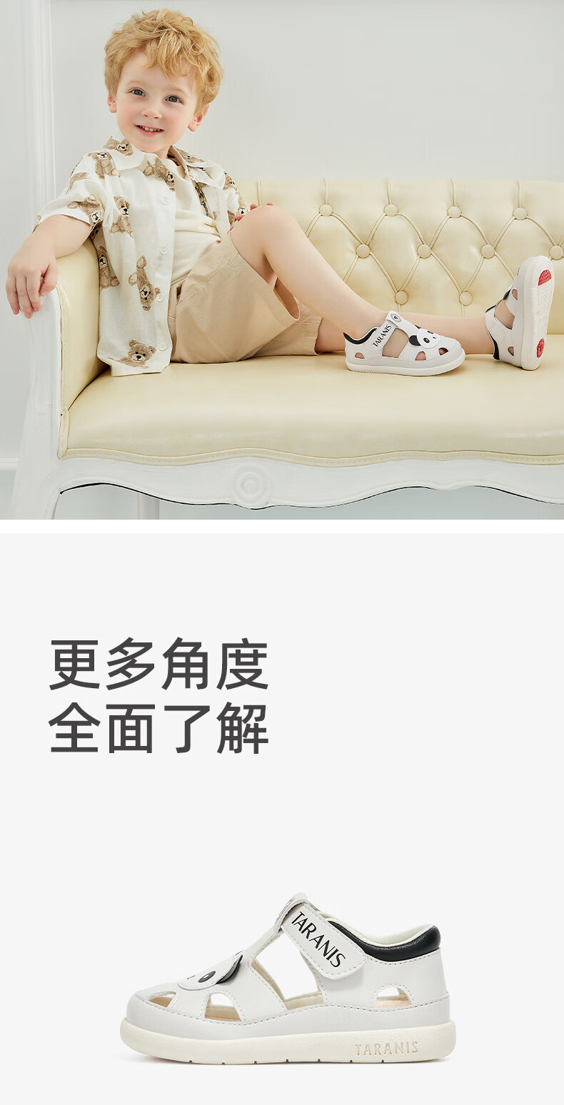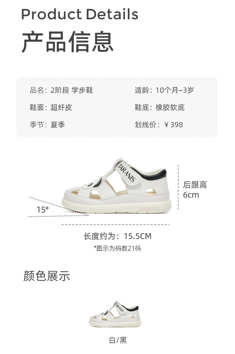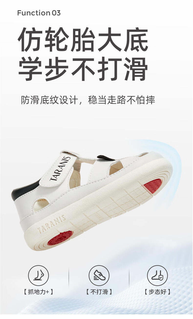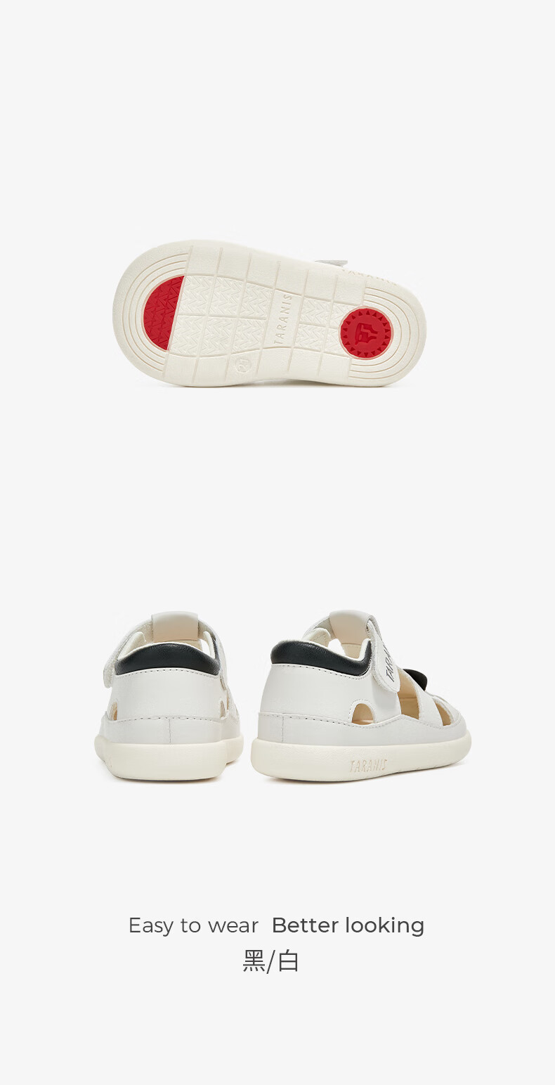 Tyrannis new summer children's shoes, toe-toe anti-kick boys' sports sandals, casual soft-soled baby girl sandals, beach shoes, white/black 24, inner length 15.5, suitable for feet 14.8~15.2cm long