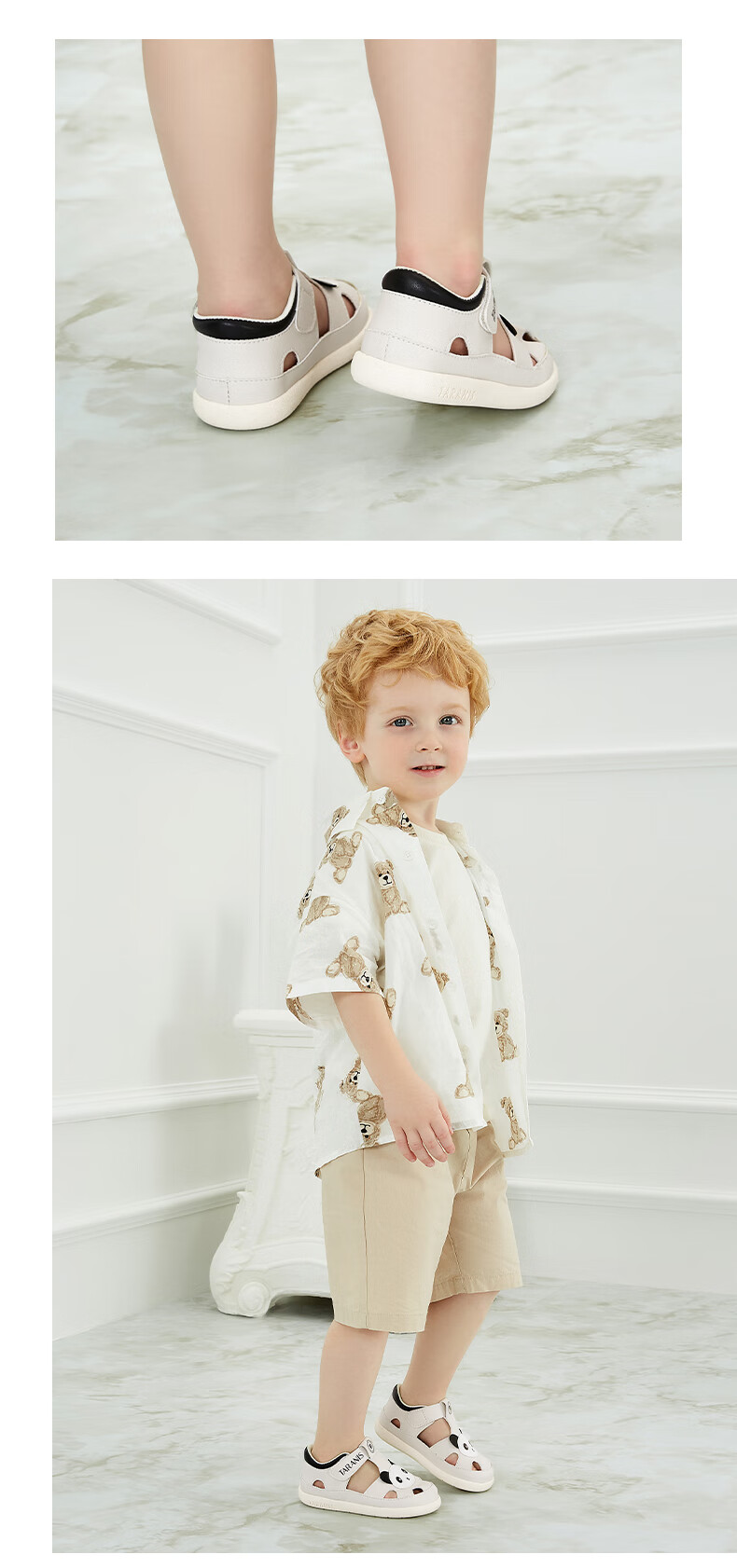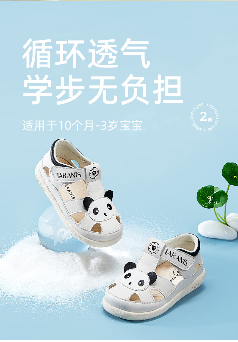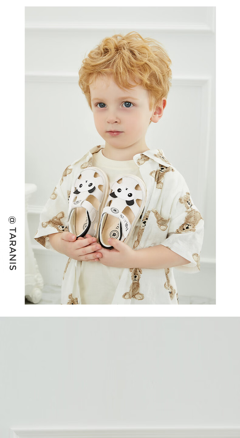 Tyrannis new summer children's shoes, toe-toe anti-kick boys' sports sandals, casual soft-soled baby girl sandals, beach shoes, white/black 24, inner length 15.5, suitable for feet 14.8~15.2cm long