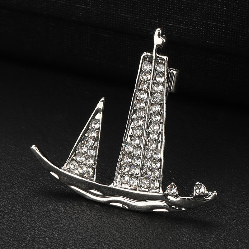 Handsome gift box with belt, men's fashion brooch, lapel pin, suit corsage, suit badge, personalized trendy badge accessories, sailing silver brooch, gift box