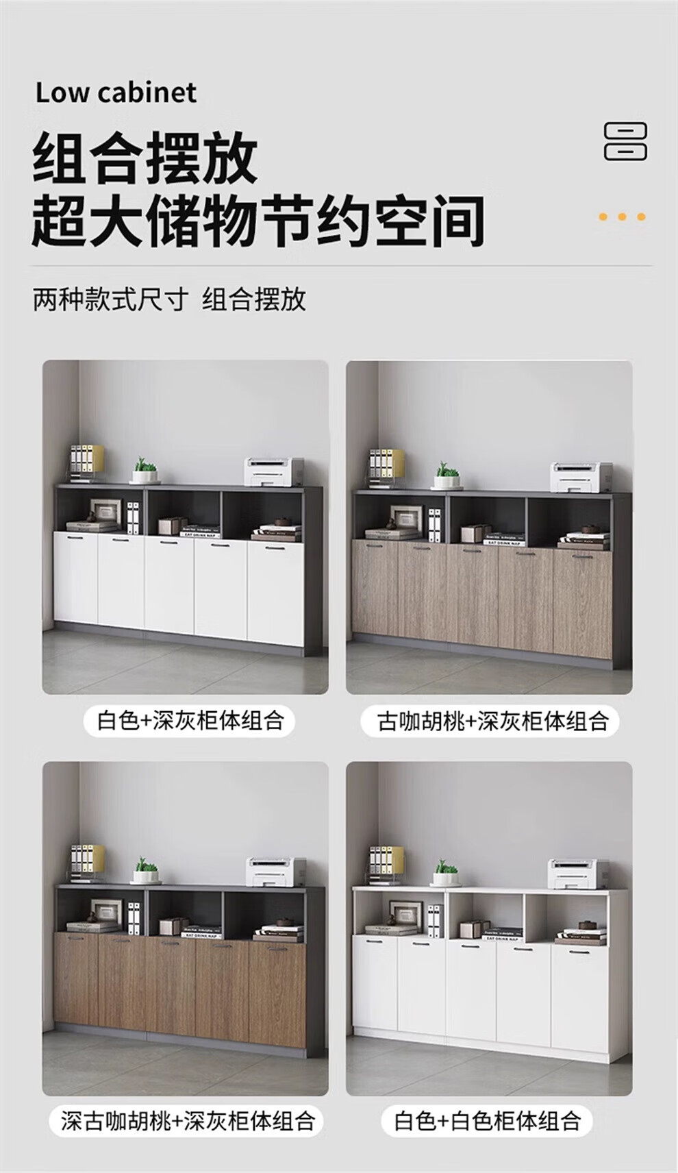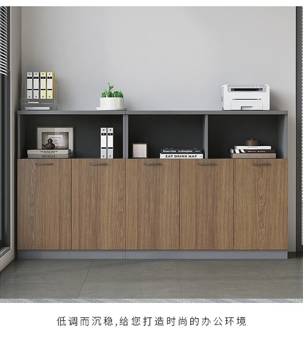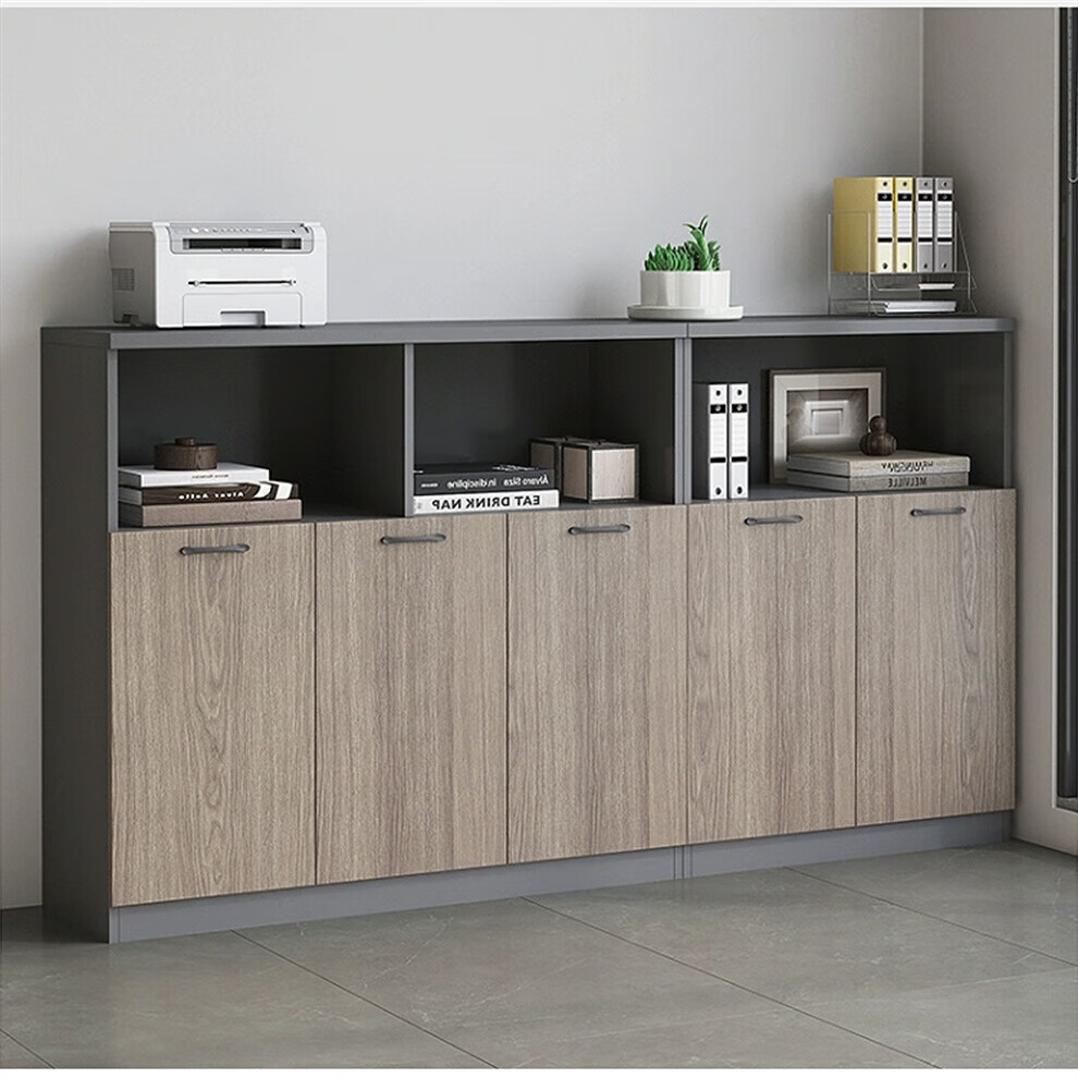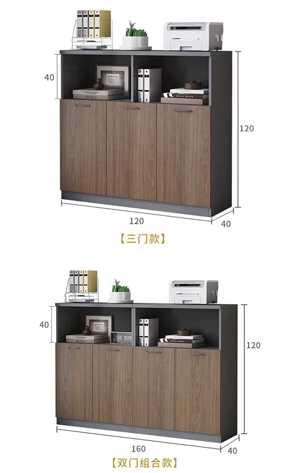 Zhibo Office File Cabinet Low Cabinet File Information Cabinet Locker Printer Cabinet Office Wooden Three Doors 120*40*Height 120CM Dark Gray + Dark Walnut