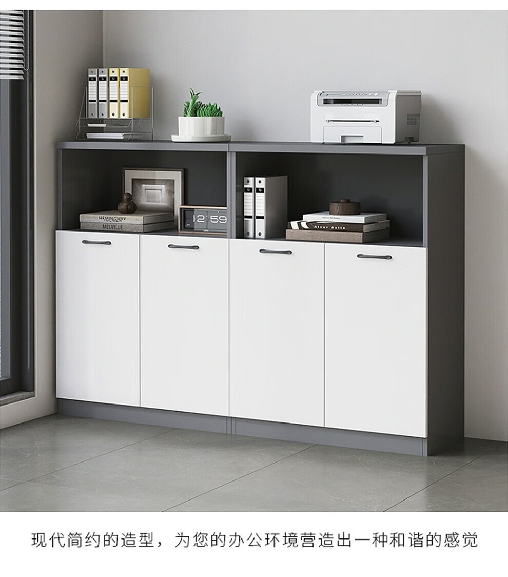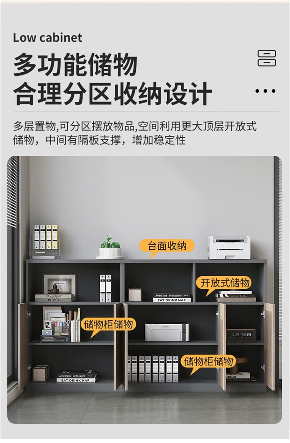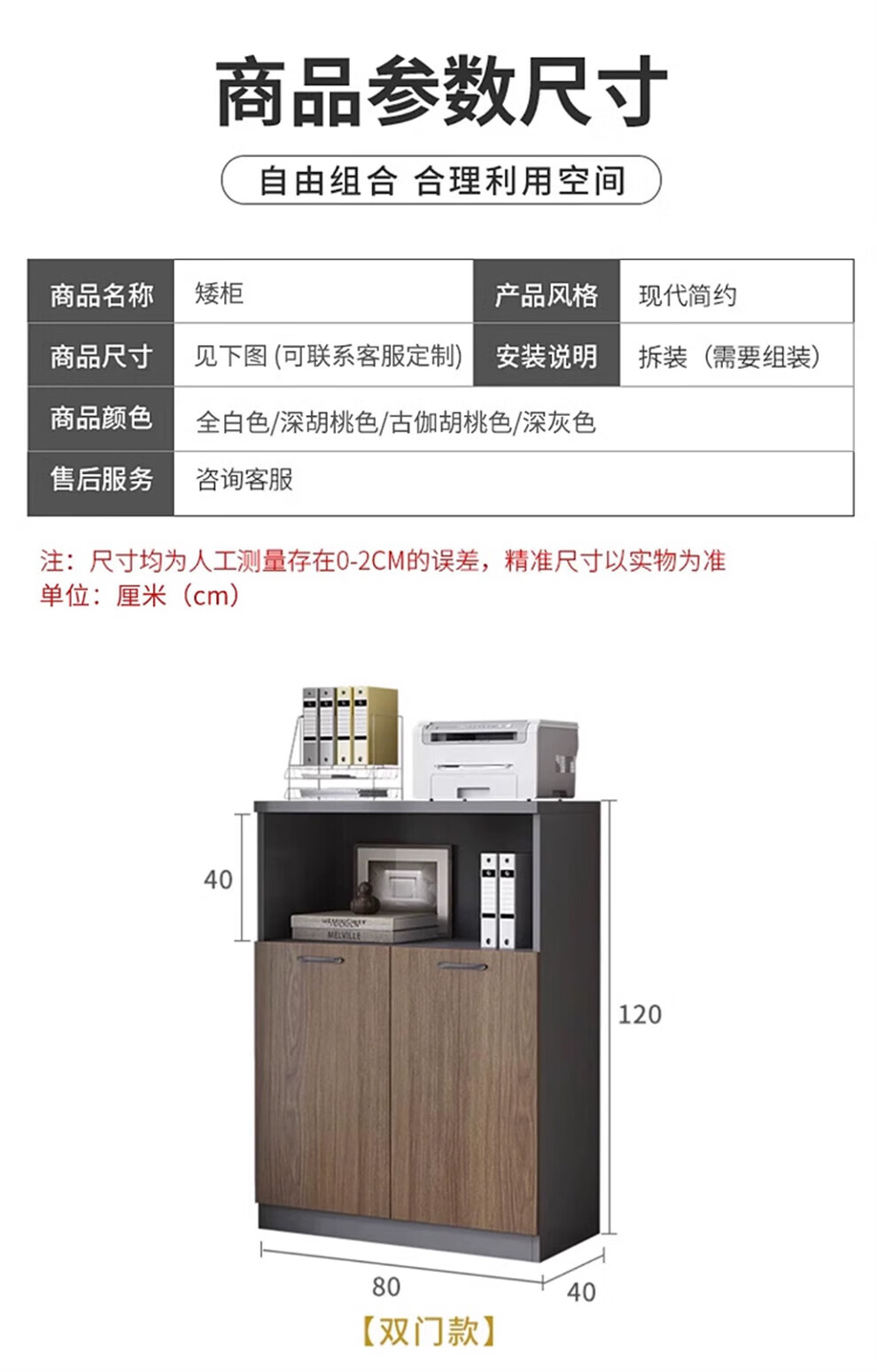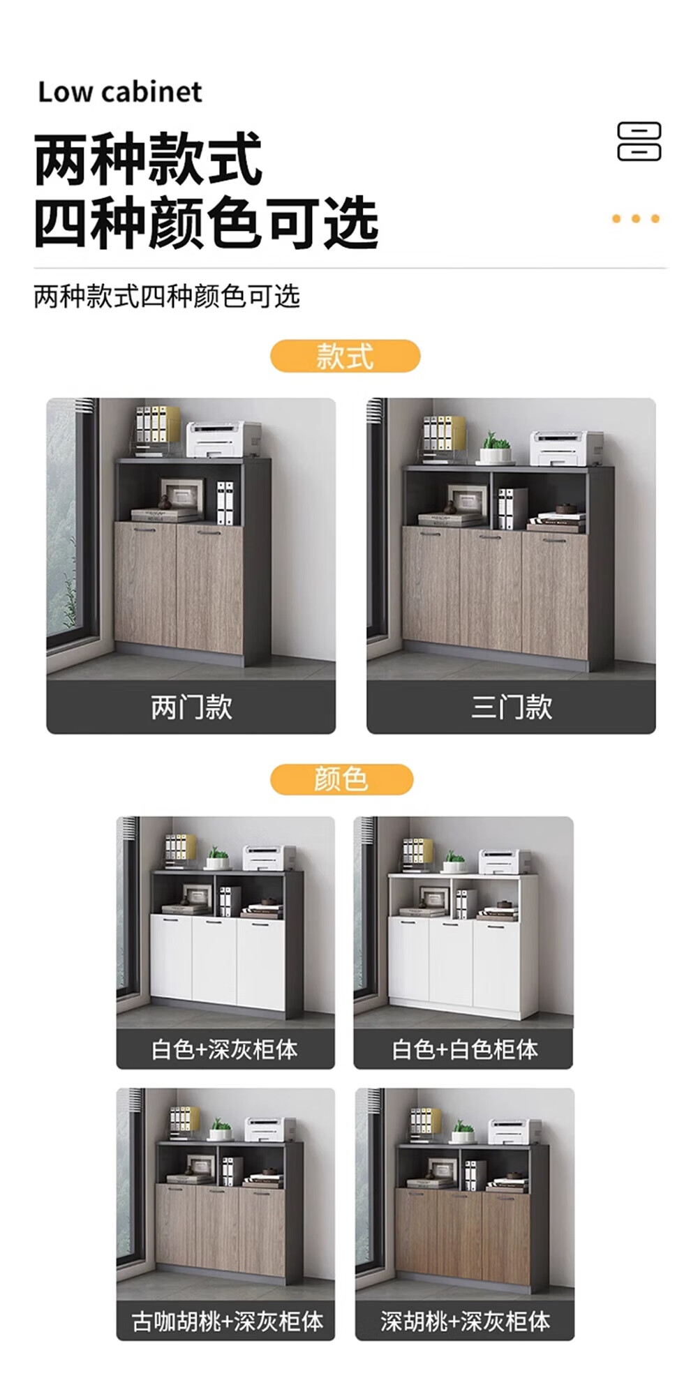 Zhibo Office File Cabinet Low Cabinet File Information Cabinet Locker Printer Cabinet Office Wooden Three Doors 120*40*Height 120CM Dark Gray + Dark Walnut