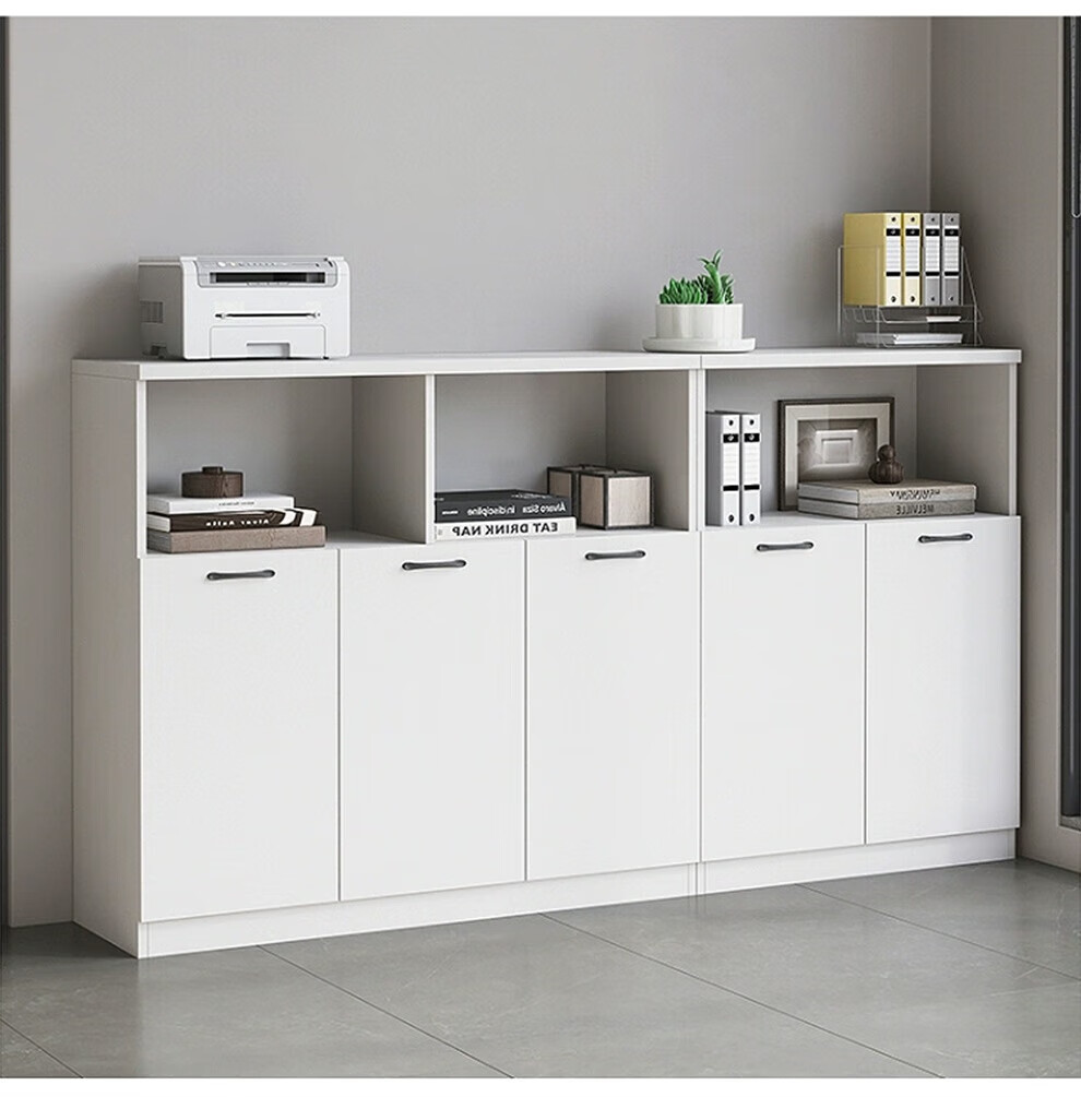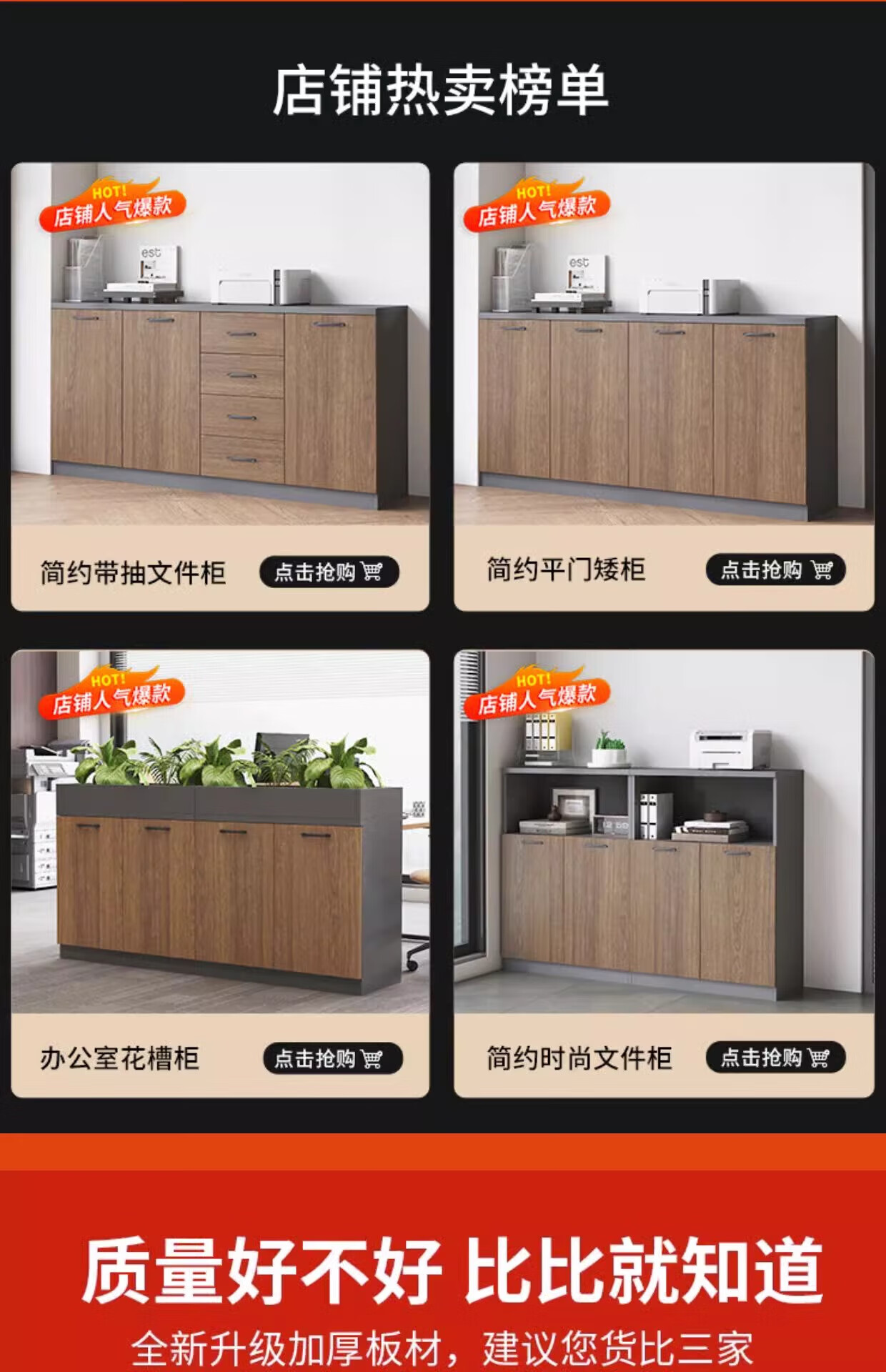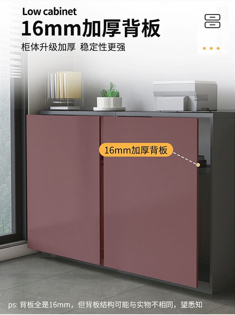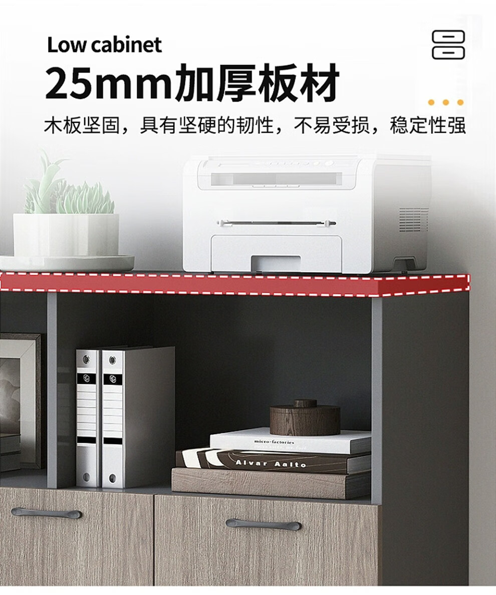 Zhibo Office File Cabinet Low Cabinet File Information Cabinet Locker Printer Cabinet Office Wooden Three Doors 120*40*Height 120CM Dark Gray + Dark Walnut