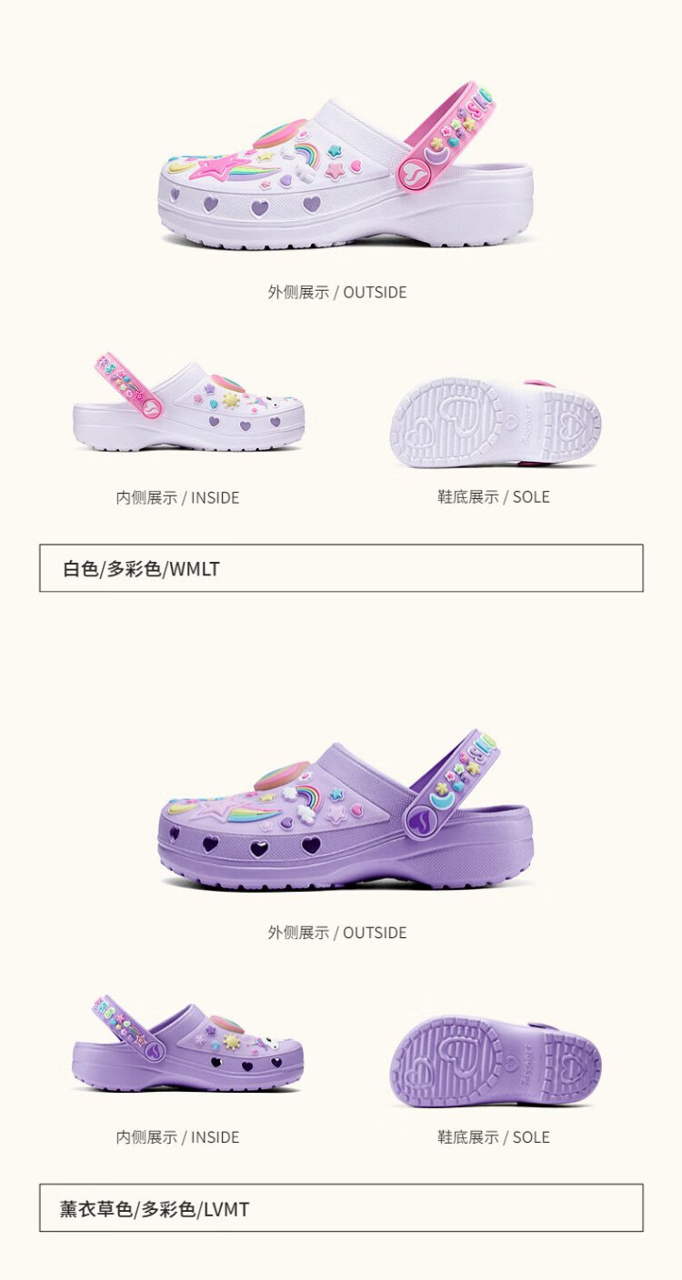 Skechers Skechers mall same style girls casual slip-on clogs summer new flashing sandals 308406L white/multi-color/WMLT 35