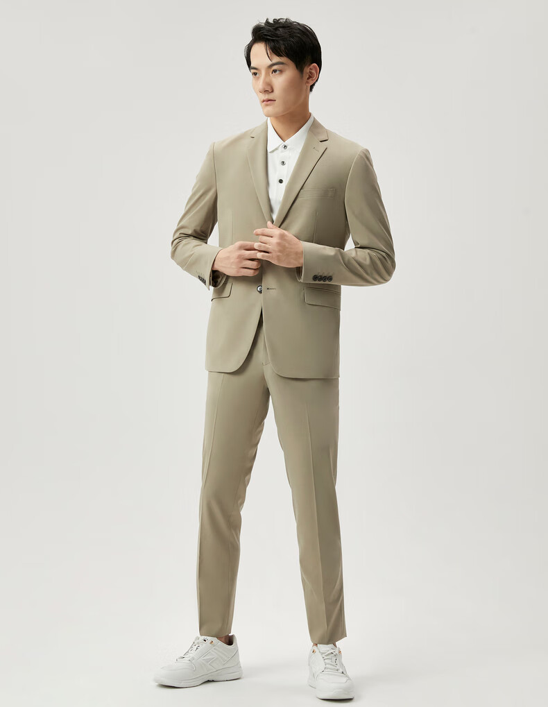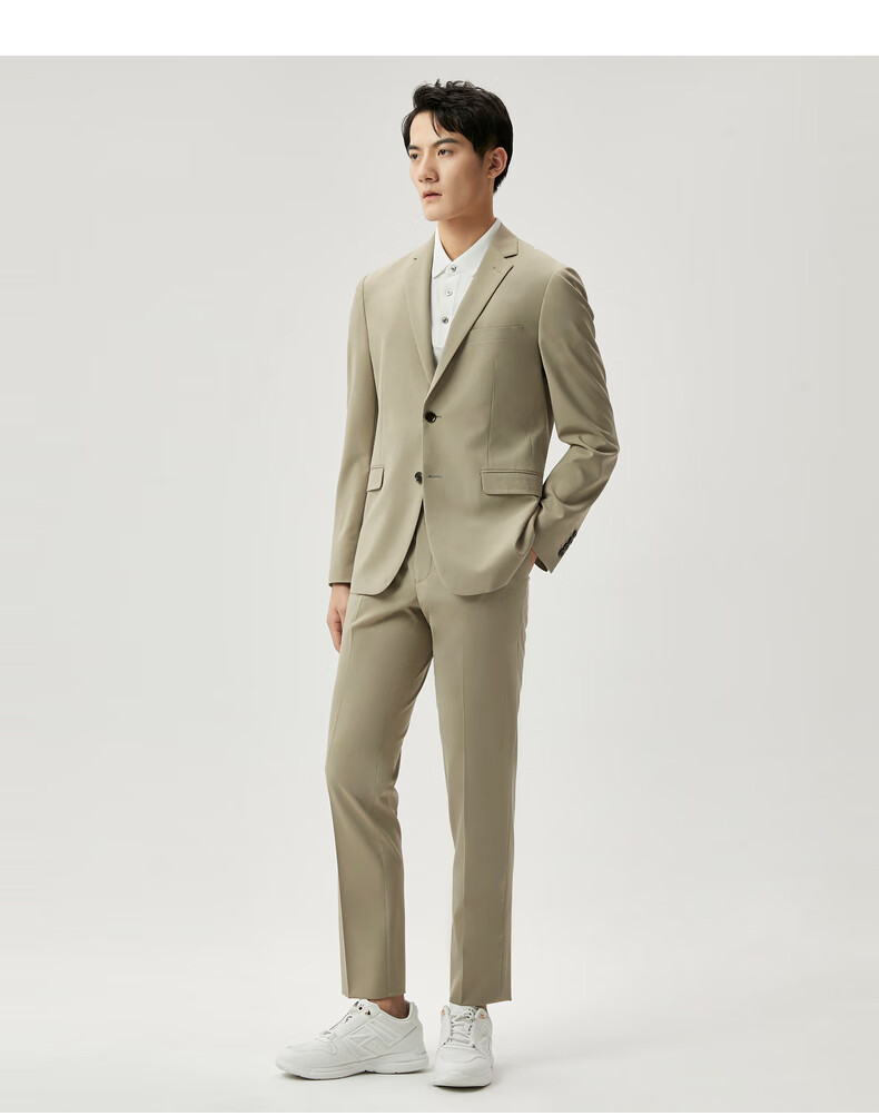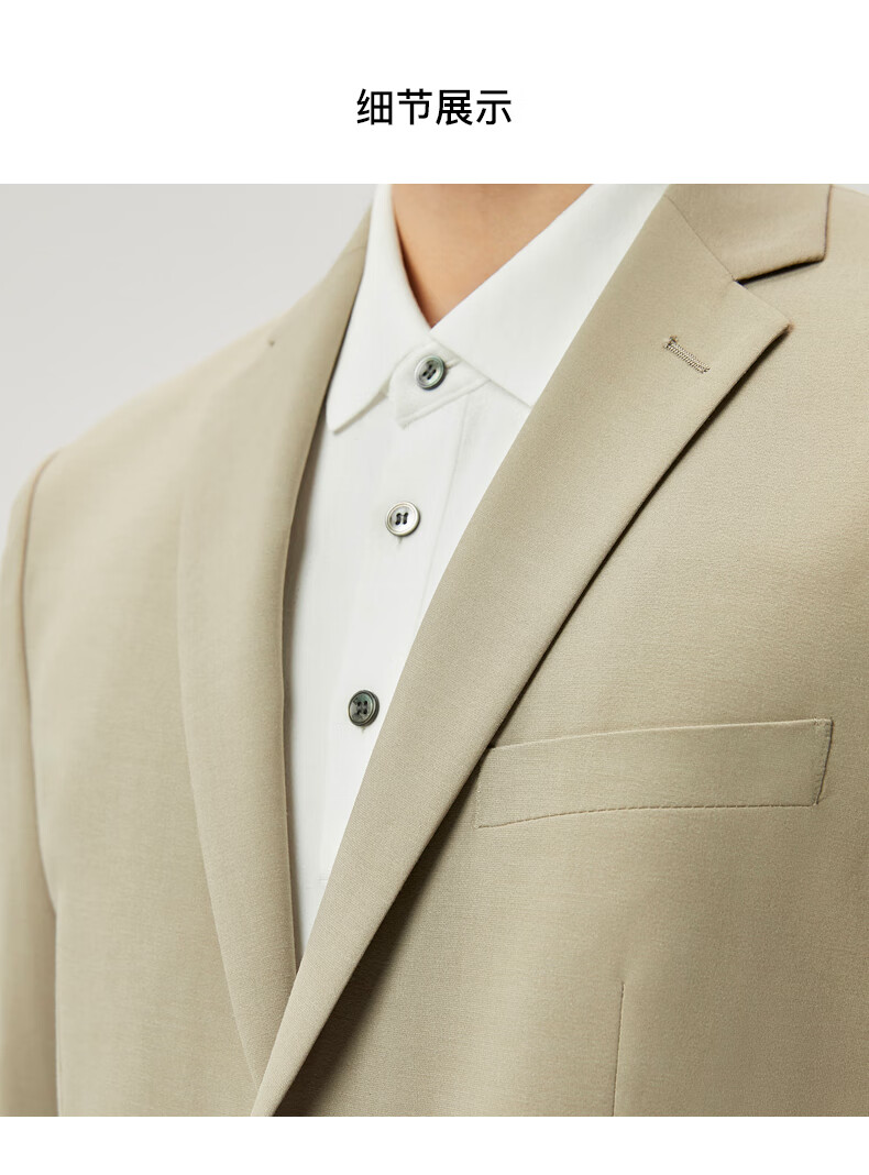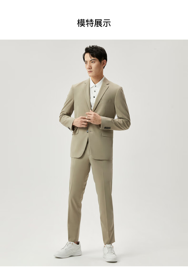 Jinba Men's 2025 Business Casual Gentleman Thin Comfortable High-end Slim Flat Lapel Suit BSFT1904 Khaki (Fit Version) XL (180)