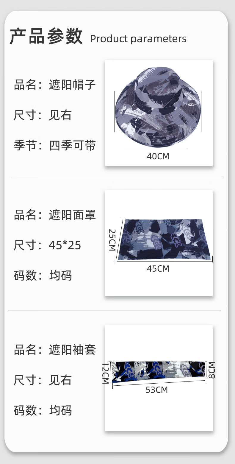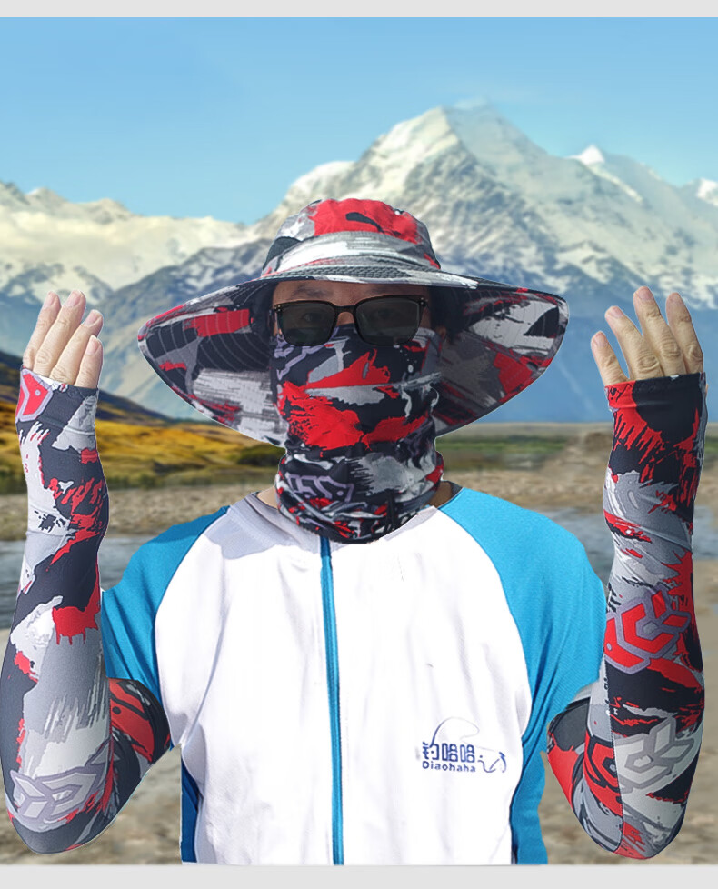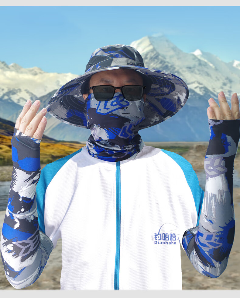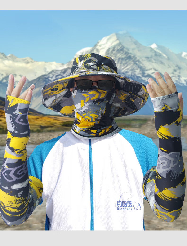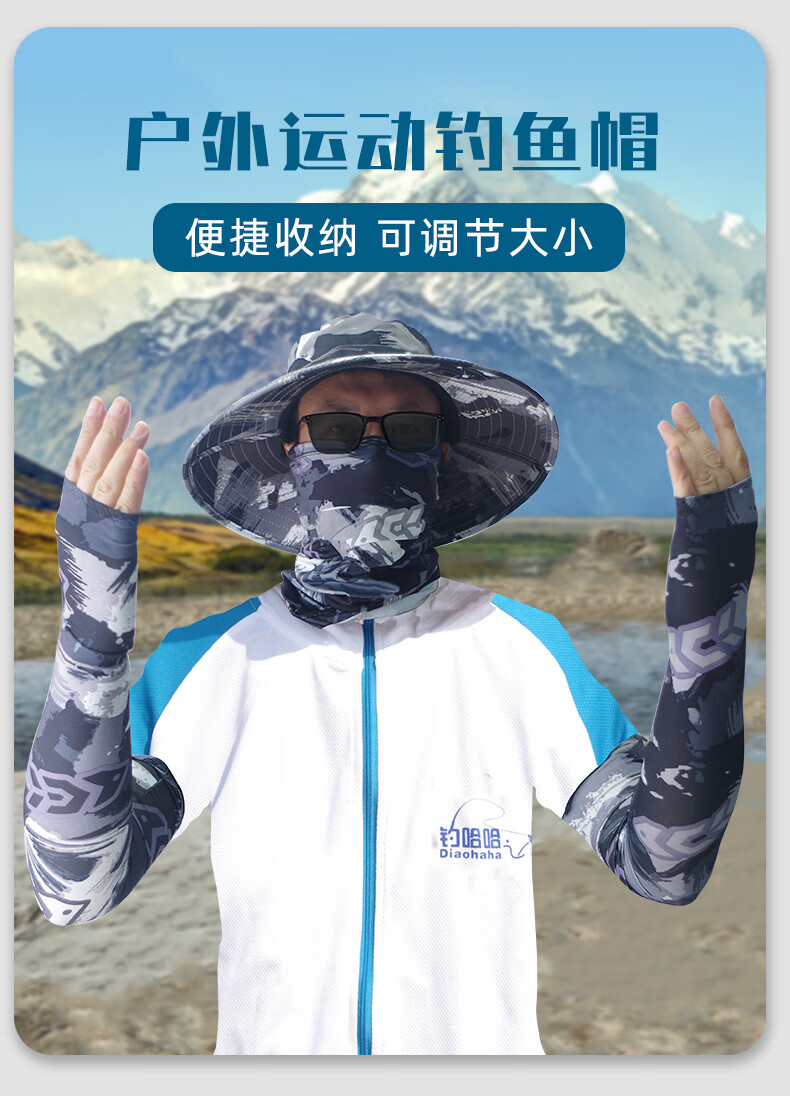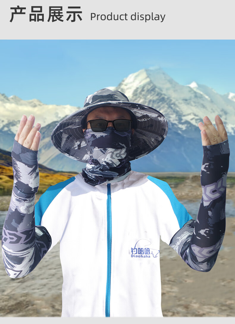 Fishing haha fishing hat for men and women, same type of sun protection equipment, three-piece set of ice silk sleeves, protective mask, Luya summer fishing equipment, sleeves (grey)