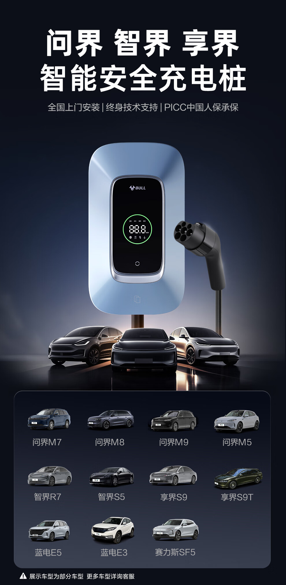 The Bull charging pile is suitable for Huawei Wenjie m7/m5/m9/m8 Zhijie/R7/S7 Xiangjie S9 Zunjie s800 Cyrus new energy vehicle 7kW21KW household 220v universal 7KW Enjoy version - with LED large screen, free basic installation