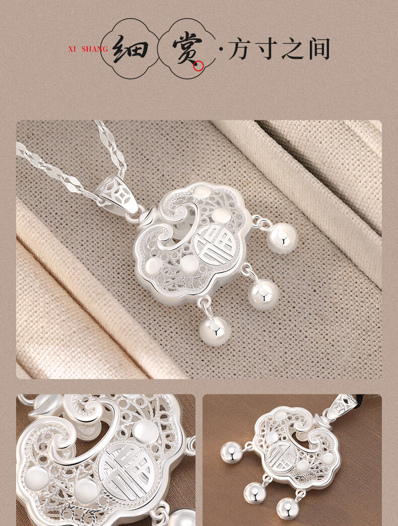 Ruyi Ping An Lock Necklace Women's Foot Silver 999 Light Luxury Niche Silver Lock Longevity Lock Pendant Valentine's Day Birthday Gift Ping An Lock Black Rope Model Large Edition About 10 Grams Exquisite Gift Box
