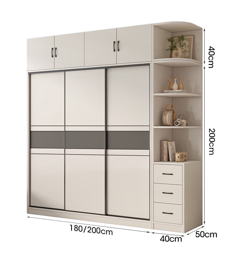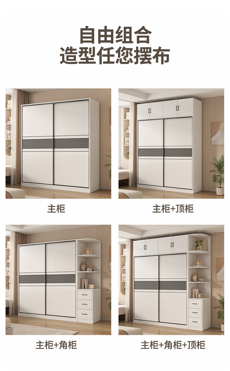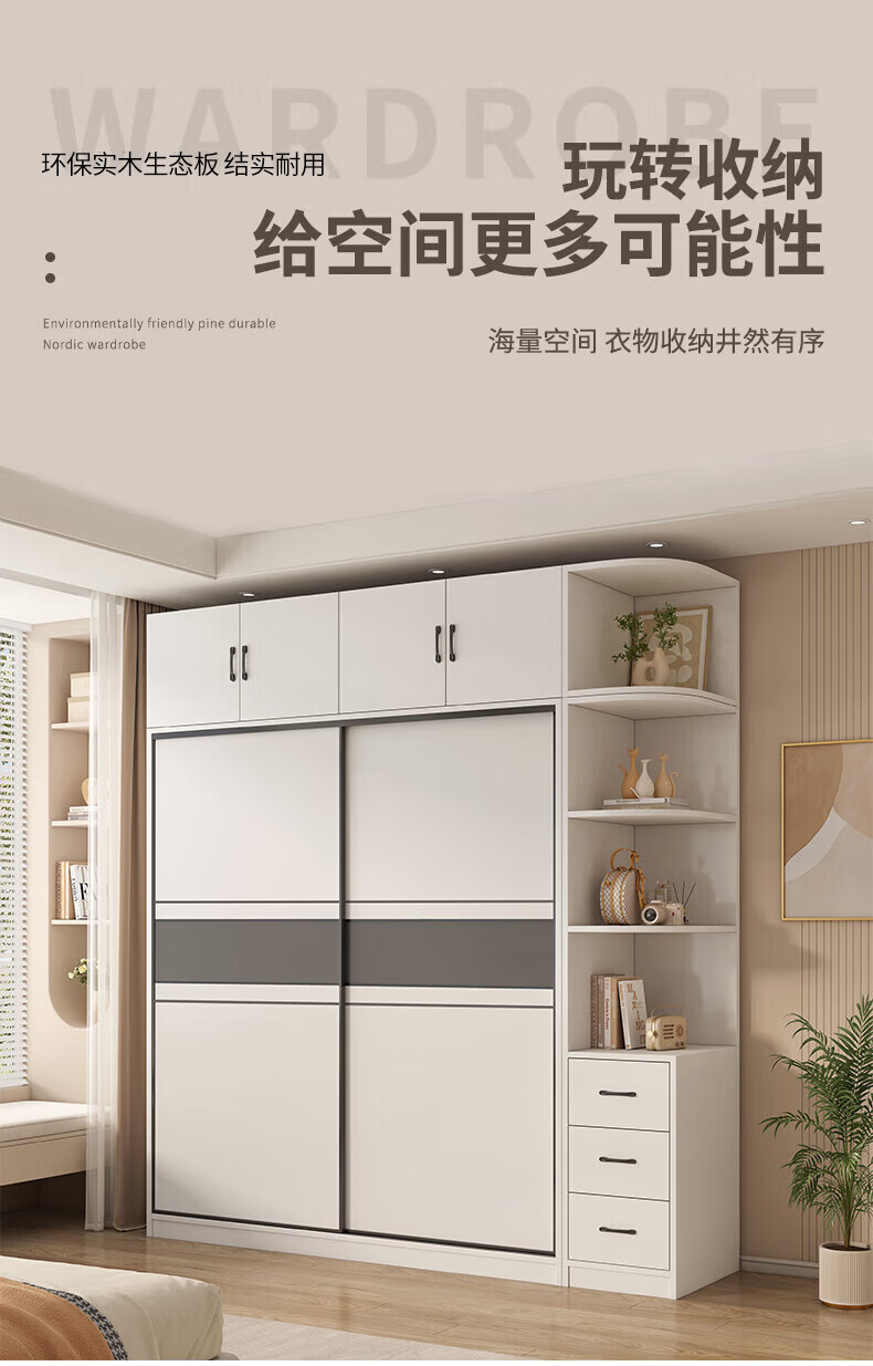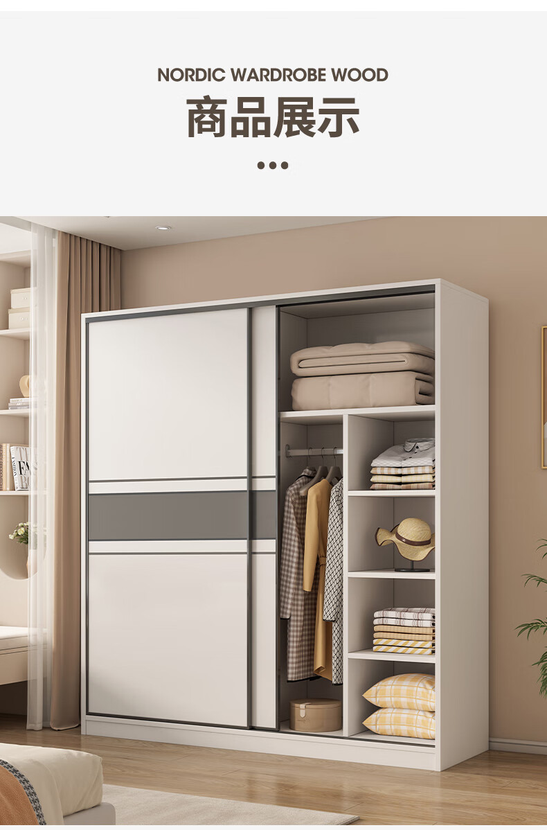 Nashawen package installation solid wood wardrobe bedroom household sliding door rental room modern simple large wardrobe combination cabinet three doors main cabinet 200+ top cabinets